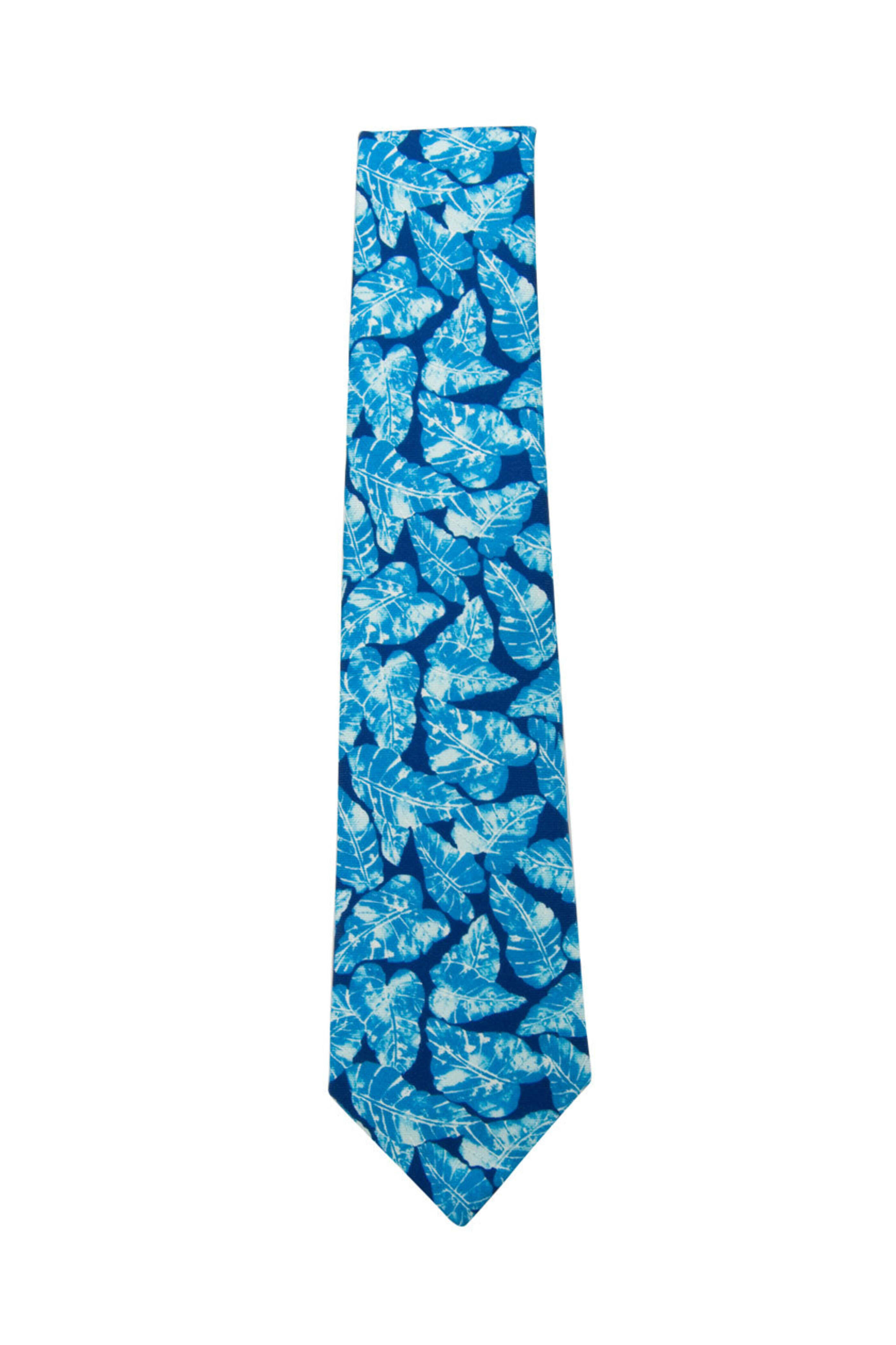 Navy and Aqua Palm Leaf Tie