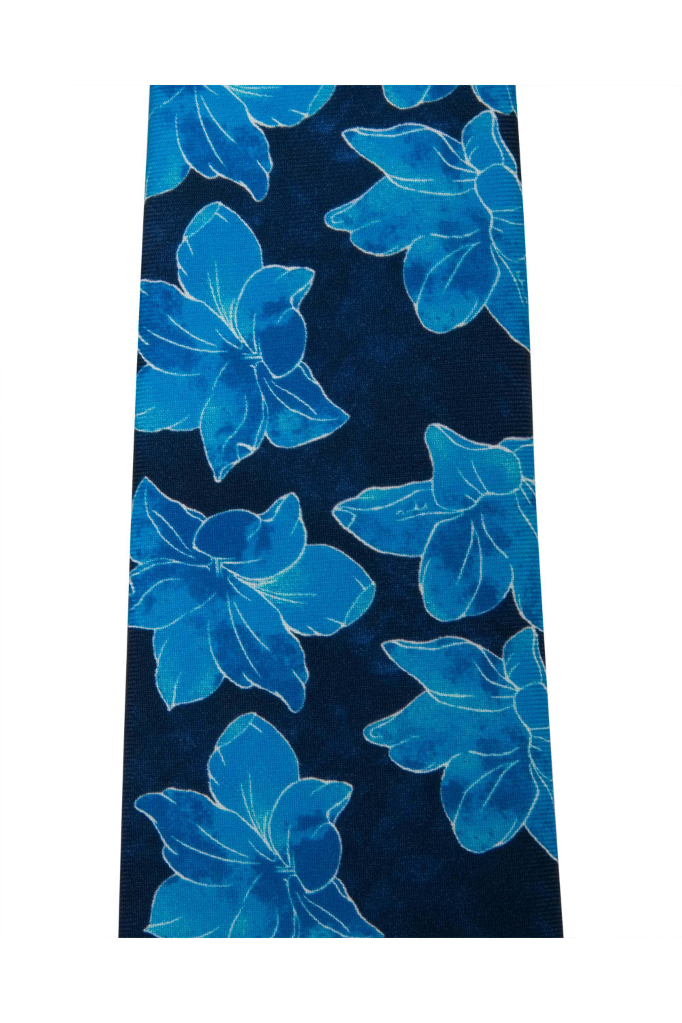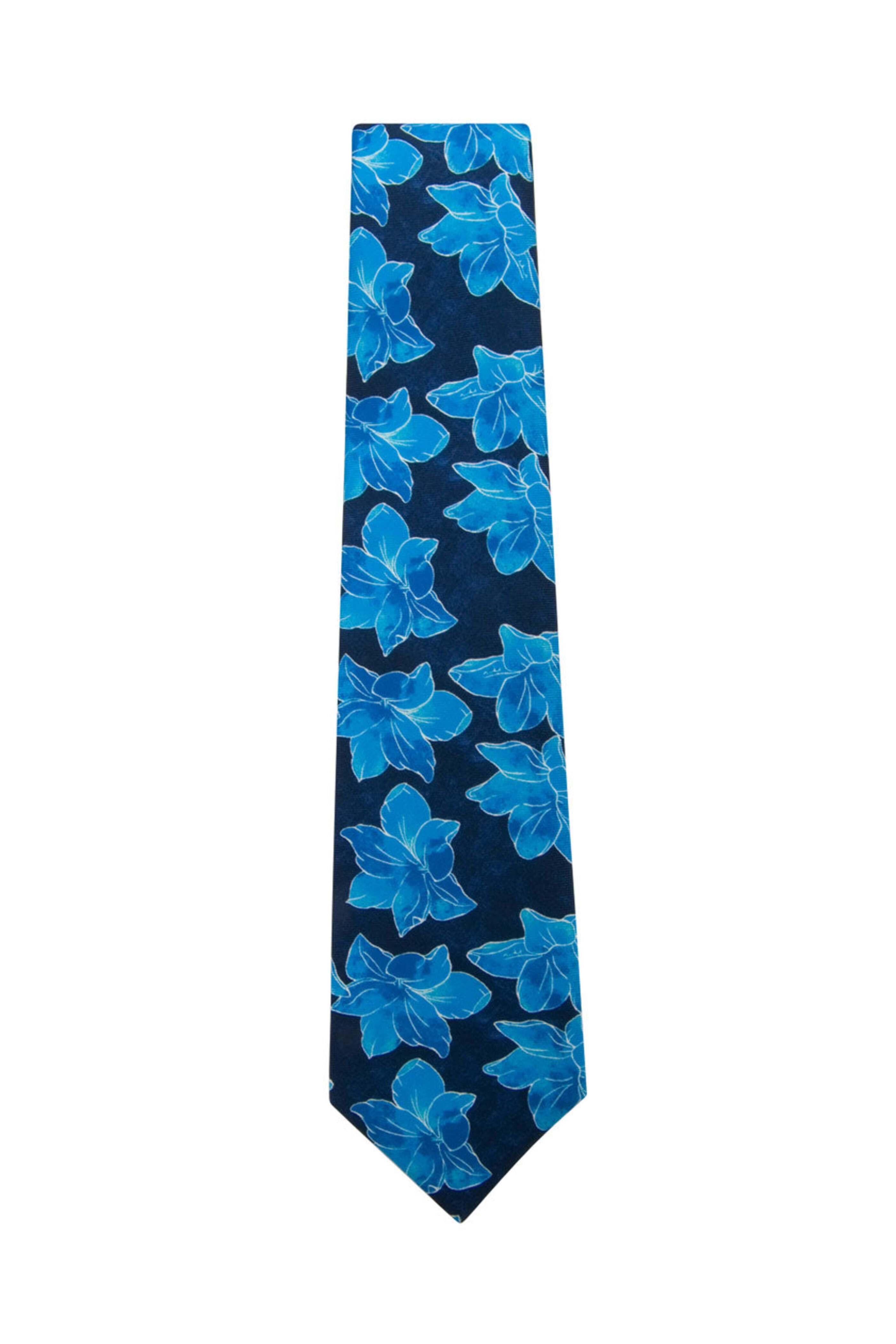 Kiton Navy and Aqua Blue Floral Tie. Seven-fold tie. 58 long. 25 wide. Handmade in Italy. 100% Silk.