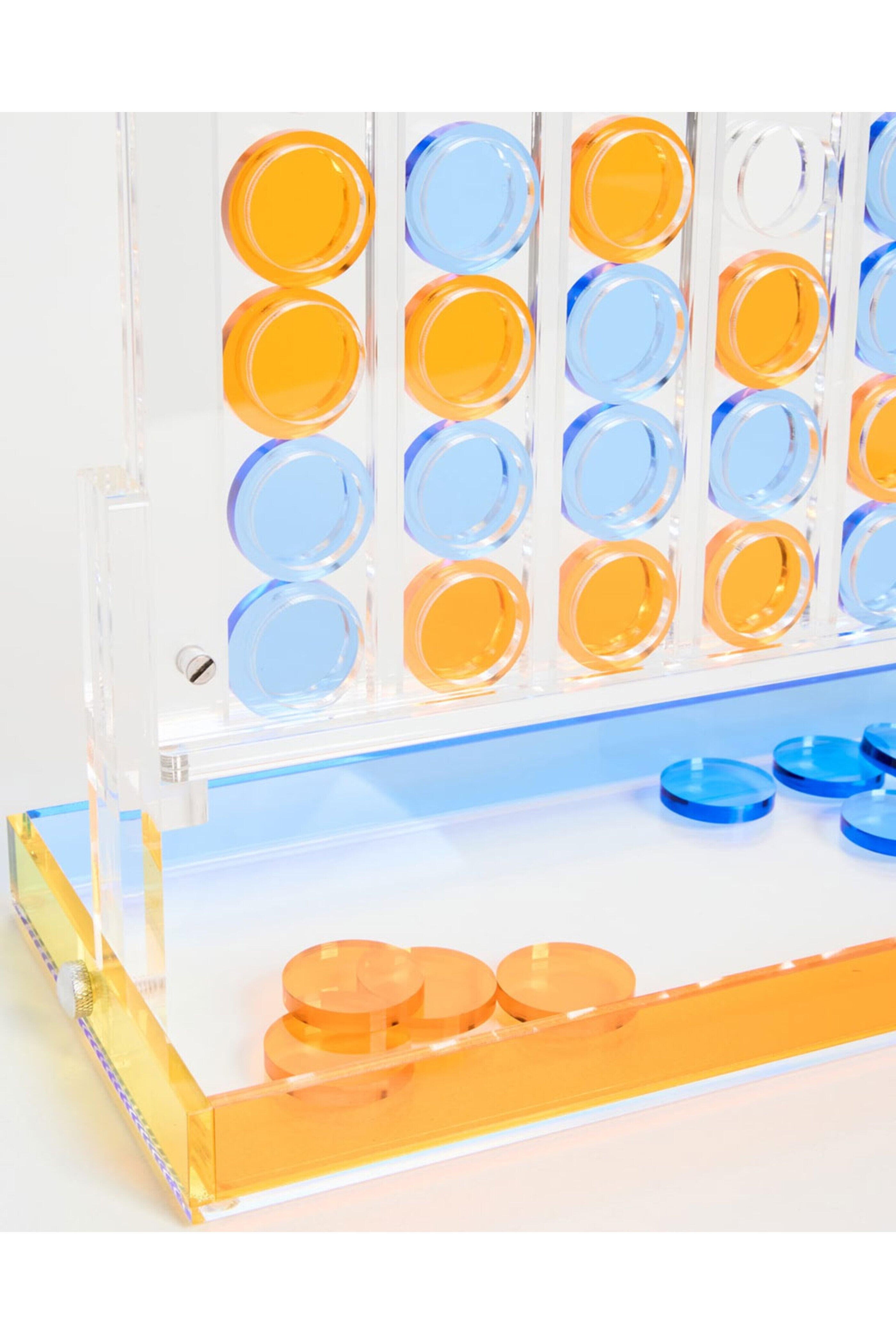Tizo Acrylic Connect Four Multicolor. Includes 1 game board and 28 discs. Rubber feet. Magnetic closure.