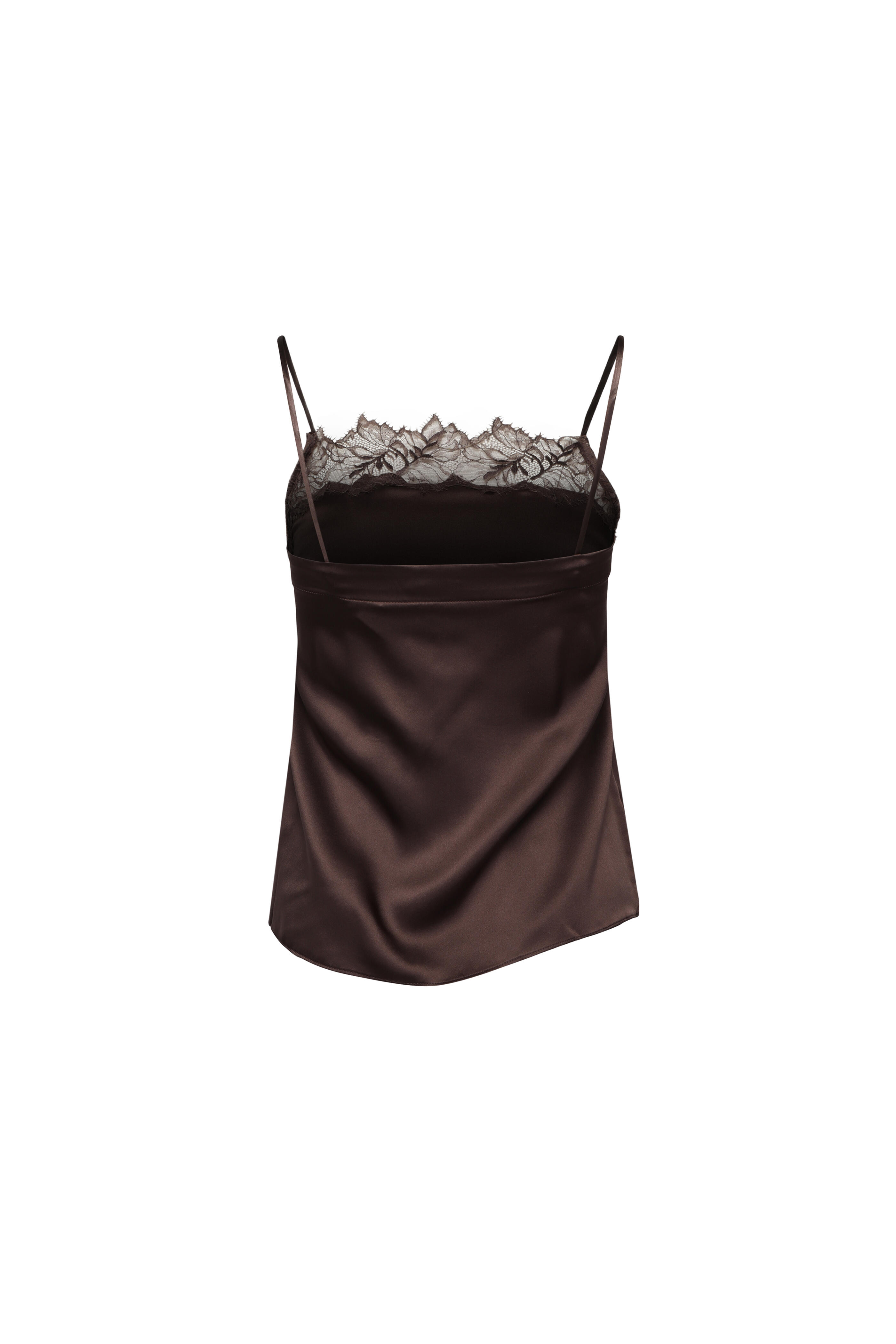 Square neck. Square back. Sleeveless; thin shoulder straps. Relaxed fit. Straight hem. Lace trim detail. Made in LA. 80% nylon, 20% cationic polyester outer, 100% nylon detail. Dry clean.