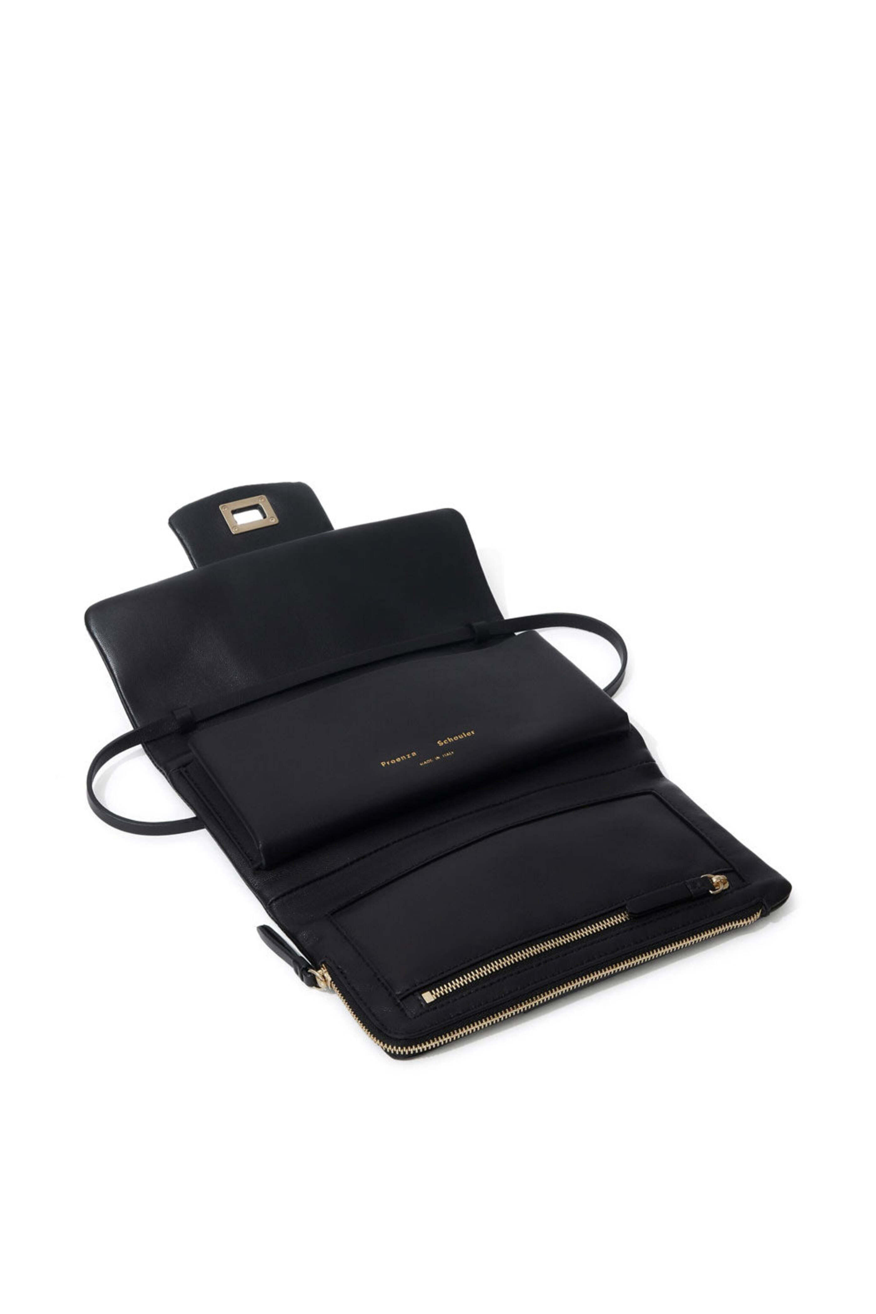 Proenza Schouler Flip Metallic Shoulder Bag in Gold. Logo lock closure. Removable and adjustable shoulder strap. Interior slip pocket, zip pocket, and card slots. Polyester outer. Leather lining. 8.5W x 5H x 2.2D. 8 strap drop. Made in Italy.