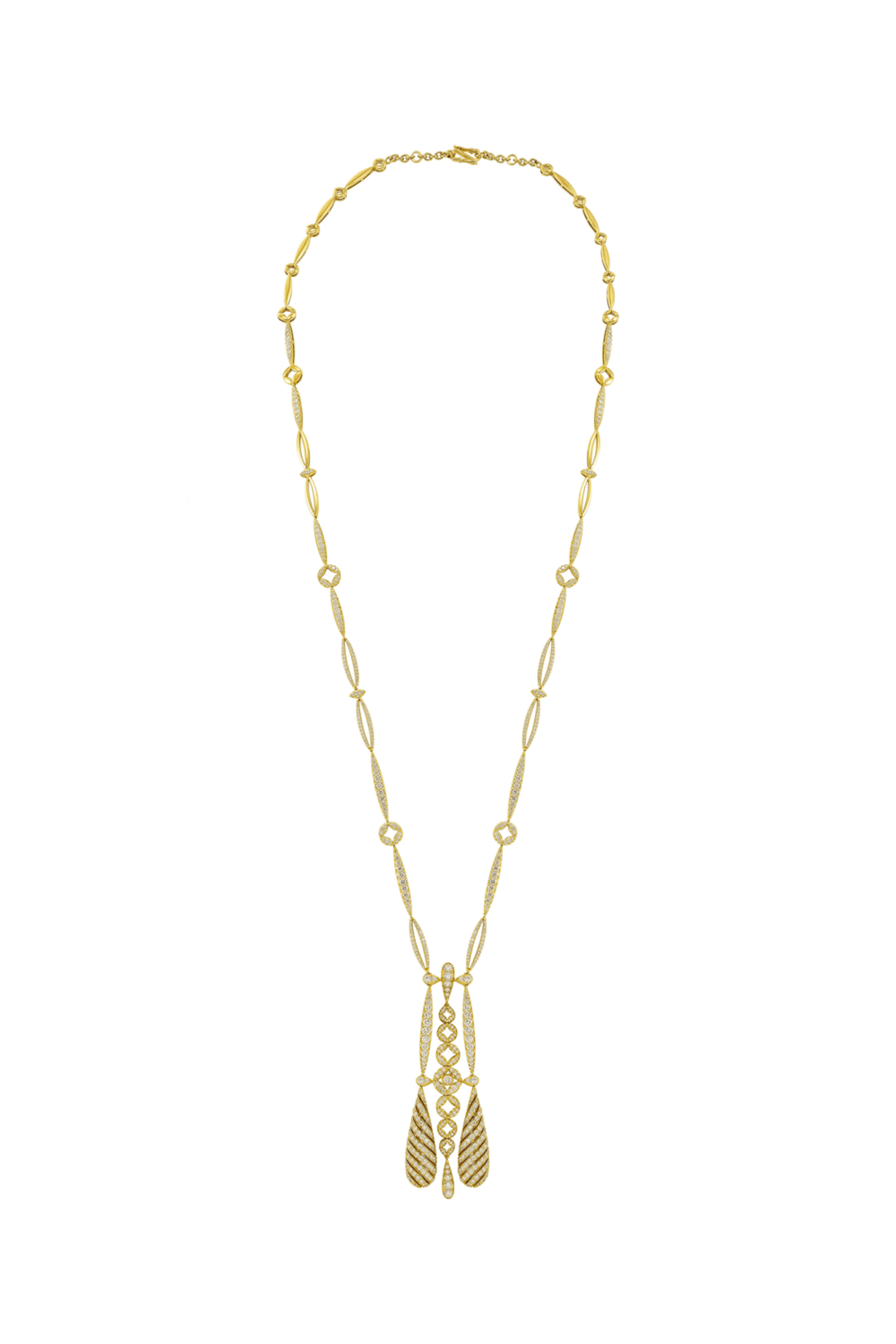 Etho Maria Diamond Statement Drop Necklace. 18k gold. Diamond 11.15 total carat weight. Mix shape diamond cut. Different shape designs. Drop pendant design. Links. Prong setting. Lobster claw clasps. Made in Greece.