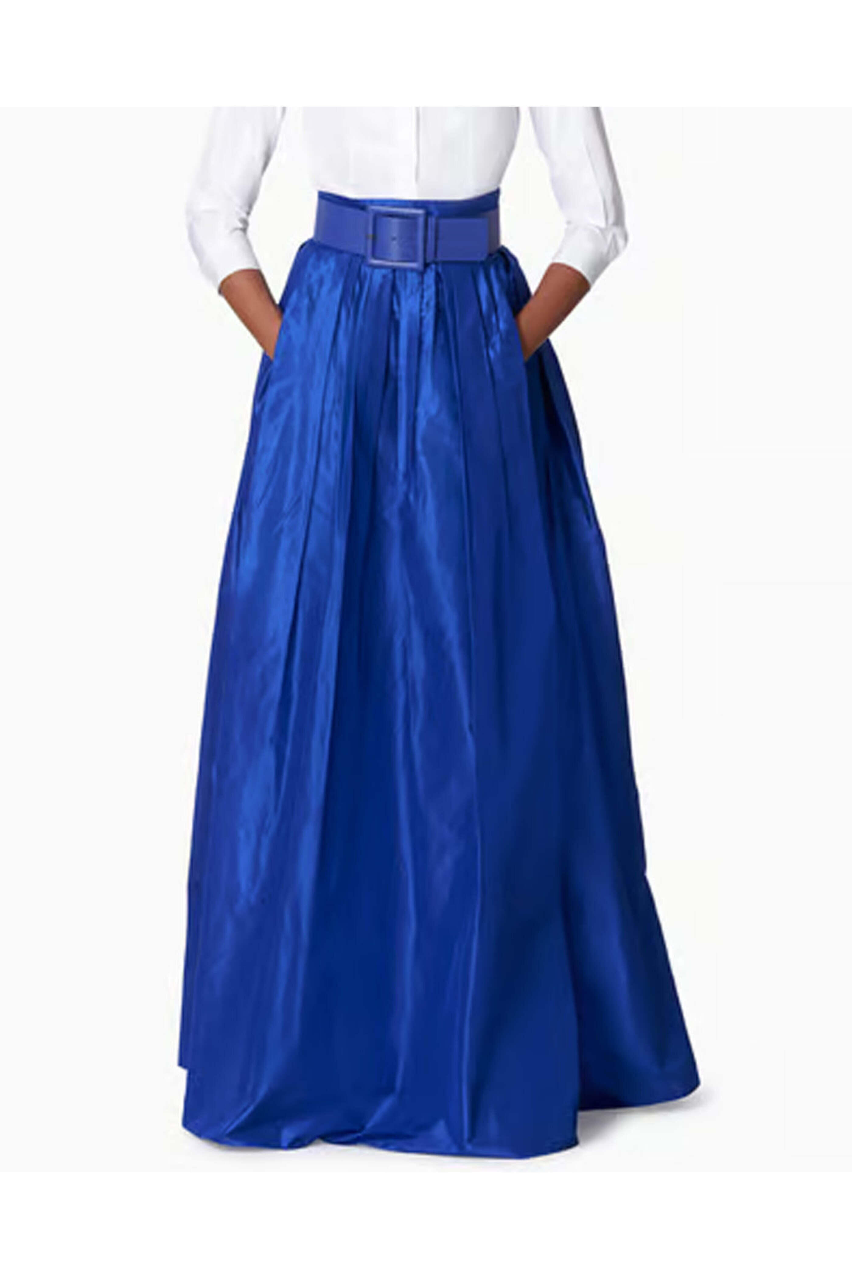 Carolina Herrera Cobalt Silk Taffeta Ball Skirt. High rise. Wide banded waist. Concealed back zip closure. Pleated throughout. Aline silhouette. Full length. Made in USA. 100% silk.