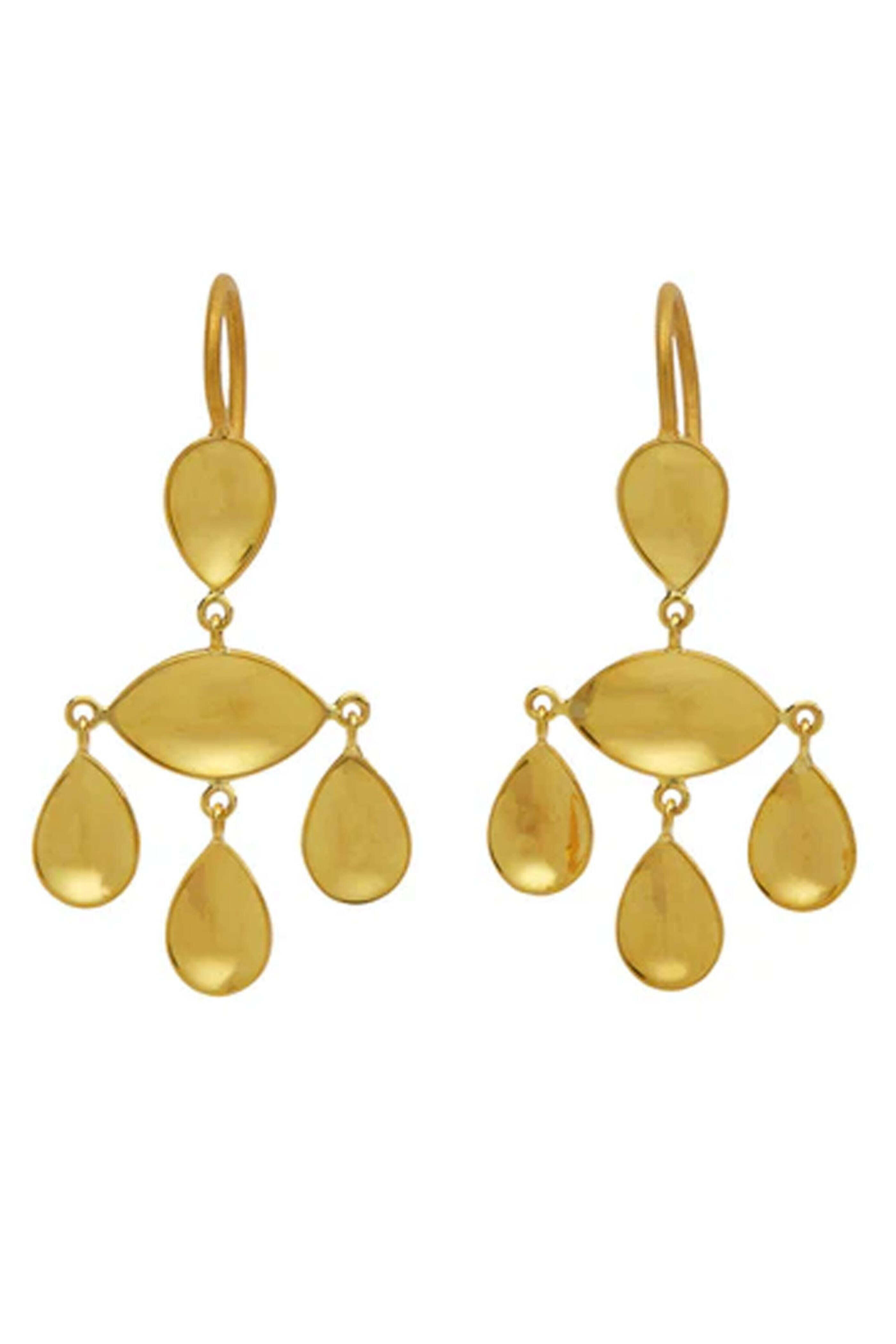 Marie-Hélène De Taillac Gold Marquise Mirror Earrings. 22k gold. Mirror effect design. Marquise-cut design. Drop style. 1.25 L. Wire back. Made in India.
