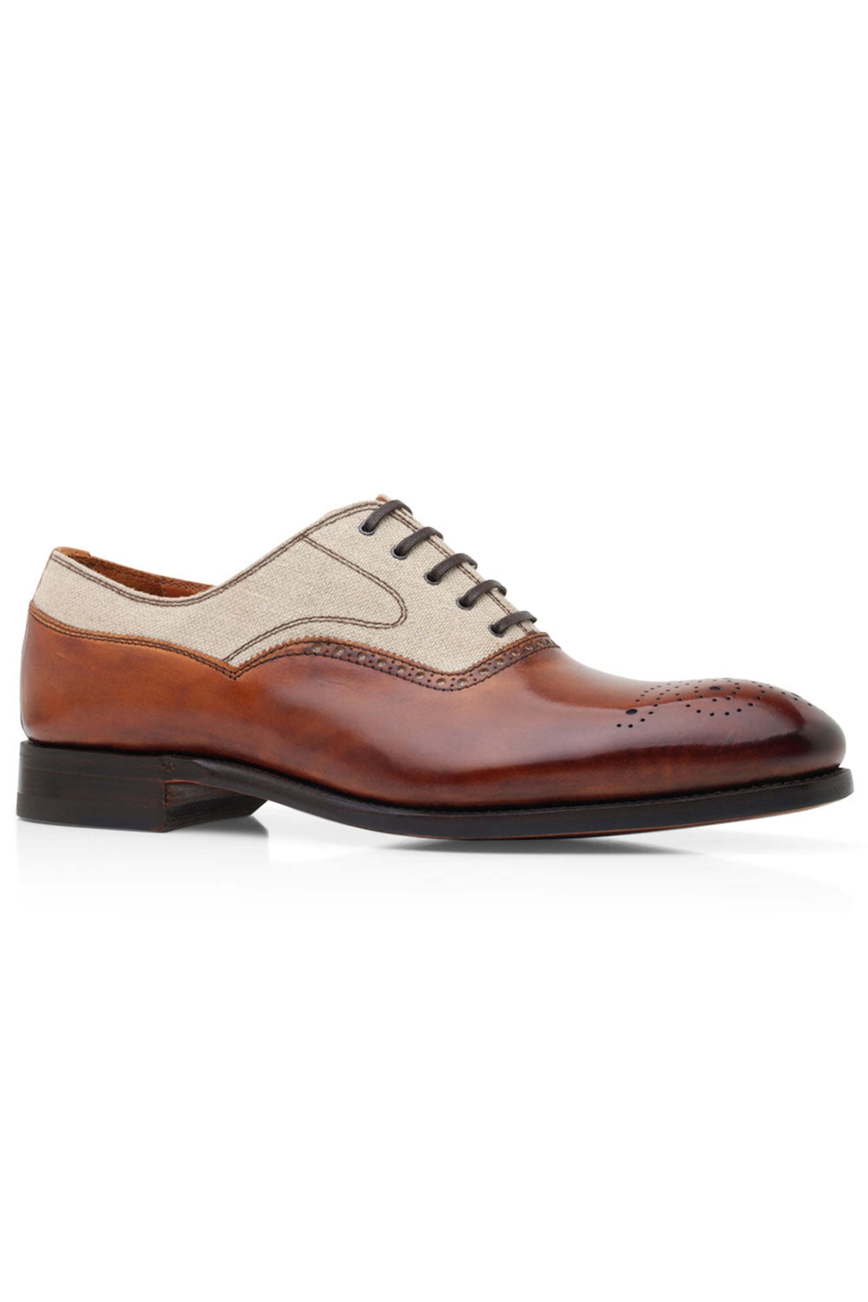 - Bontoni Leather and Raffia Perforated Laceup in Cognac