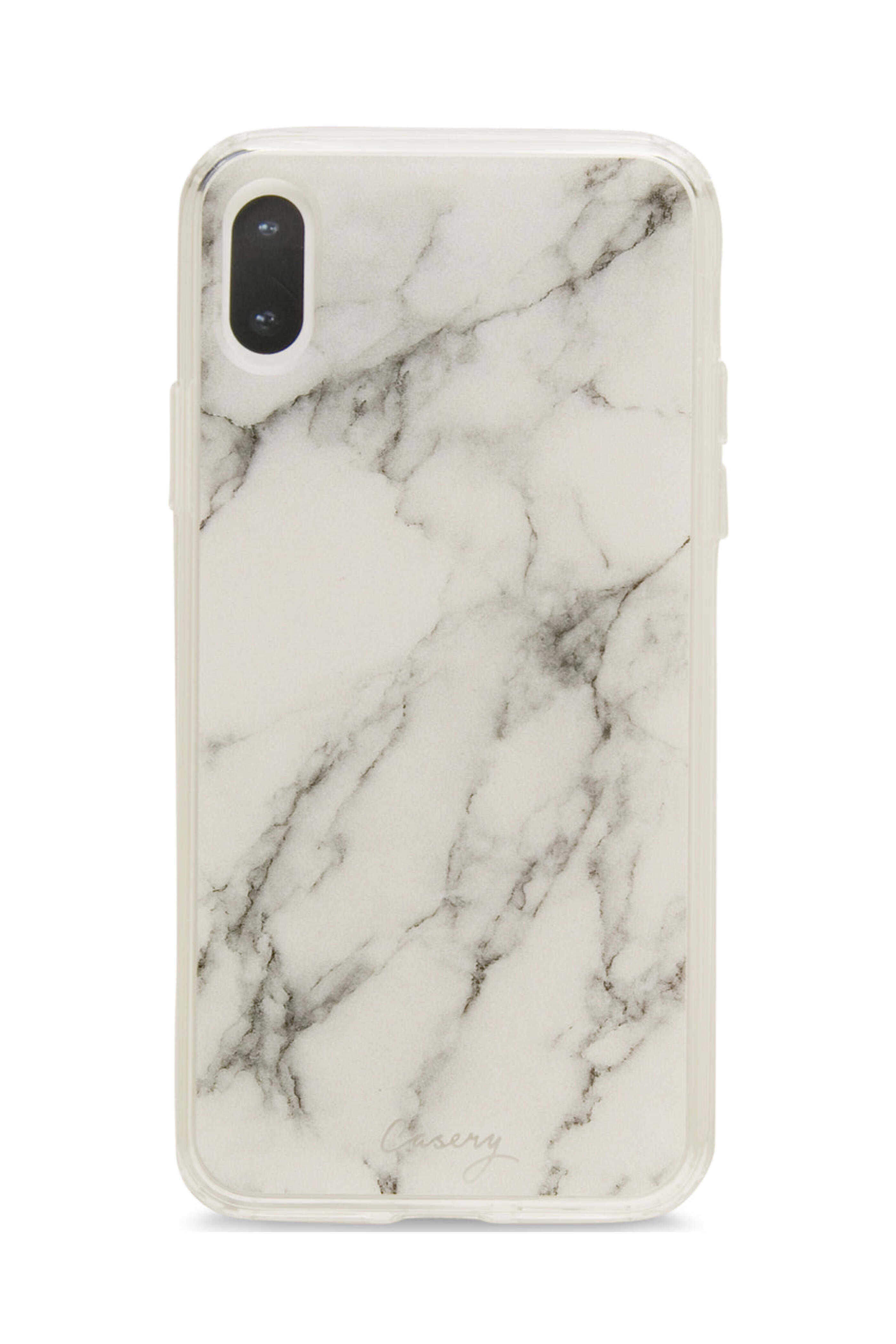 - Casery White Marble iPhone Case Slim fit Anti-scratch Clear sides with raised lip around front Drop tested Designed in LA iPhone X and iPhone XS