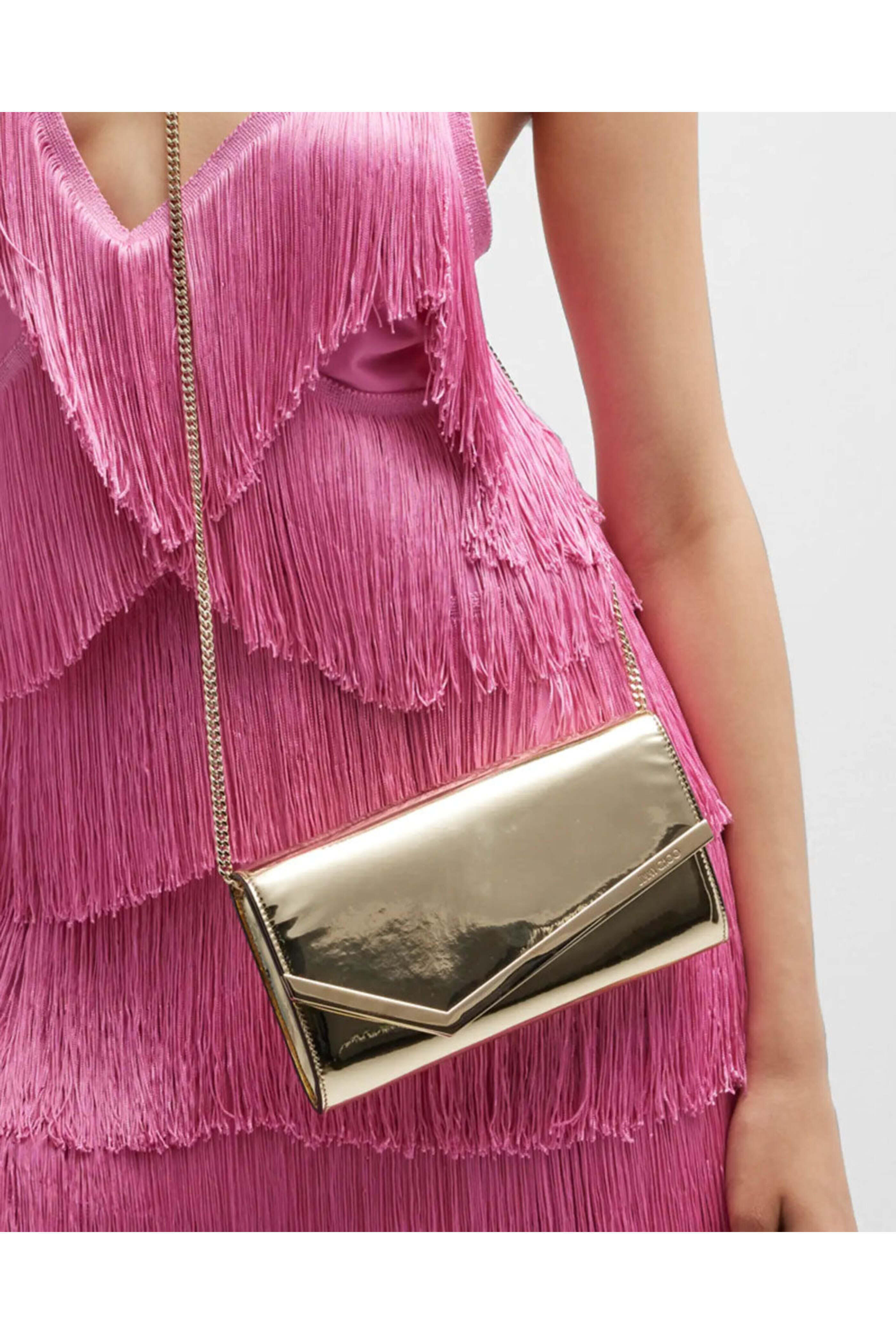 - Jimmy Choo Emmie Flap Patent Clutch in Gold