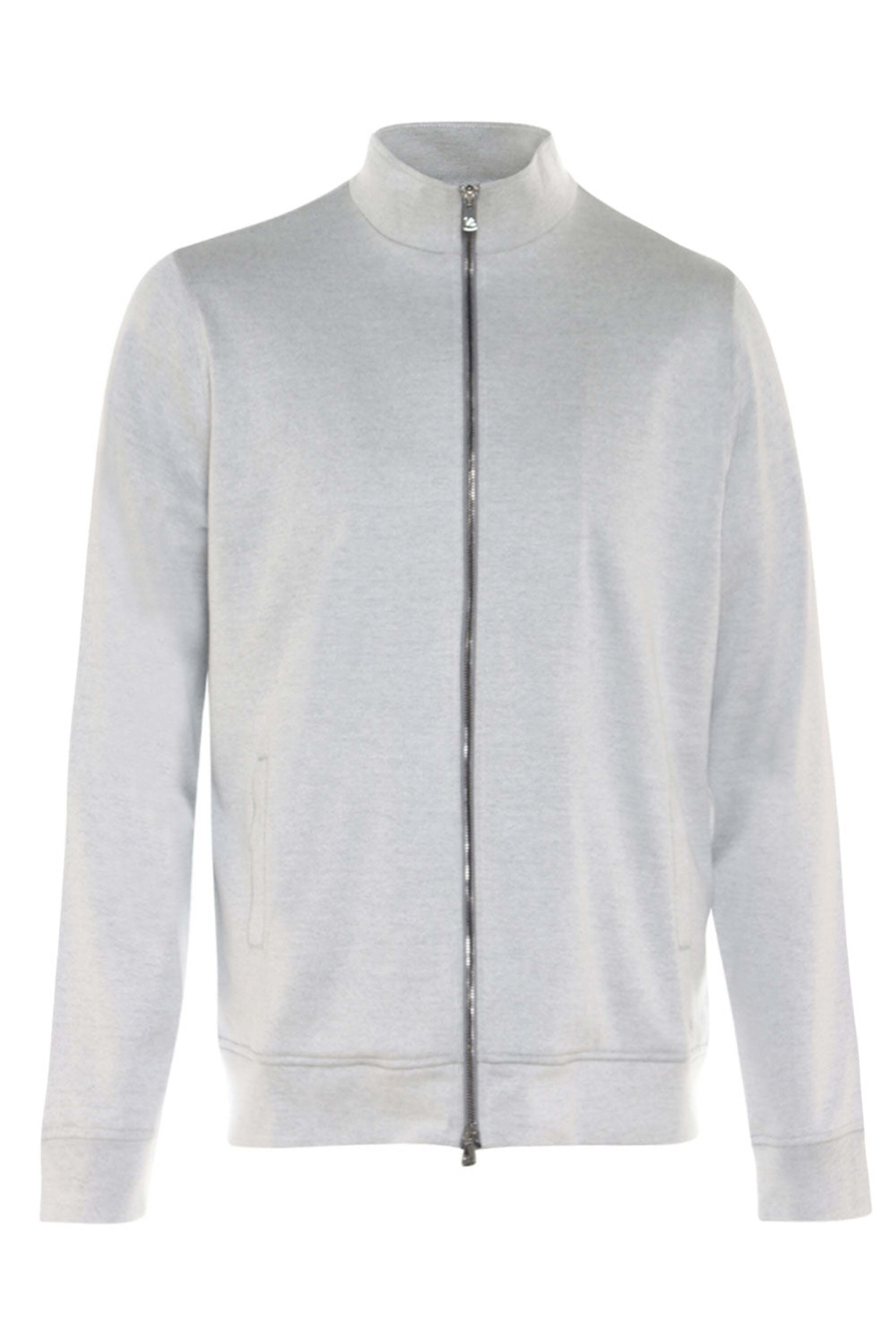 - Isaia Grey Cotton Blend Mock Neck Zip Jacket