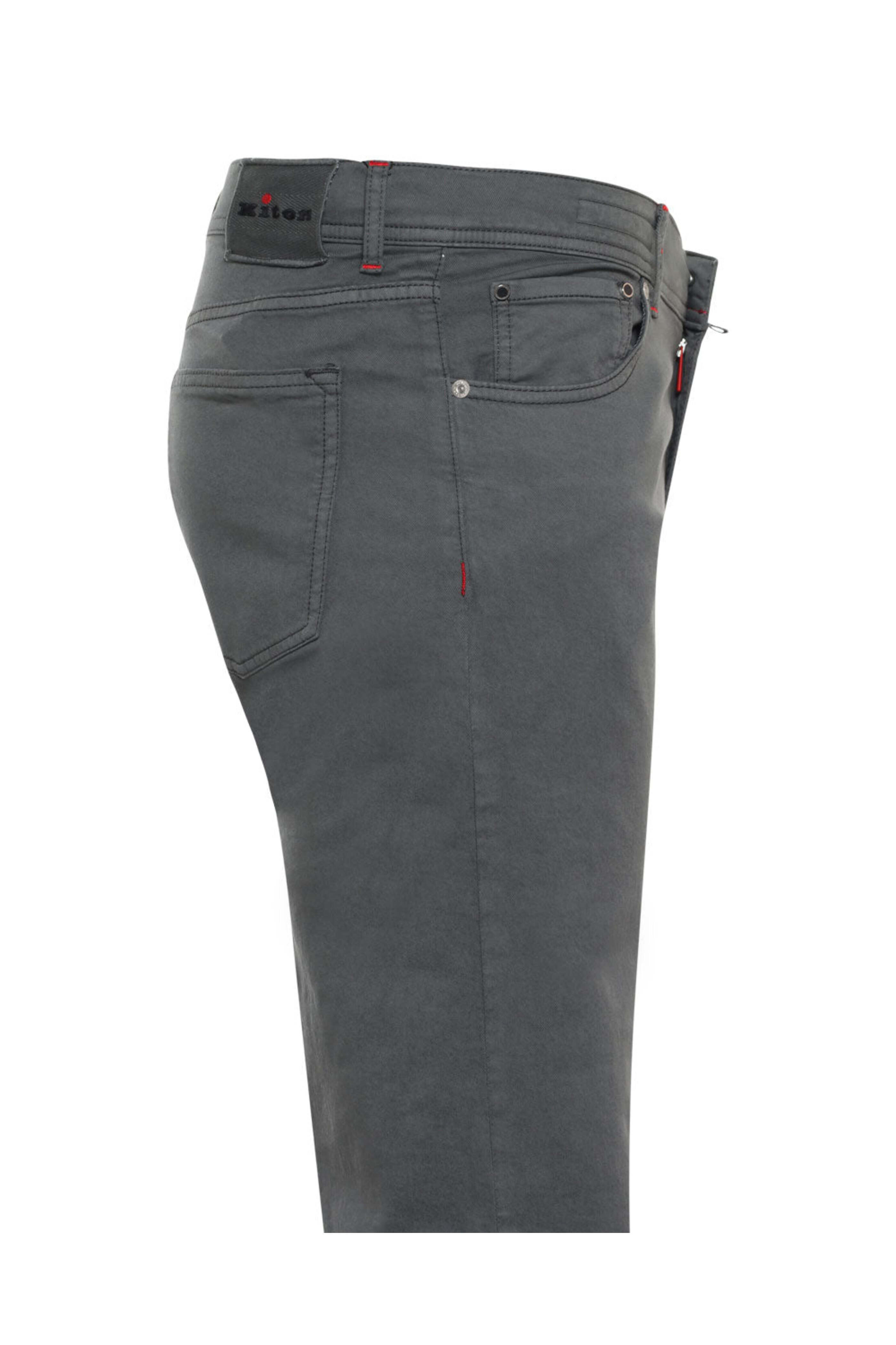 - Kiton Washed Grey Cotton Blend Slim Fit Chino Pant