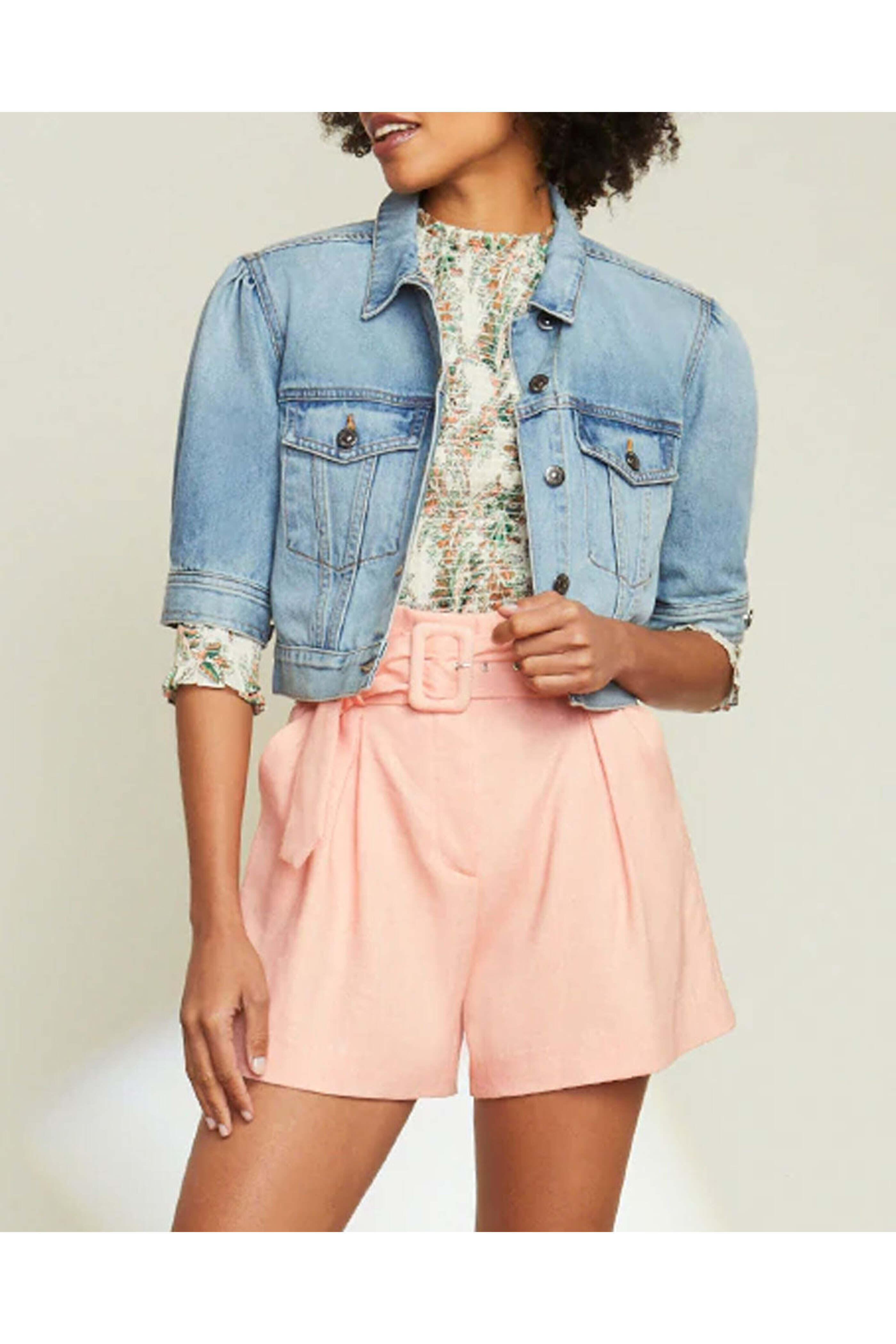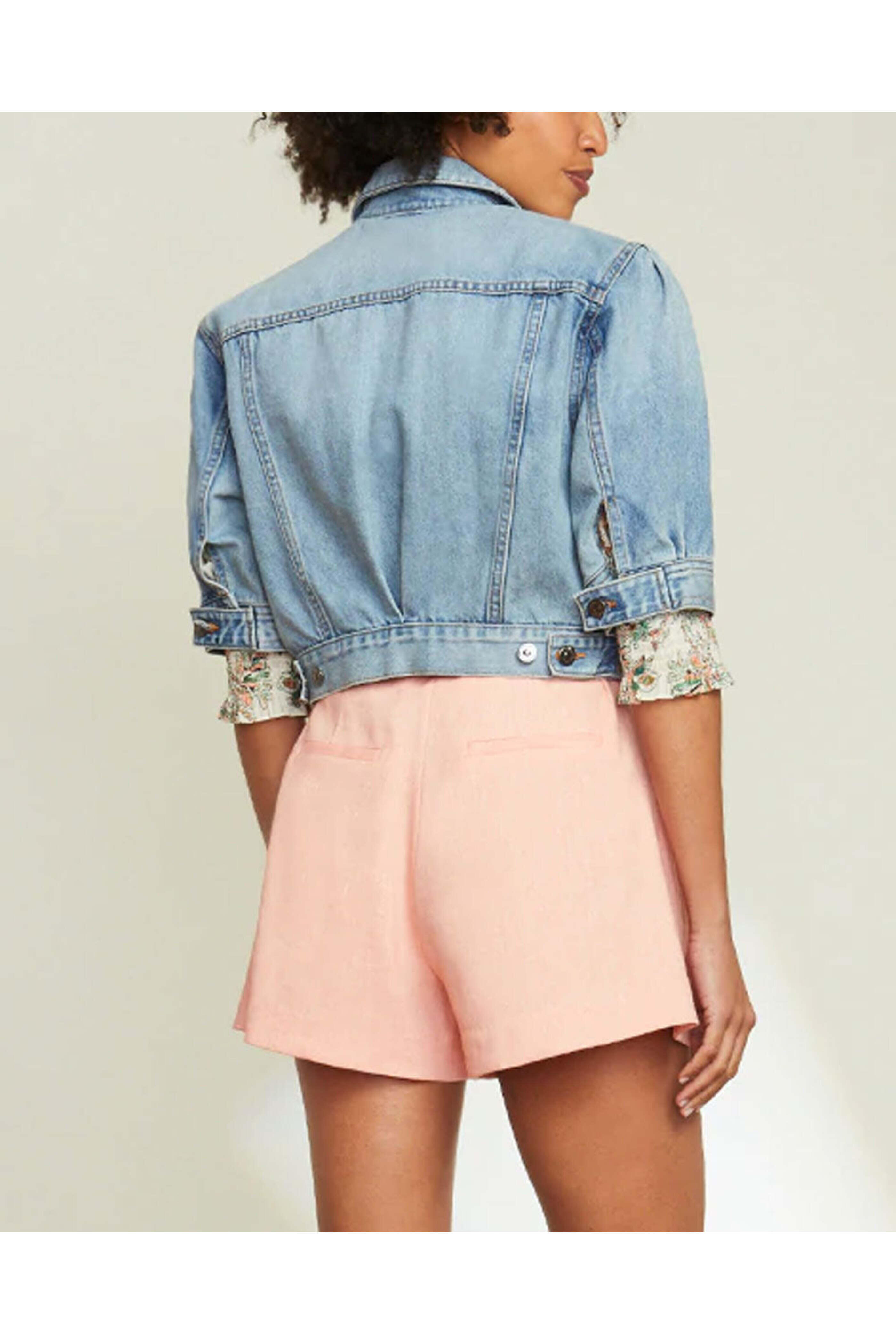 - Veronica Beard Raina Short Sleeve Denim Jacket in Keystone