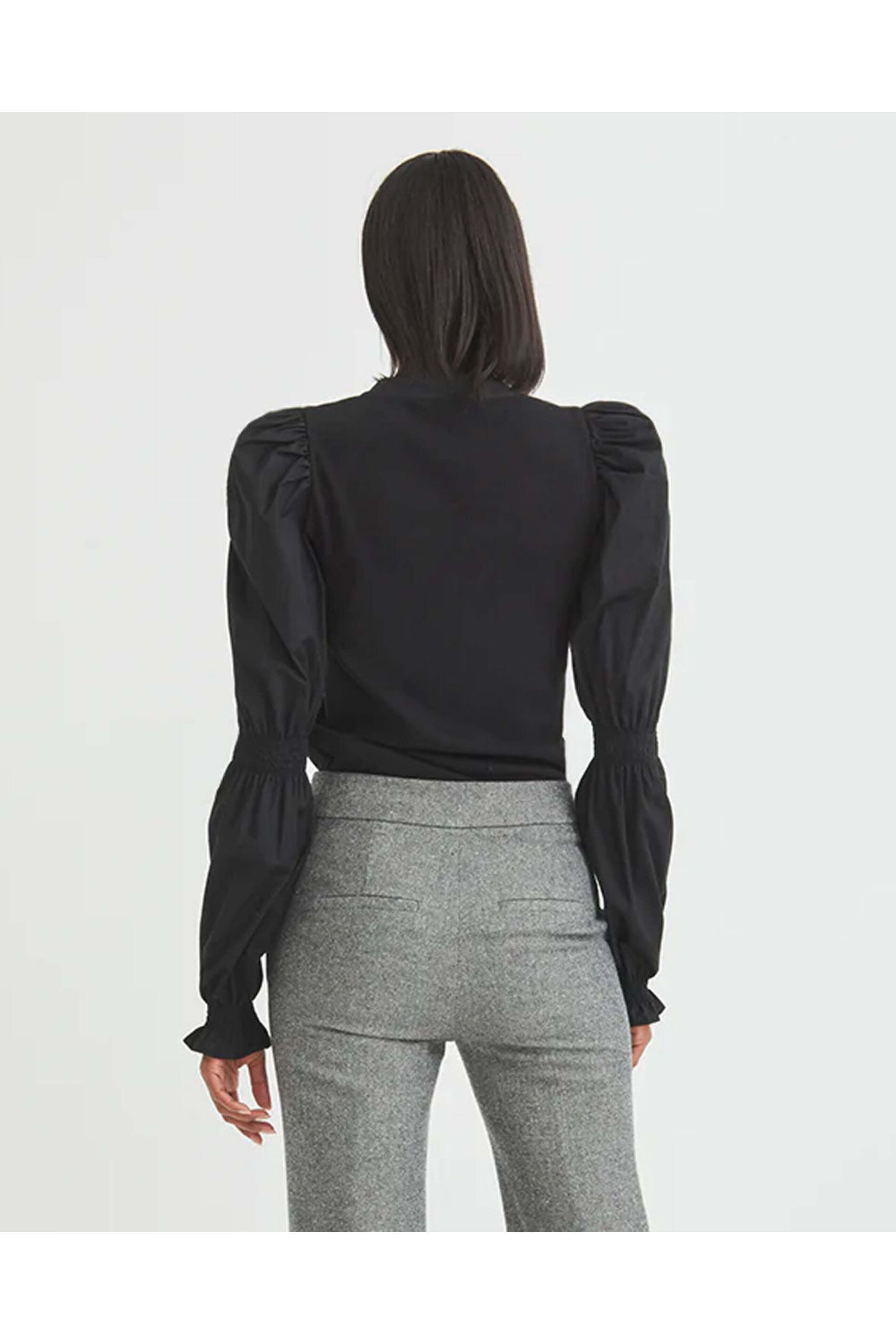 - Long puff sleeves; cinched detail