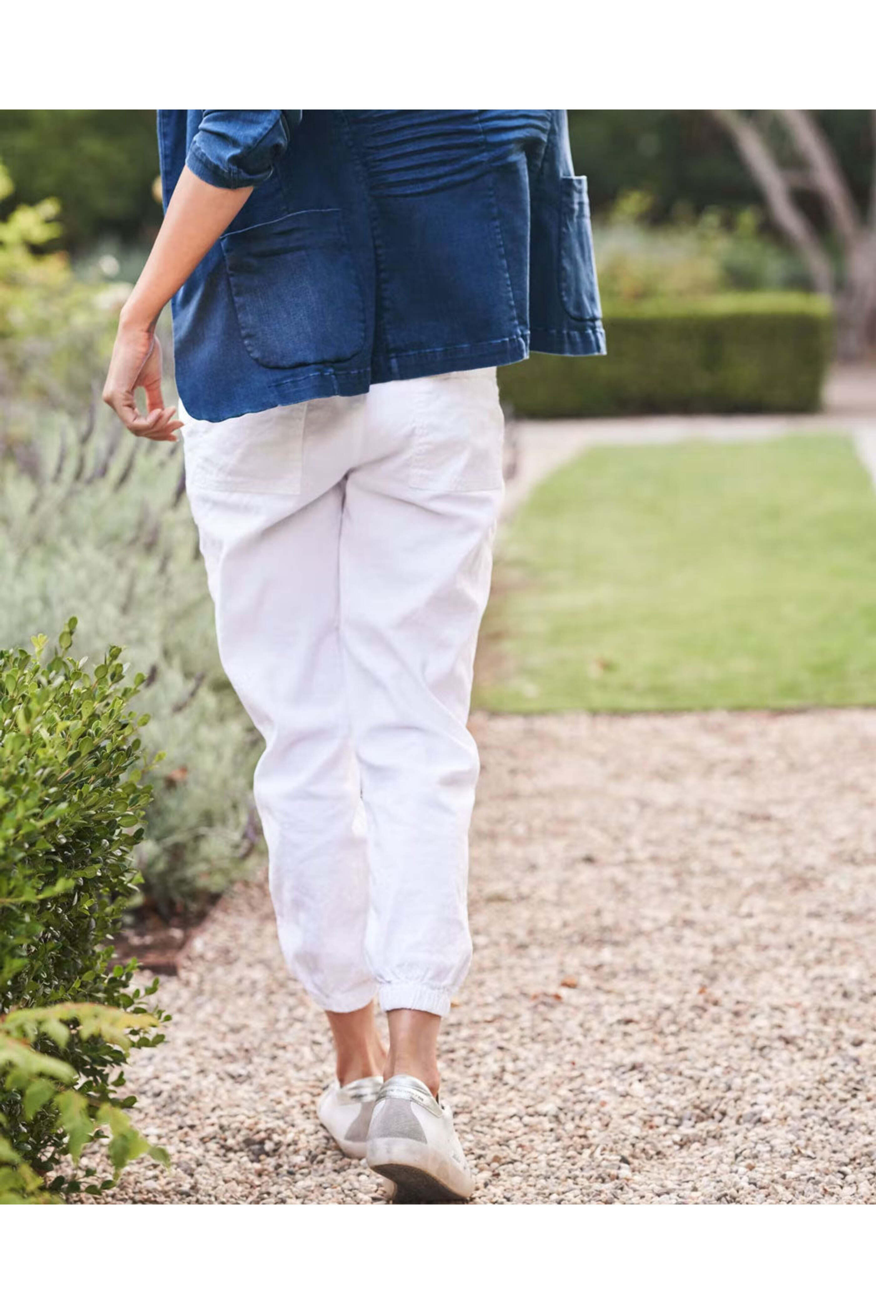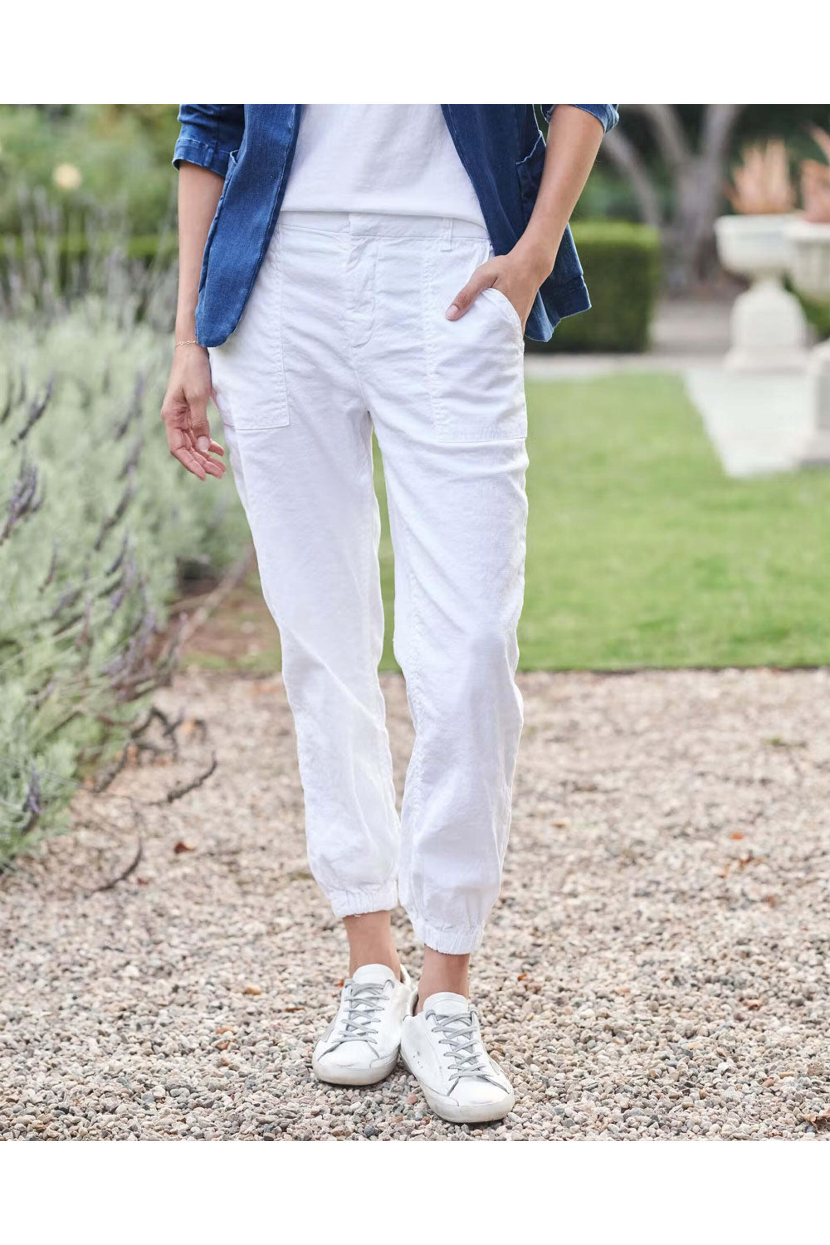 - Frank & Eileen White Linen Jameon Jogger Performance Pant