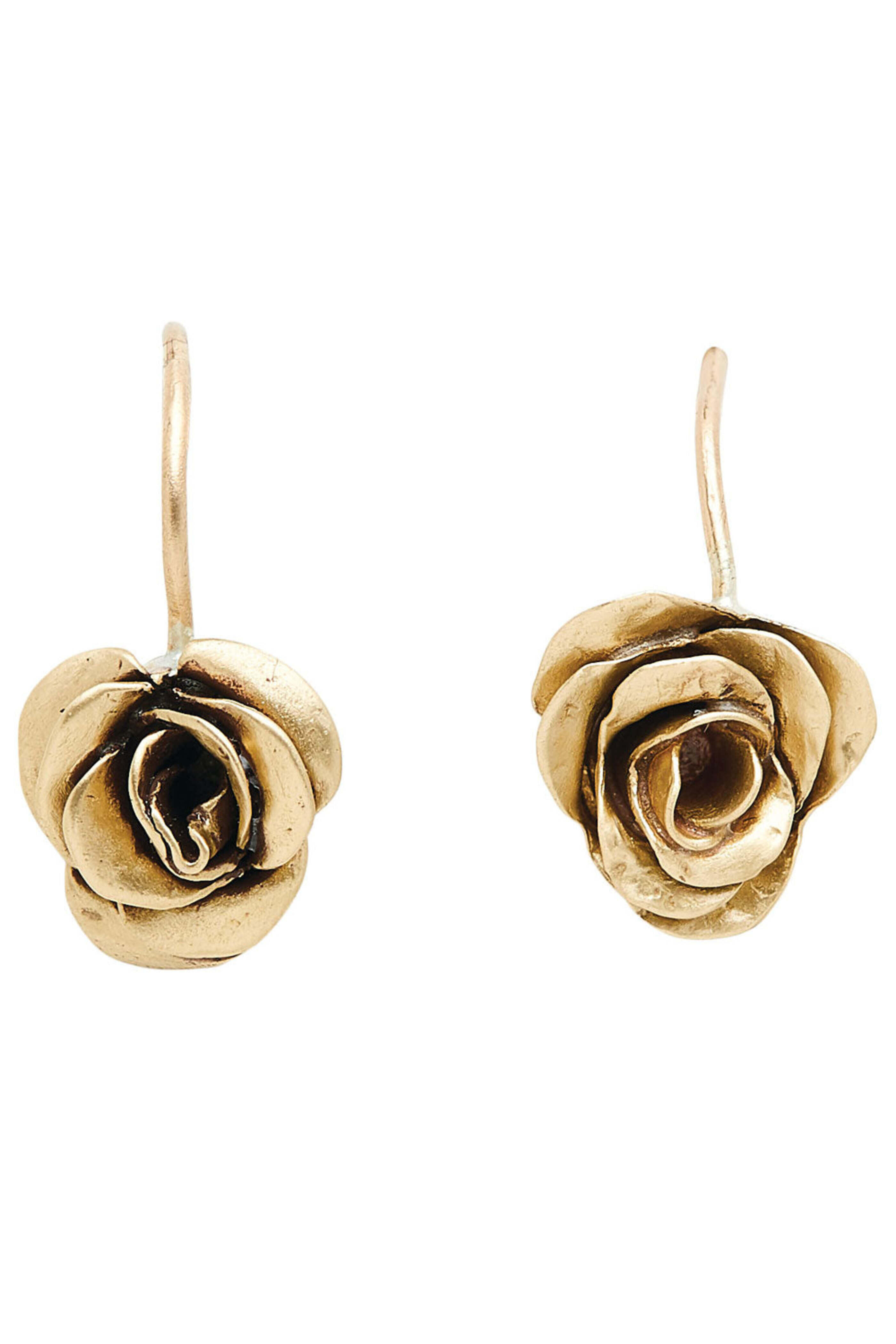 Julie Cohn Petite Rose Bronze Earrings. Bronze. Gold filled ear wire. Length: 0.25". The artist's studio is surrounded by a garden that we frequently mine for organic inspiration. Limited edition. Handcrafted in the USA.