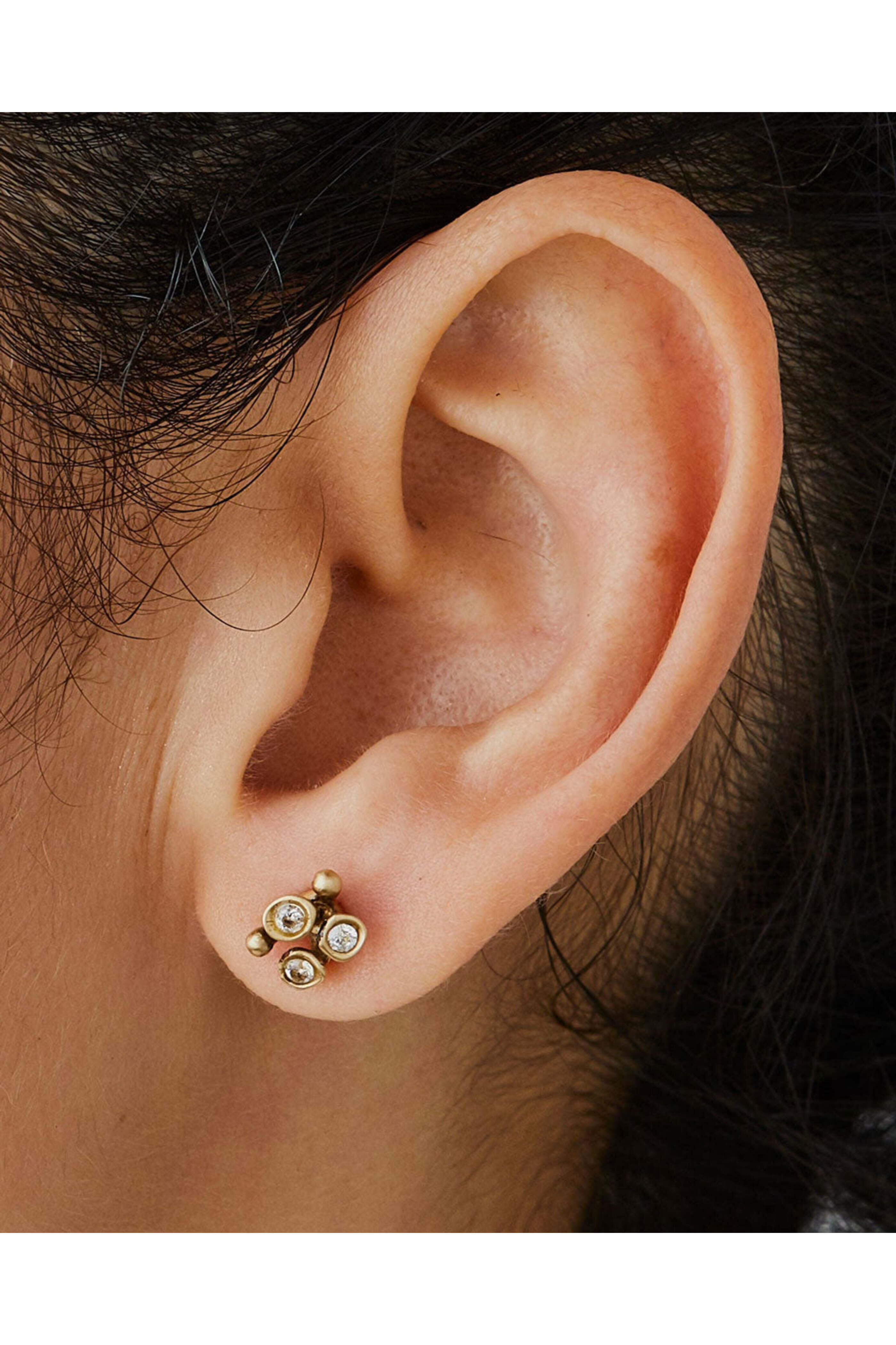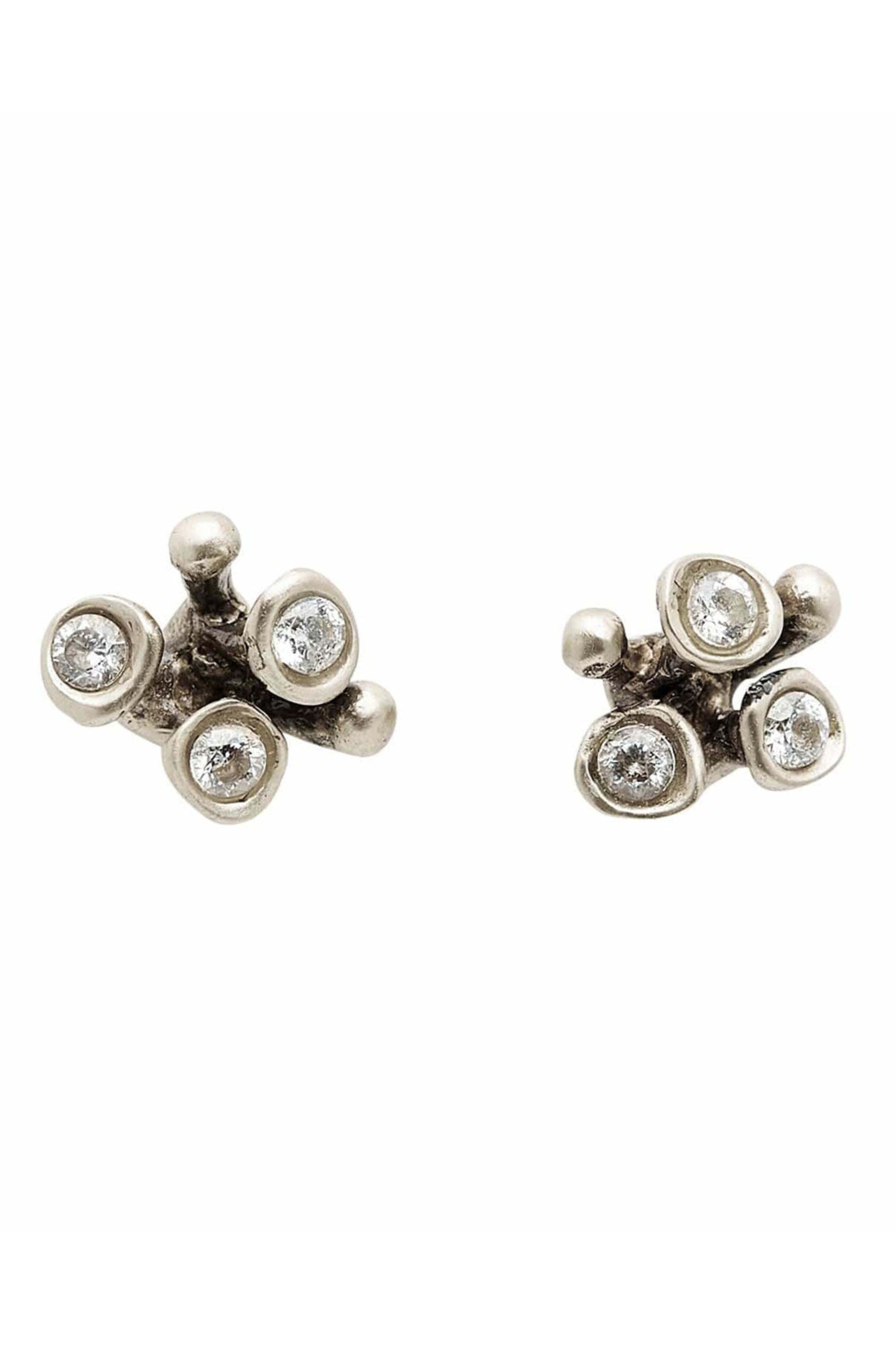 Julie Cohn Blossom Sterling Silver Earrings. Sterling silver. Cubic Zirconia. Gold-filled. Limited-edition. 0.25 L. Post back. Handmade in the USA.