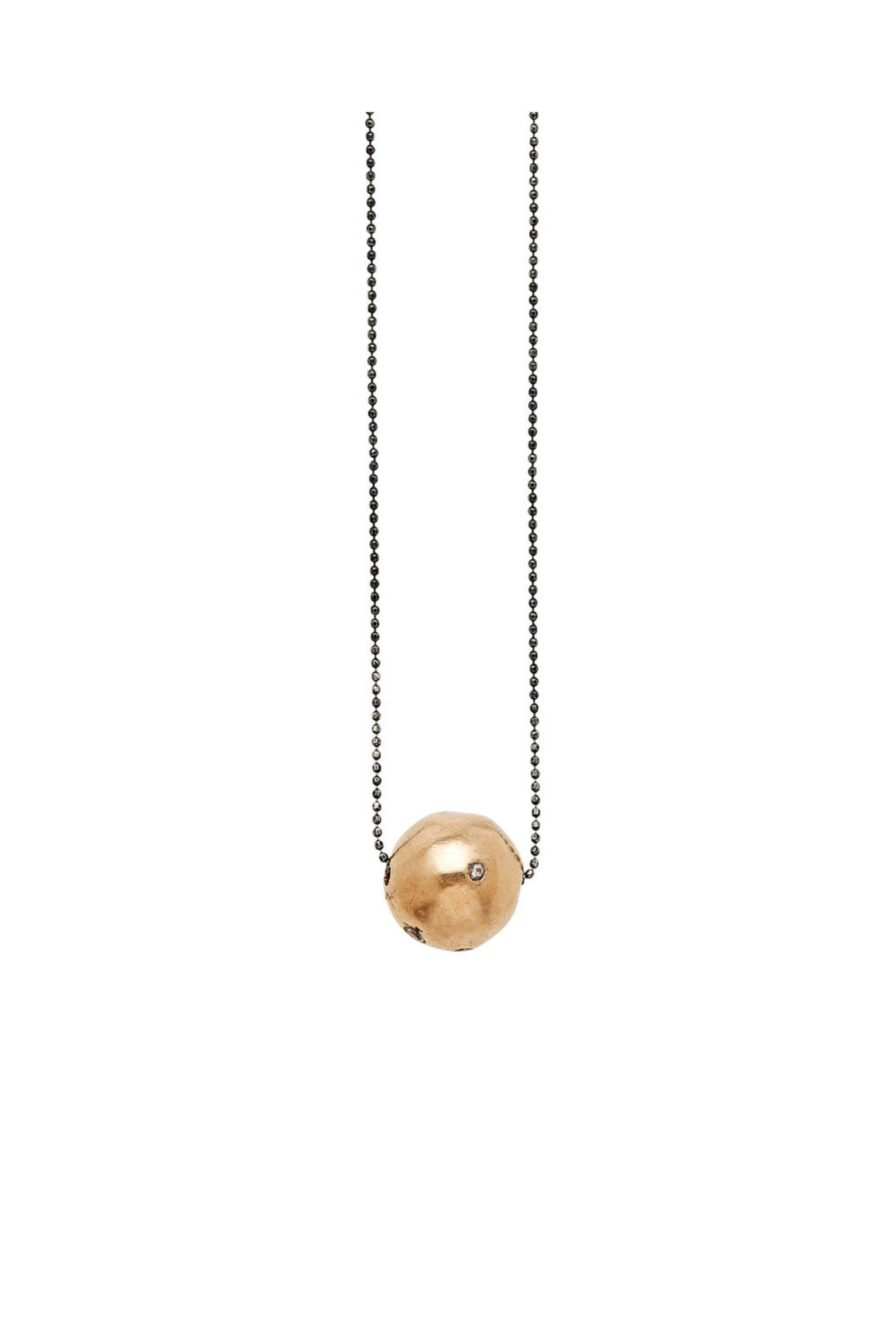Julie Cohn Moon Rock Necklace. Bronze. Cubic zirconia. Sterling silver chain. Moon rock pendant. 16 L. Pendant 0.5 D. Hook closure. Handcrafted in USA.