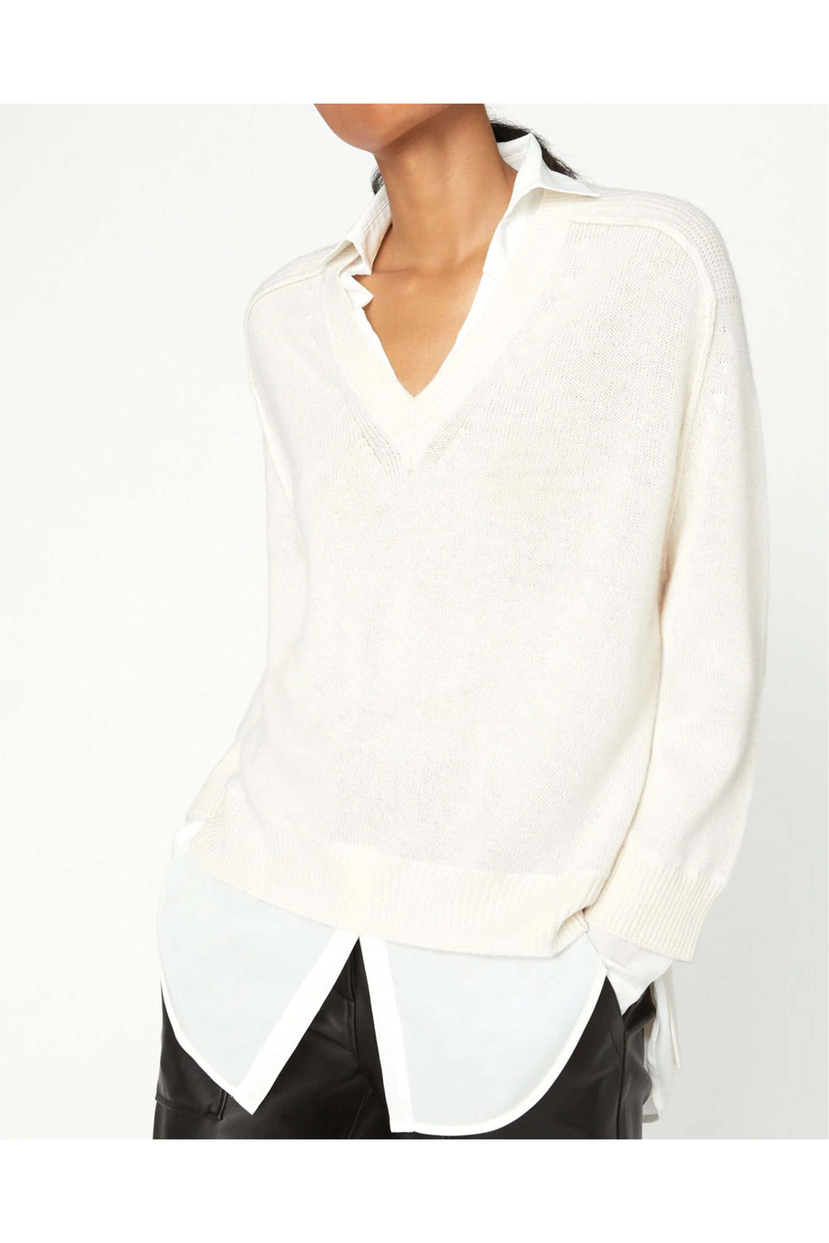 - Brochu Walker Almond and White V Neck Layered Pullover