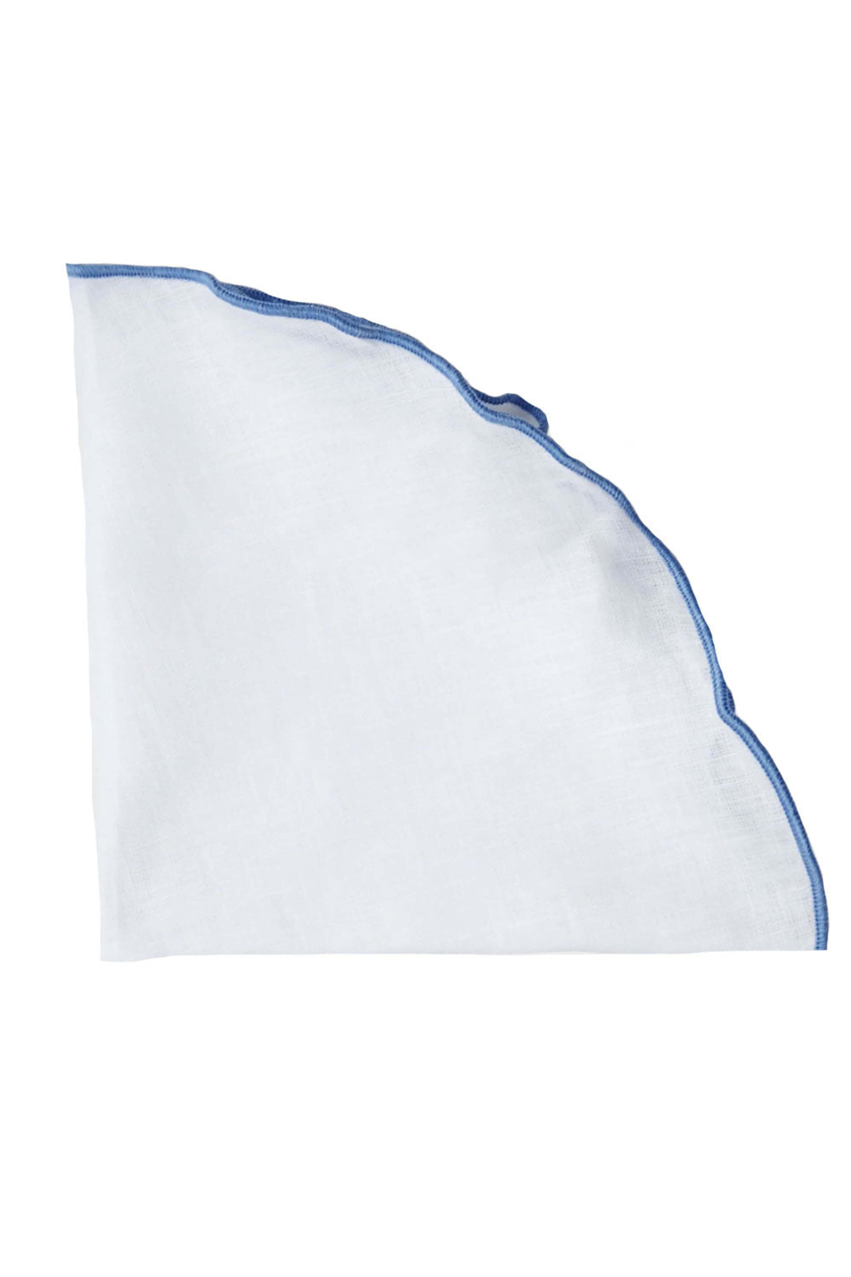 Edward Armah Periwinkle Trim Pocket Circle. Approx. 12.5" diameter. Contrast rolled edges. Made in USA. Dry clean only. 100% Linen.