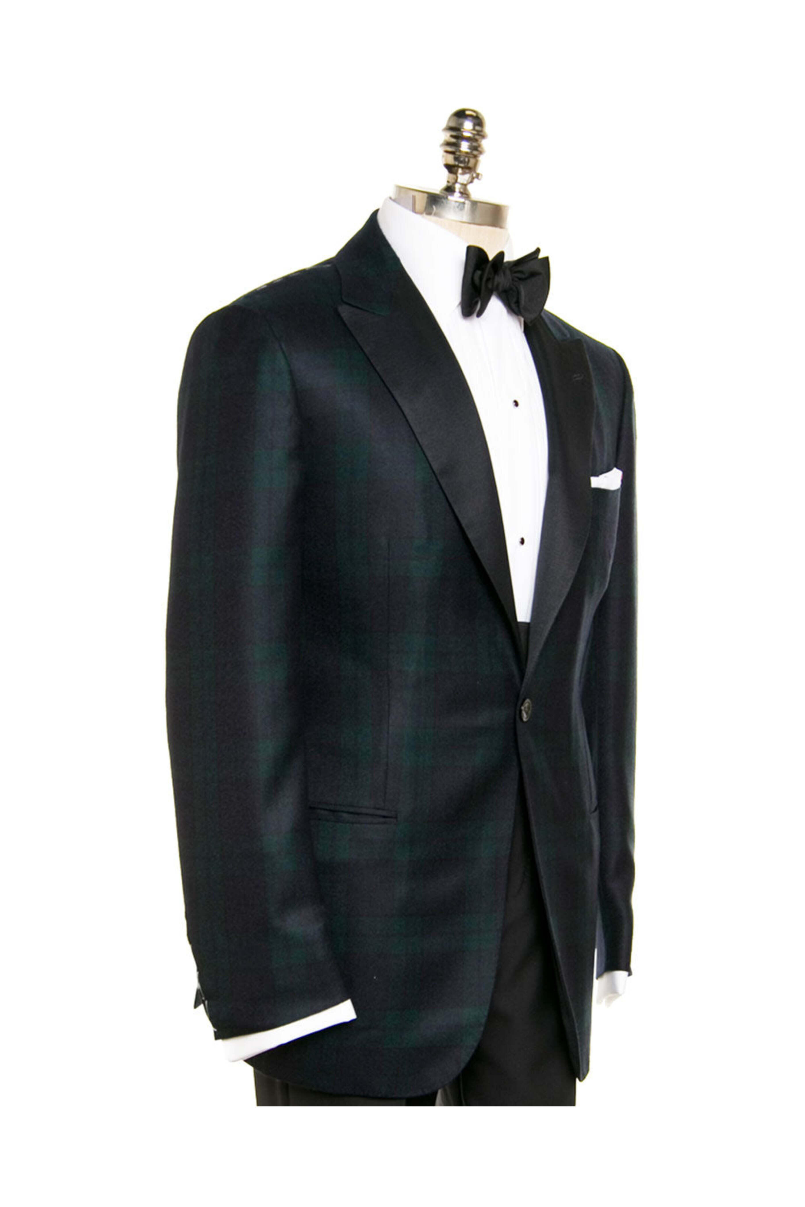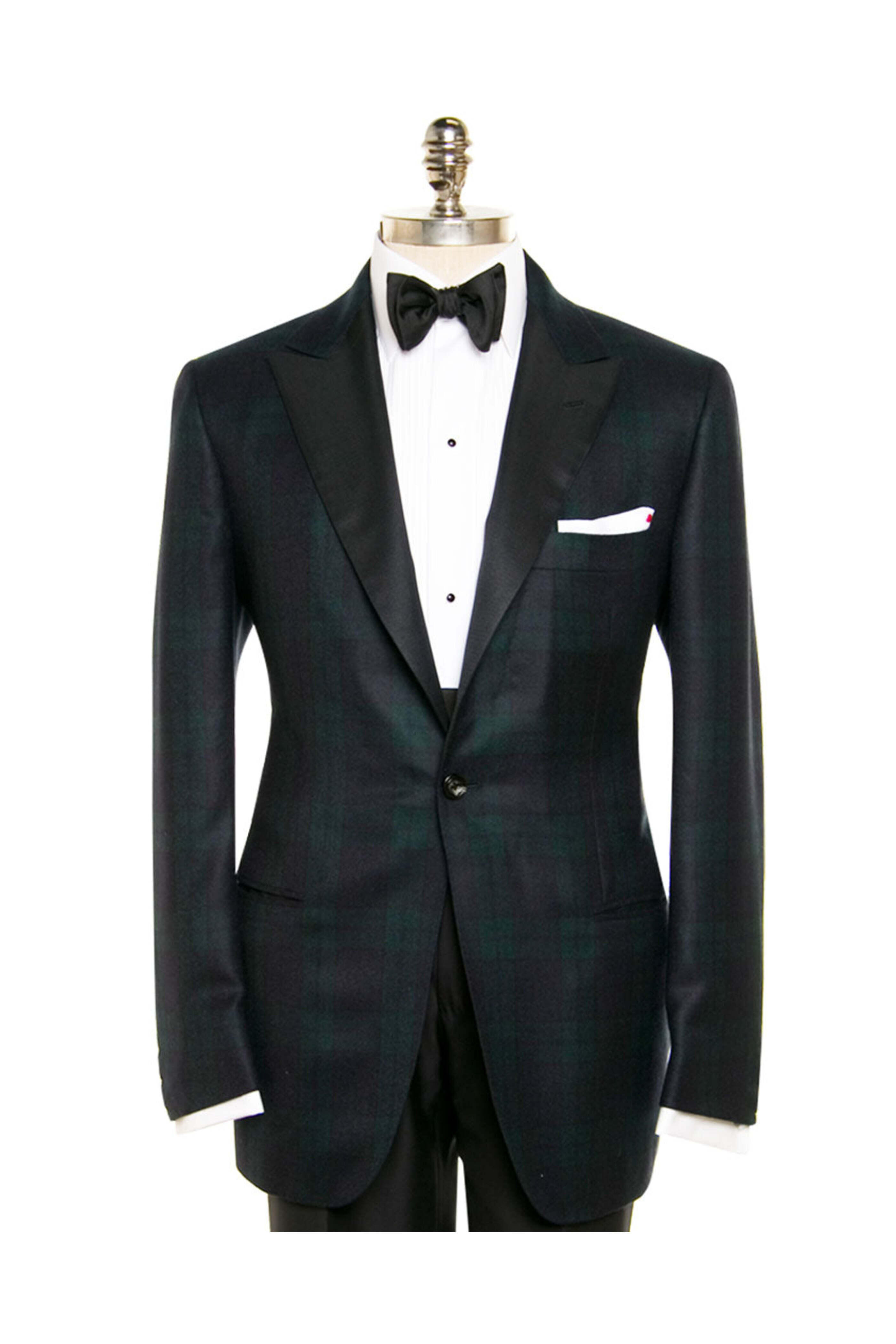 - Kiton Blackwatch Peak Lapel Smoking Jacket