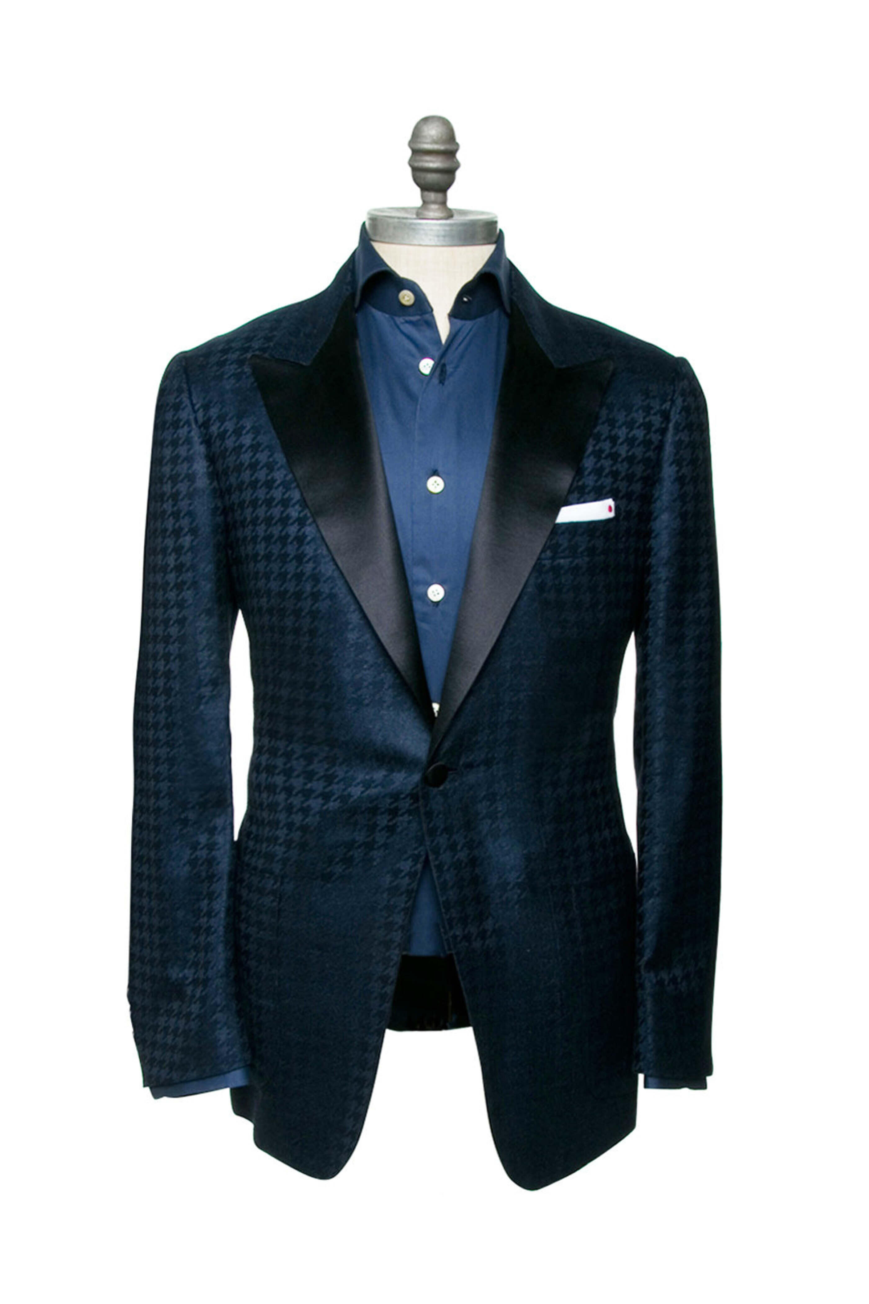 - Kiton Navy Tonal Houndstooth Dinner Jacket