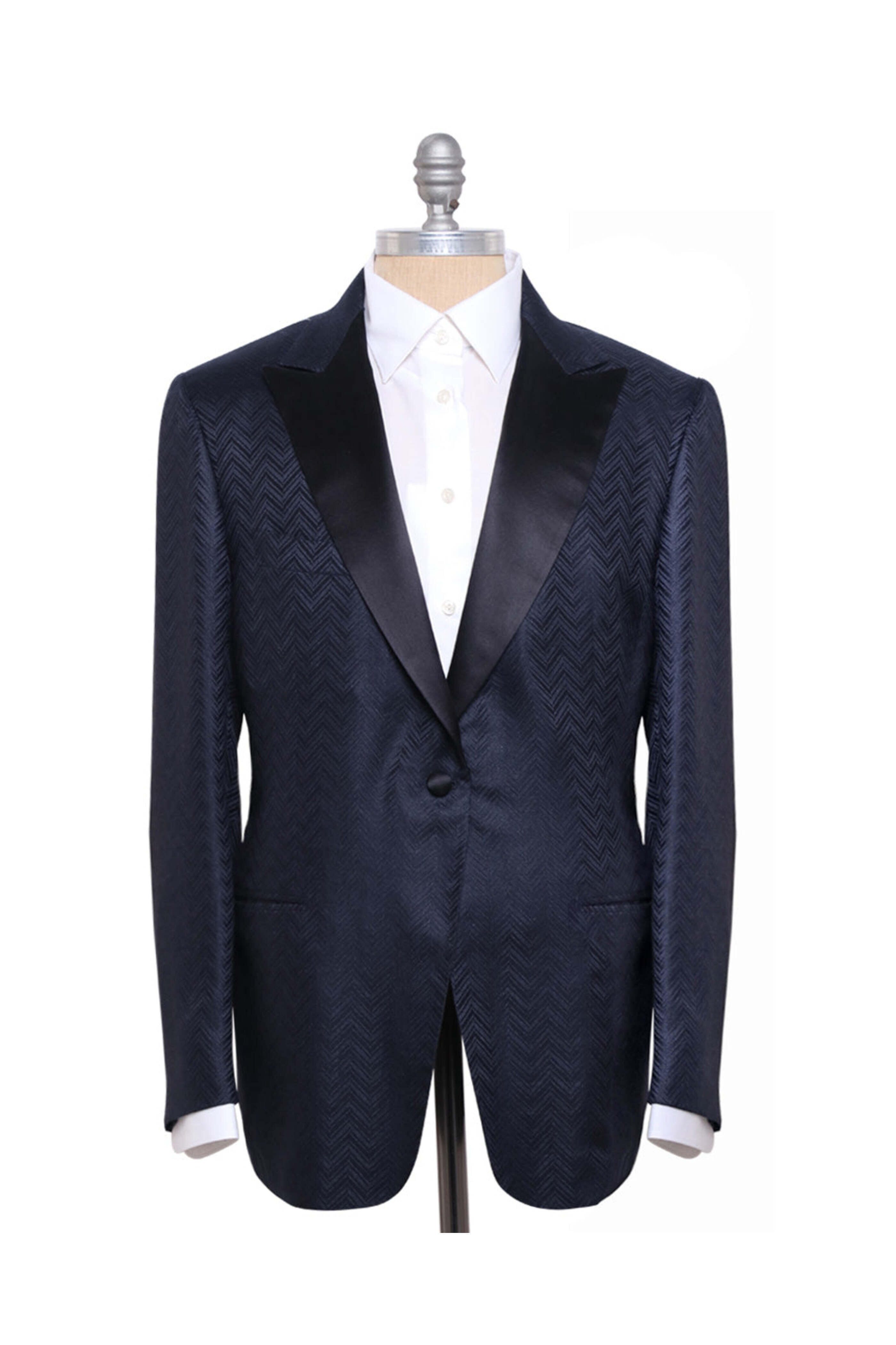 - Kiton Navy Tonal Chevron Formal Jacket