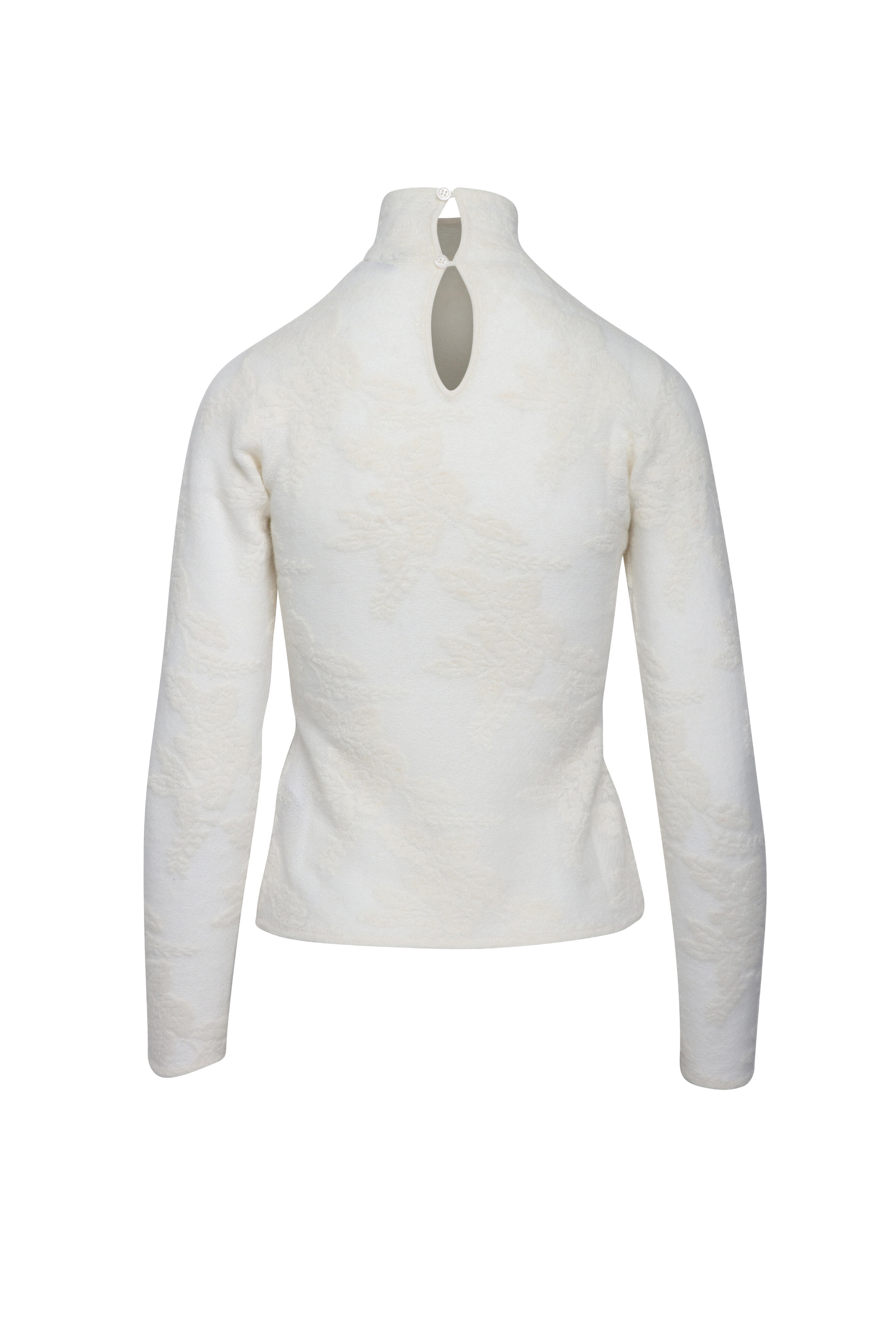 Egret Sheer Flower Jacquard Mockneck Sweater