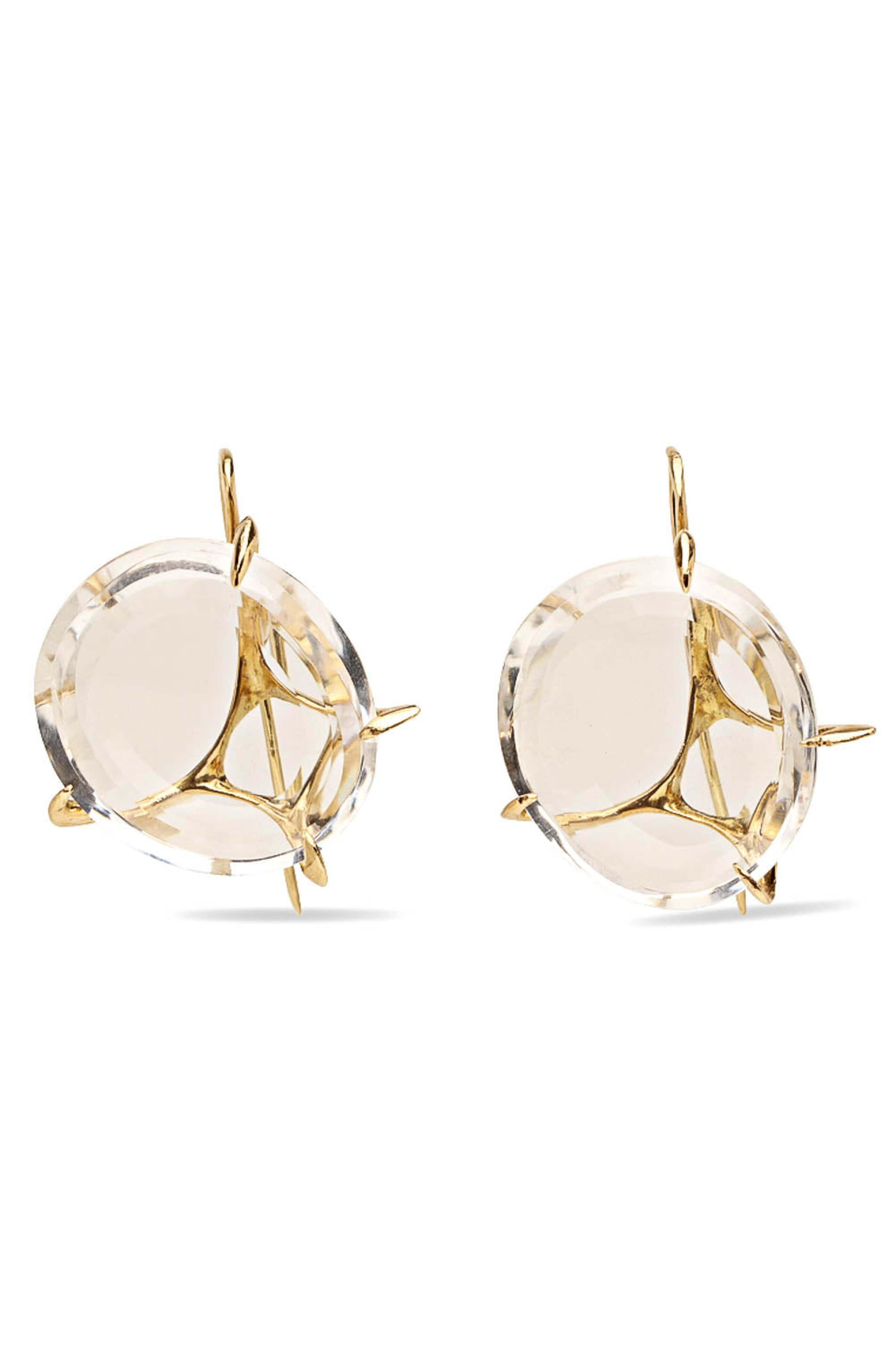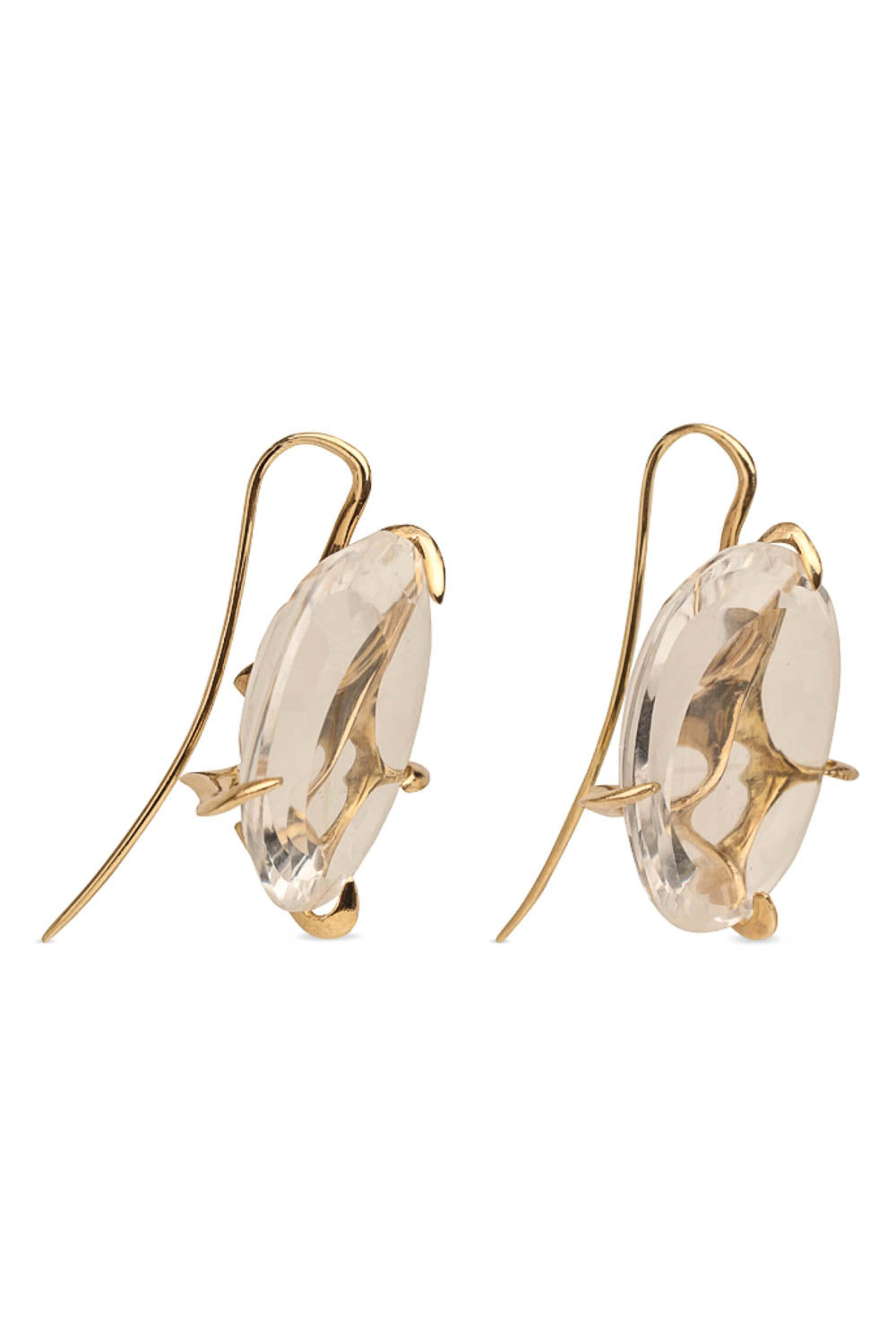 - Kika Alvarenga Crystal Quartz Brinco Envolto Earrings 18k yellow gold 60 ct. crystal quartz 1.25 L x 0.9 W x 0.4 D Wire backs