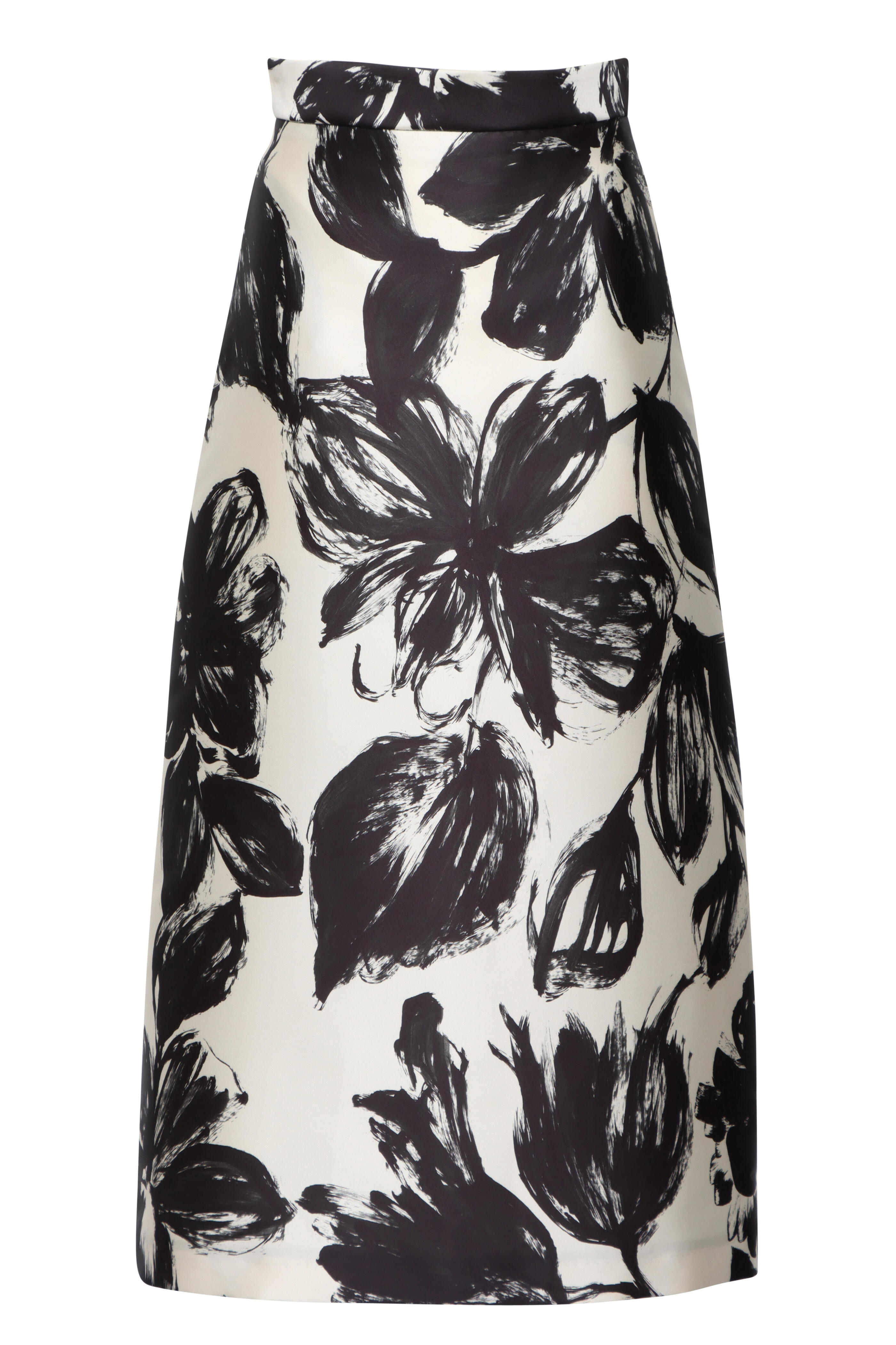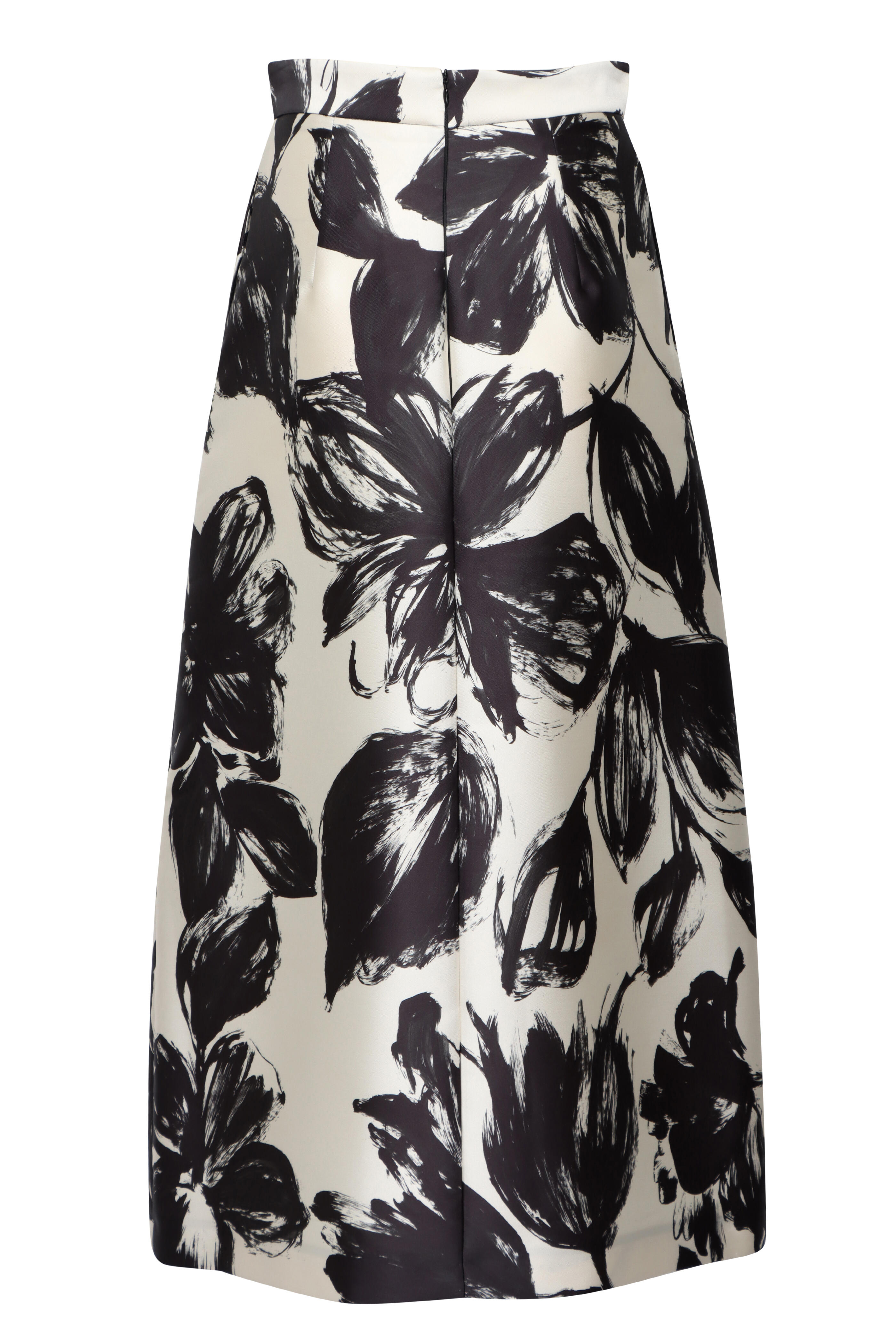 High rise. Flat waistband. Concealed zip closure. Side slip pockets. Aline silhouette. Made in Italy. Midi length. 100% polyester. Dry clean.
