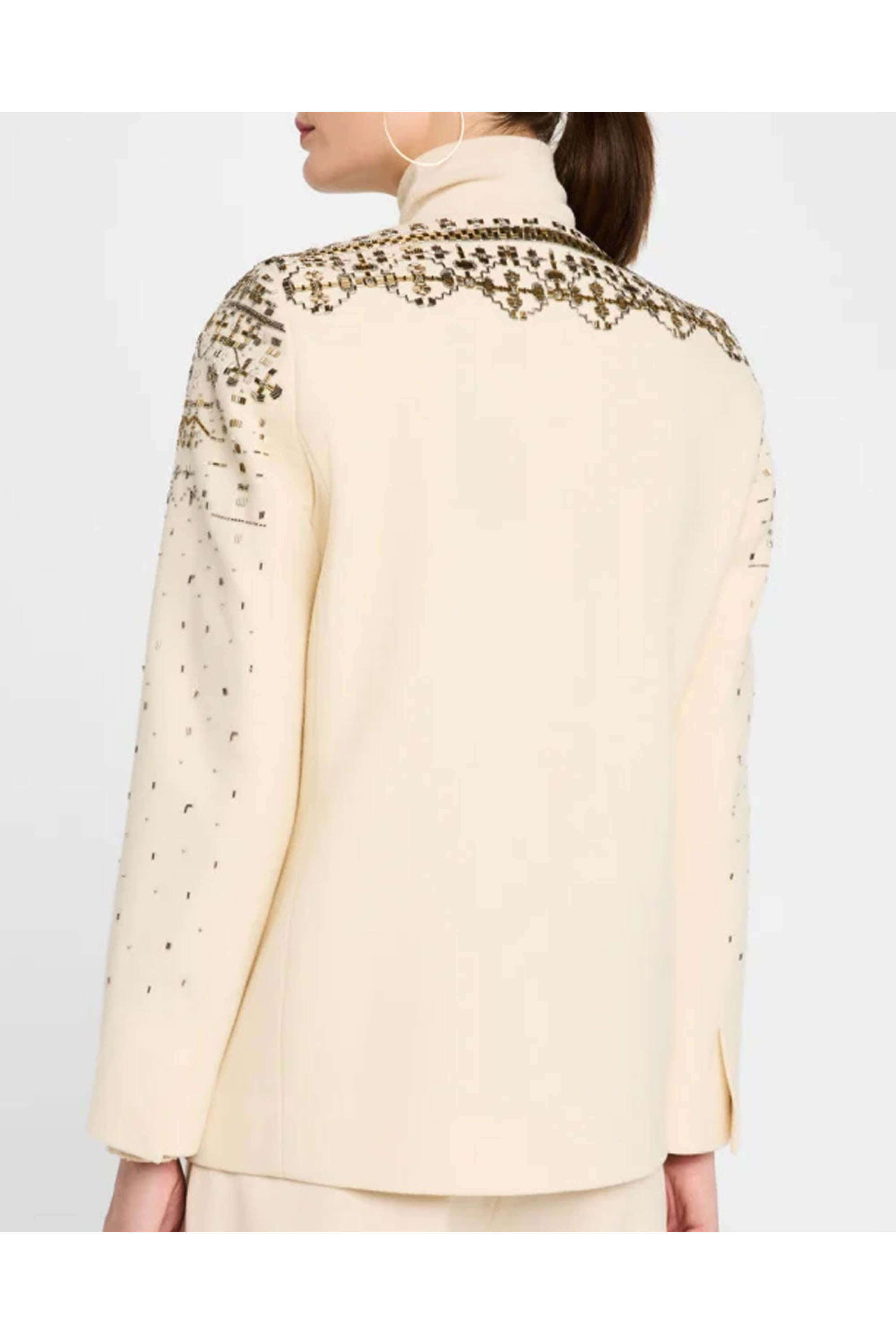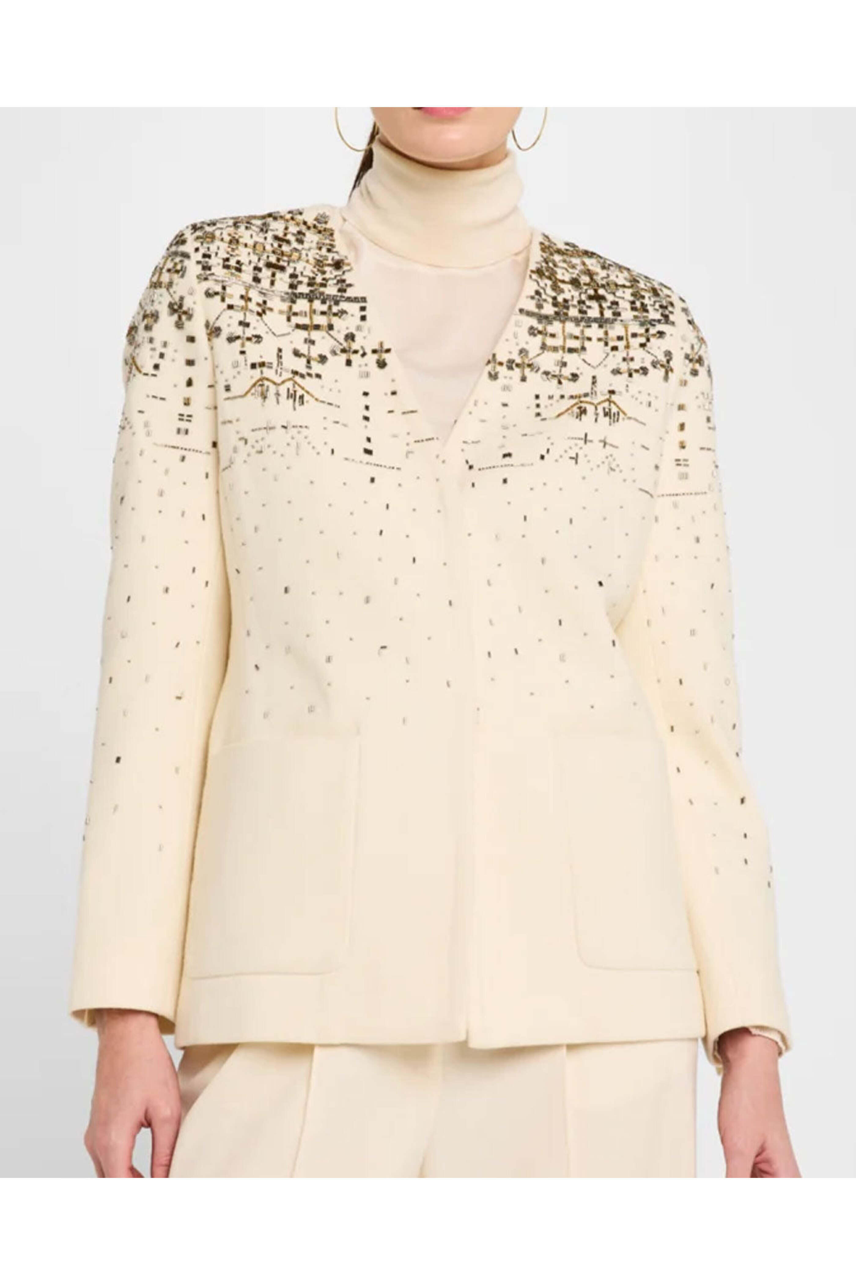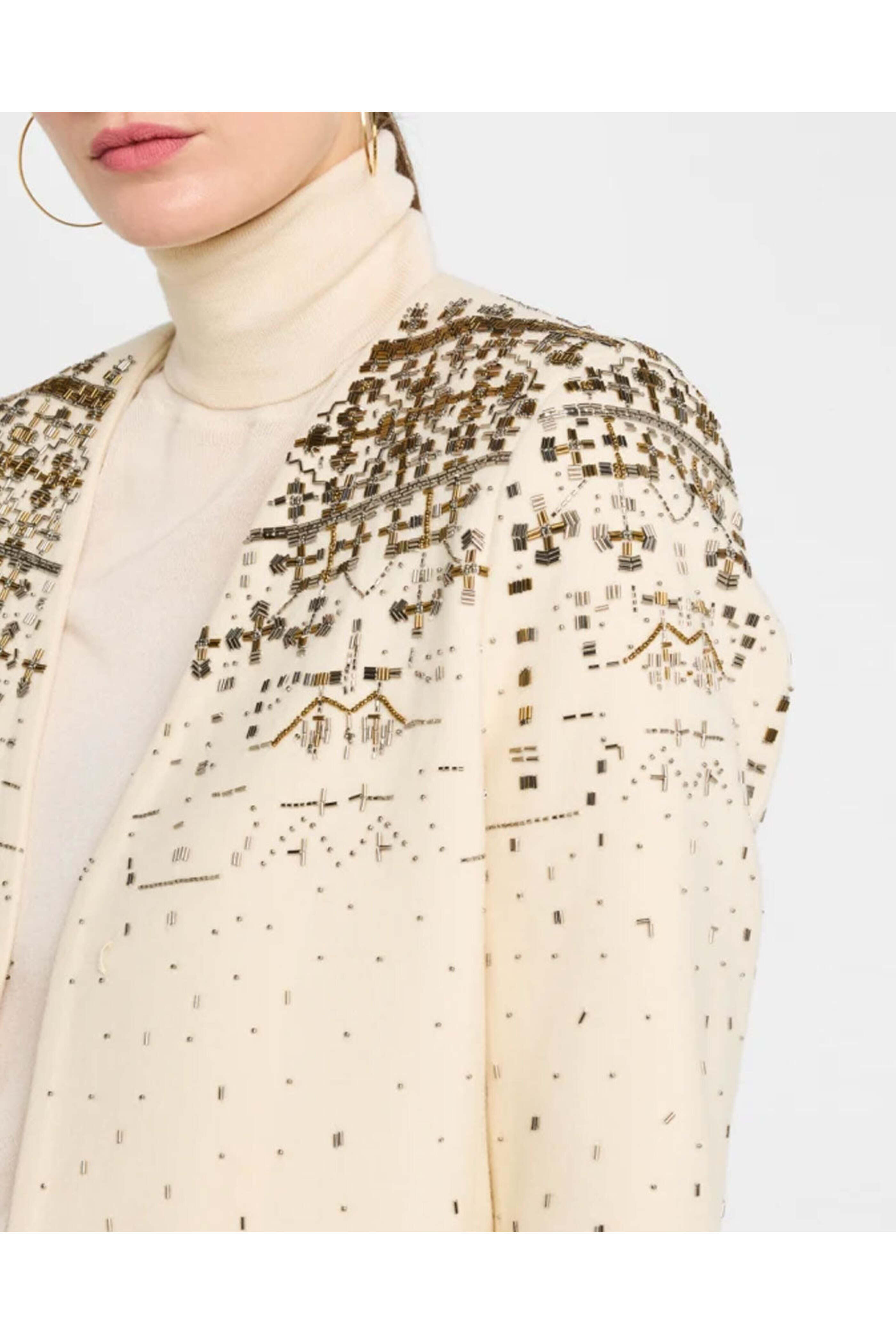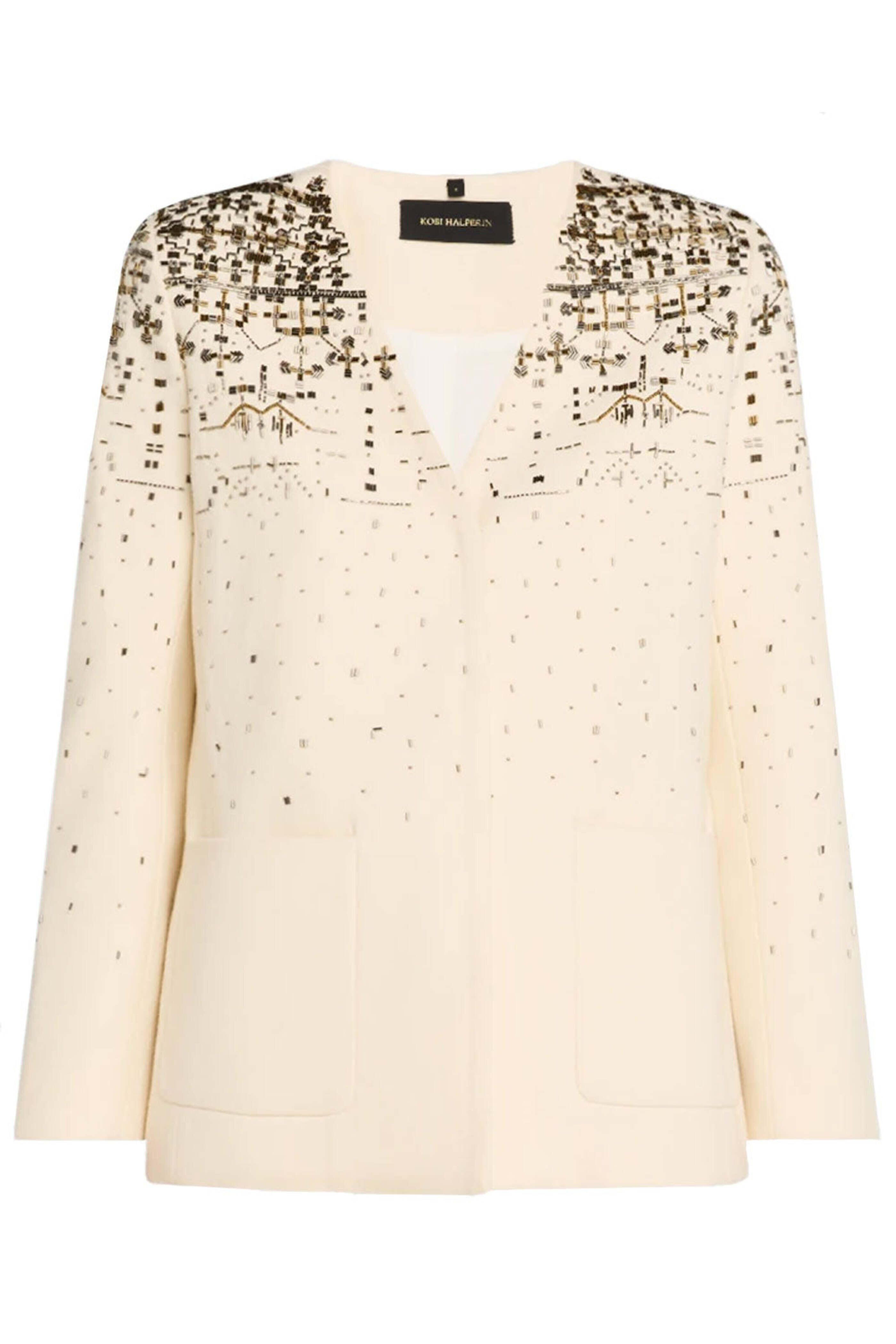 Kobi Halperin Ivory Brantley Jacket . V neckline; hook front . Long sleeves; split cuffs . Front patch pockets . Relaxed fit . Wool . Lining: Polyester . Imported .