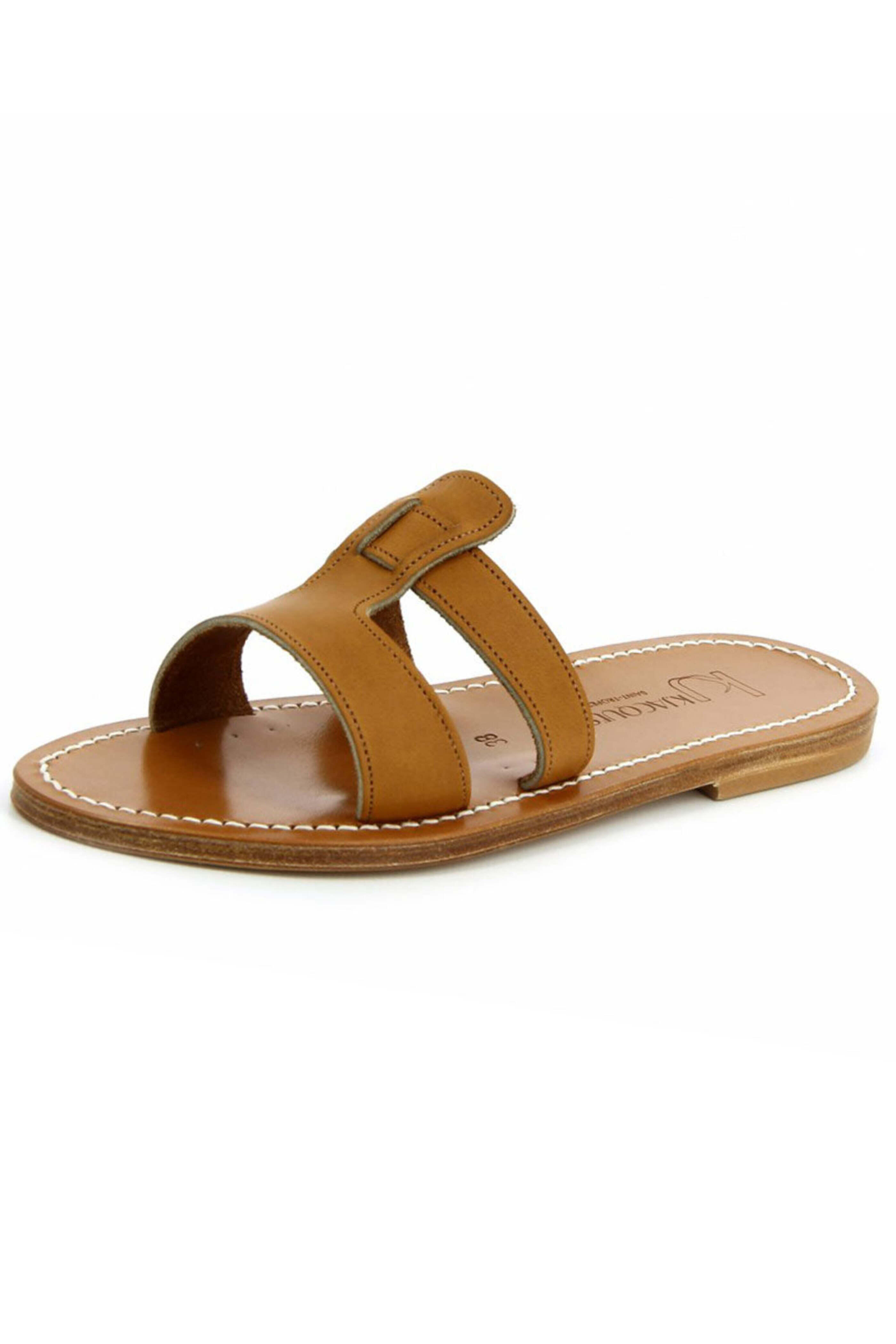 - K Jacques Thanos Sandal in Natural Leather Leather upper Slip on style Rounded open toe Tonal stitching Leather insole and sole 0.5 heel Made in France