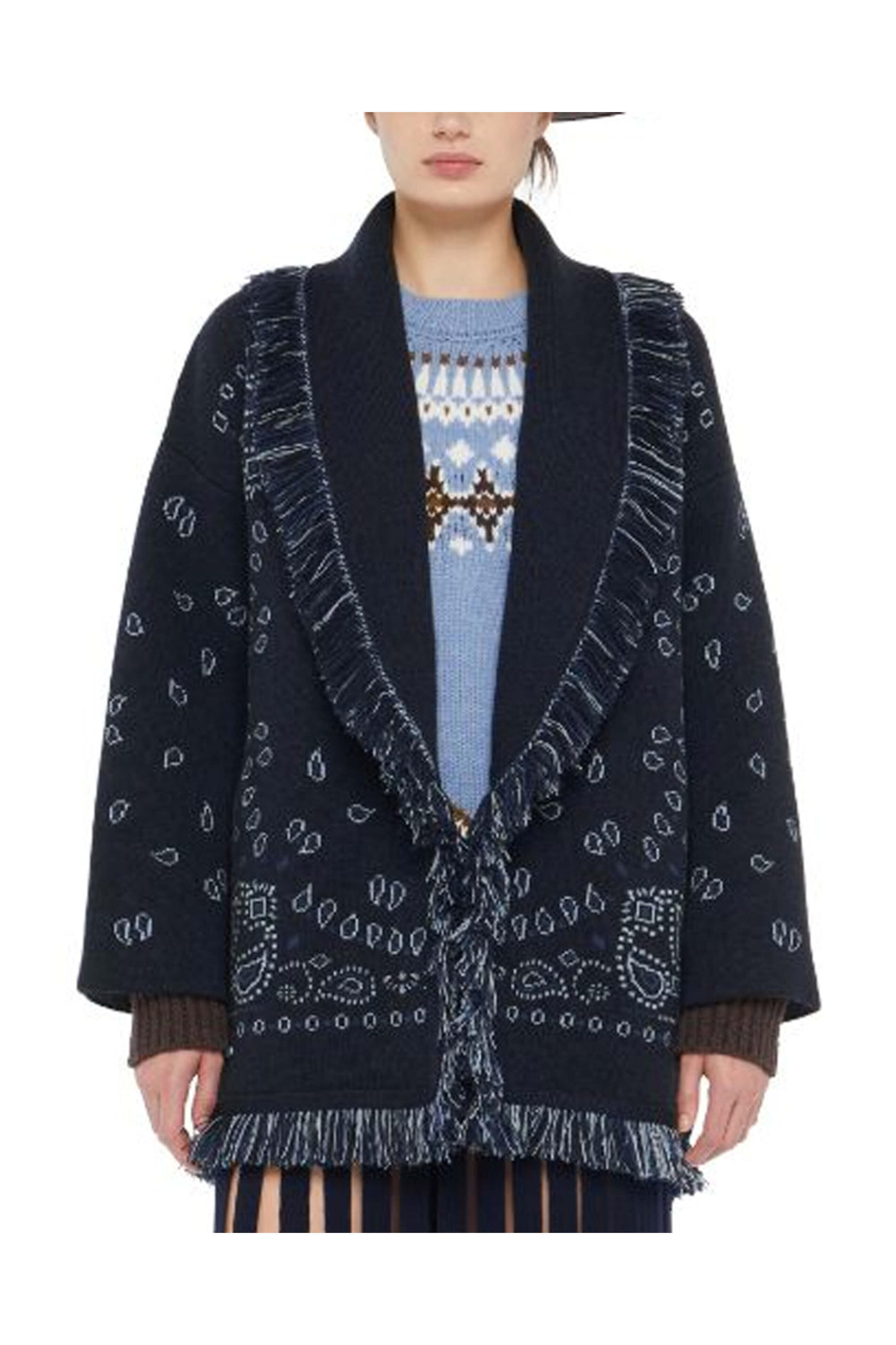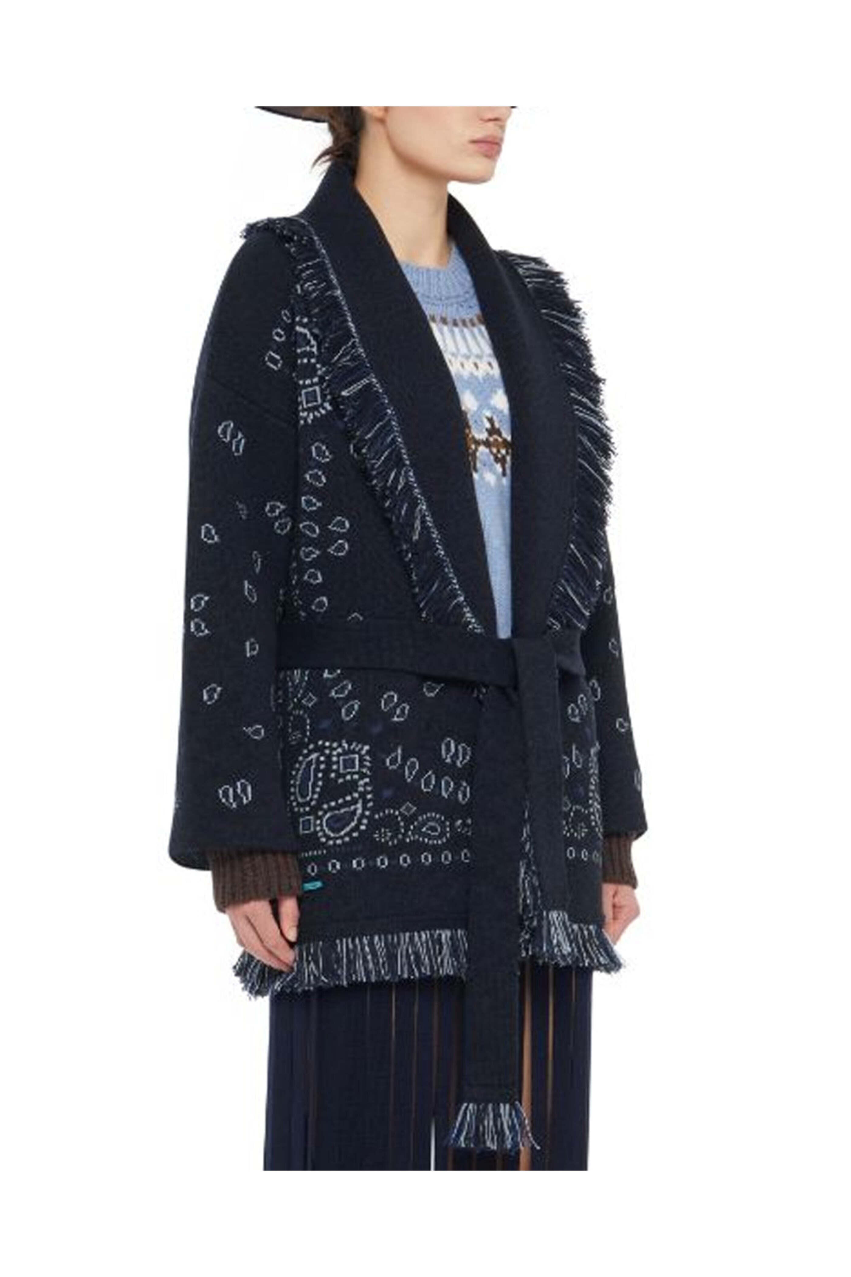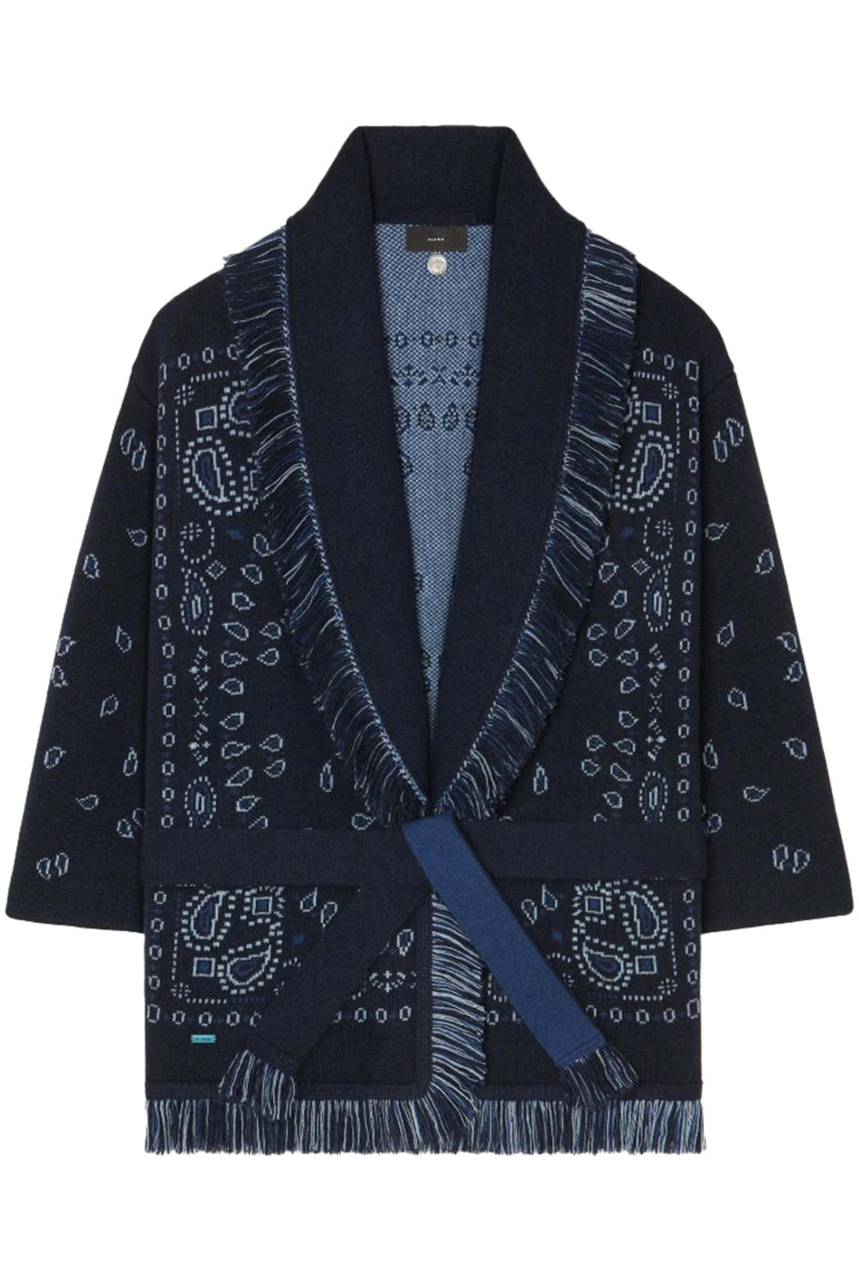 - Alanui Midnight Blue Bandana Jacquard Cardigan
