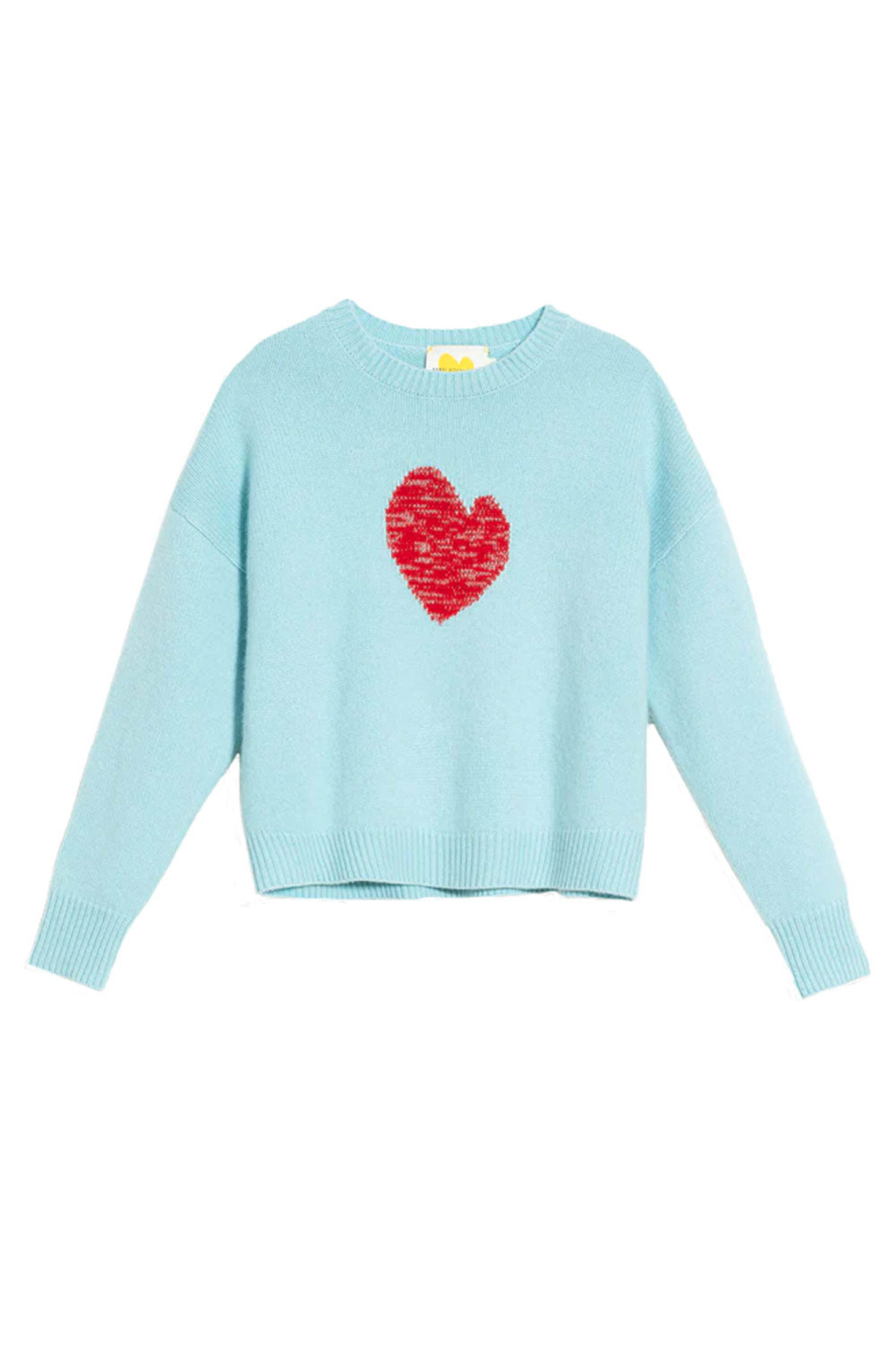 Kerri Rosenthal Icicle Marled Heart Boyfriend Sweater. Crewneck. Drop shoulders. Long sleeves. Ribbed neck, cuffs, and hem. Relaxed fit. 100% Cashmere.