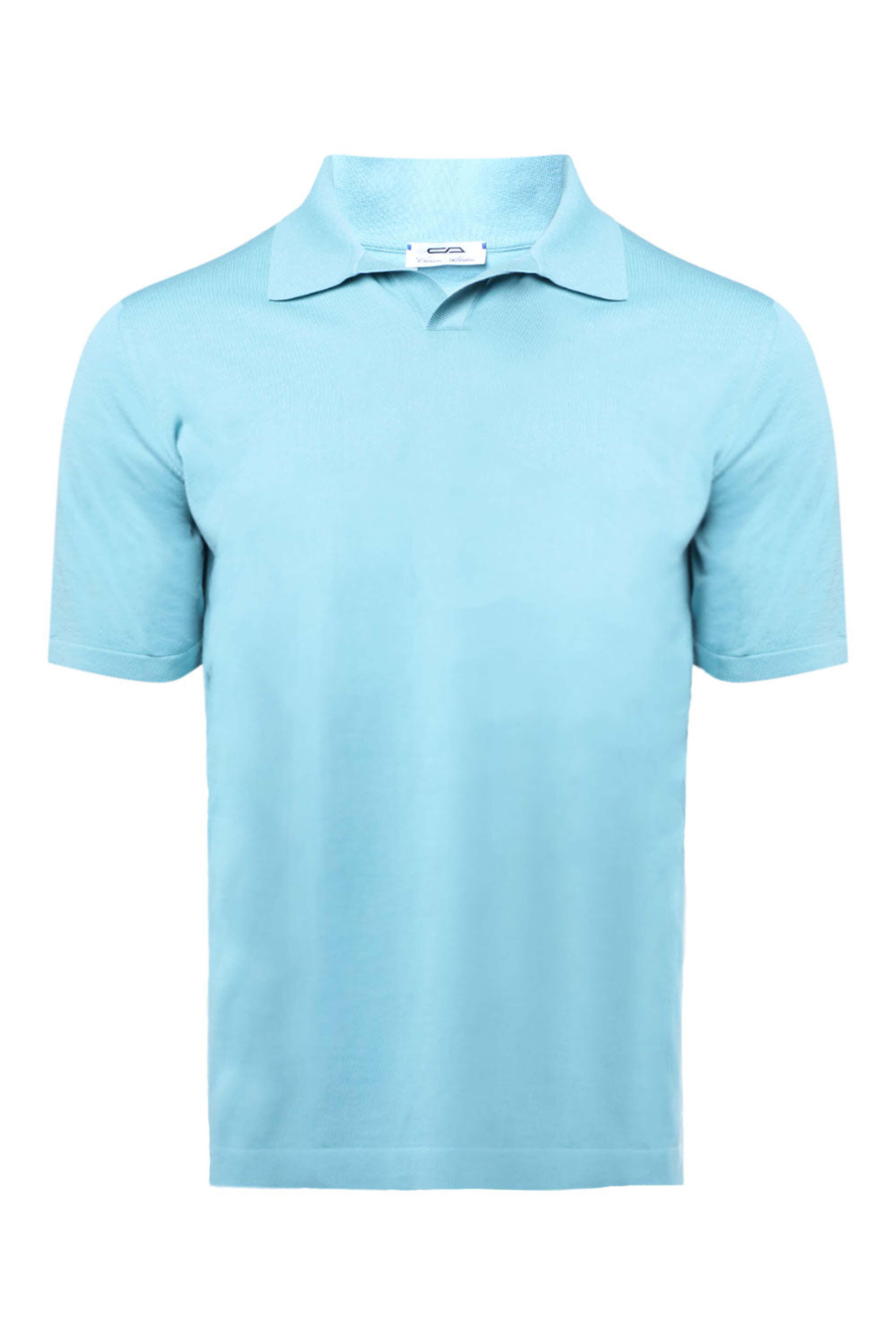 Cesare Attolini Turquoise Short Sleeve Johnny Collar Polo. Johnny collar. Short sleeves. Side vents. Tonal stitching. Straight hem. Made in Italy. 100% cotton.