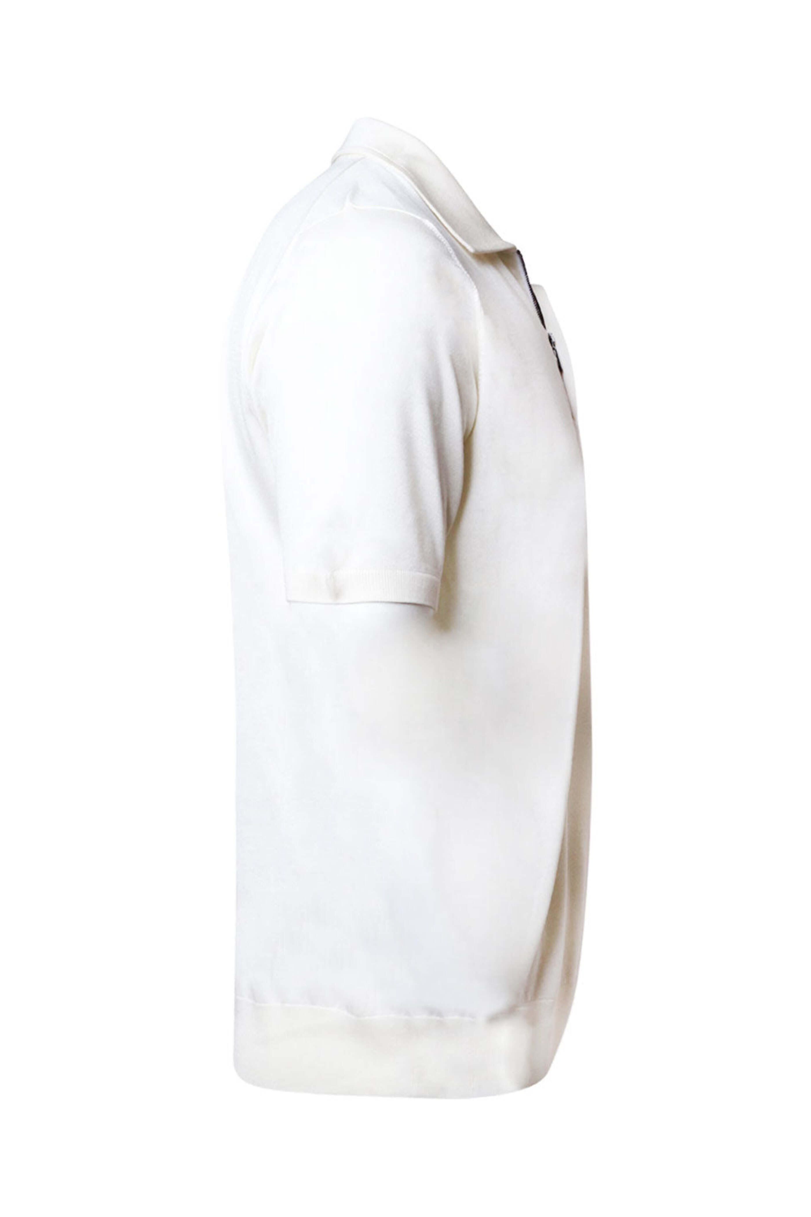 Ivory Silk Zip Short Sleeve Polo