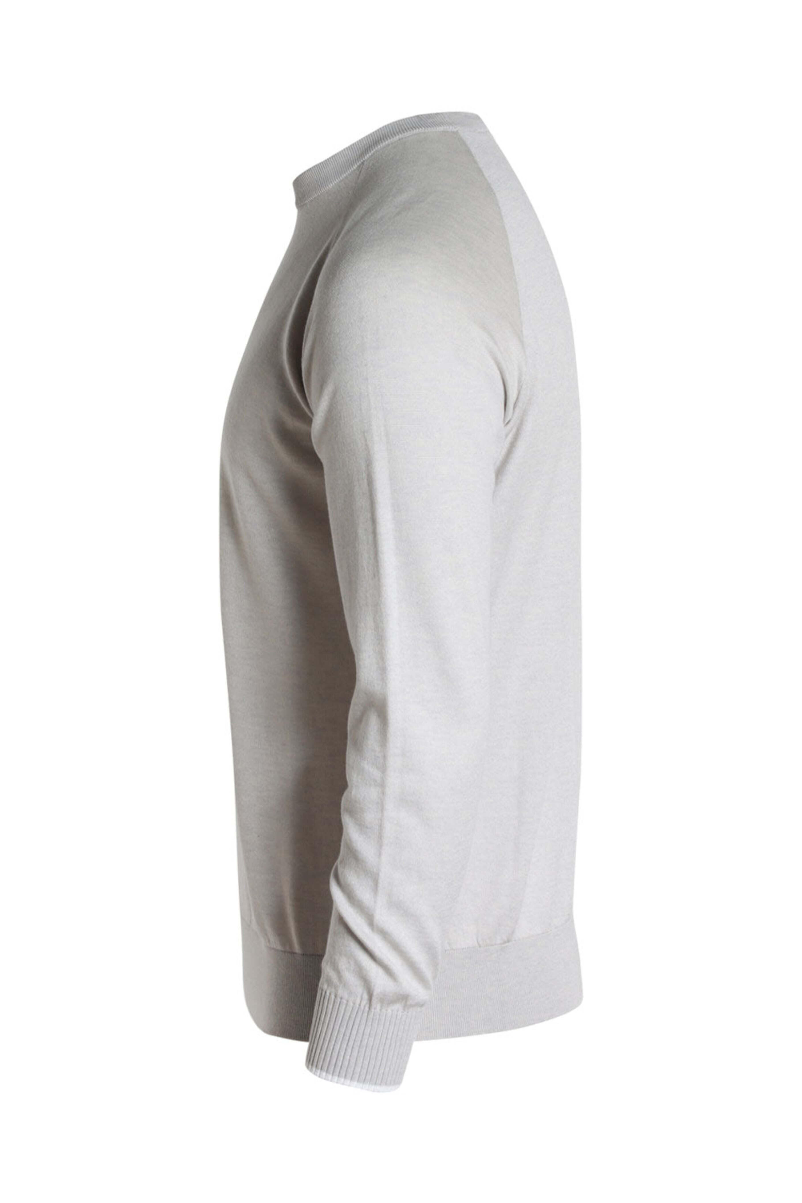 Cesare Attolini Light Grey Cotton Blend Crewneck Sweatshirt. Crewneck. Long sleeves. Pullover style. Ribbed trims. Contrast trim detailing. Tonal stitching. Straight hem. Made in Italy. 90% cotton 10% cashmere.