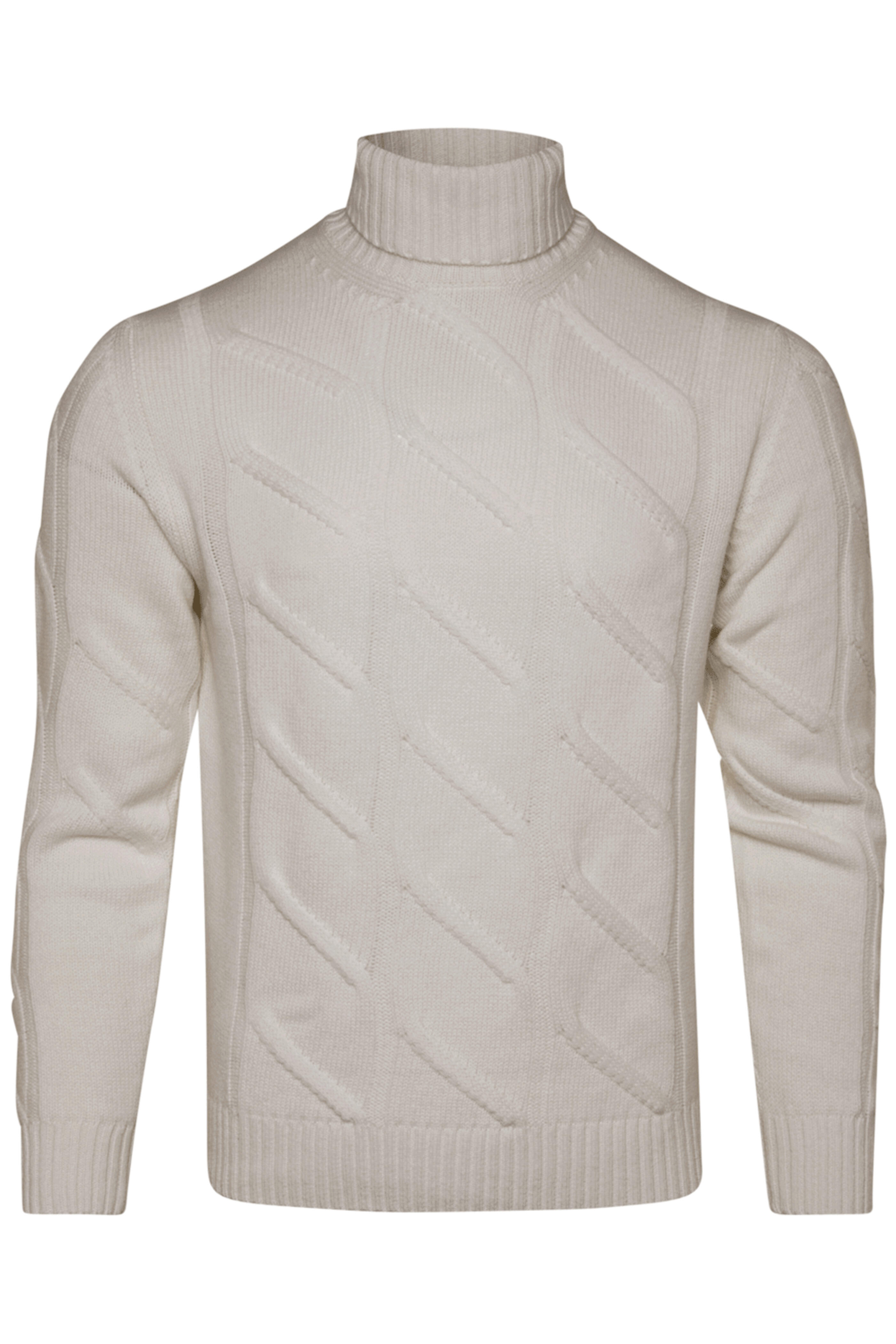 - Cesare Attolini White Cableknit Turtleneck Sweater