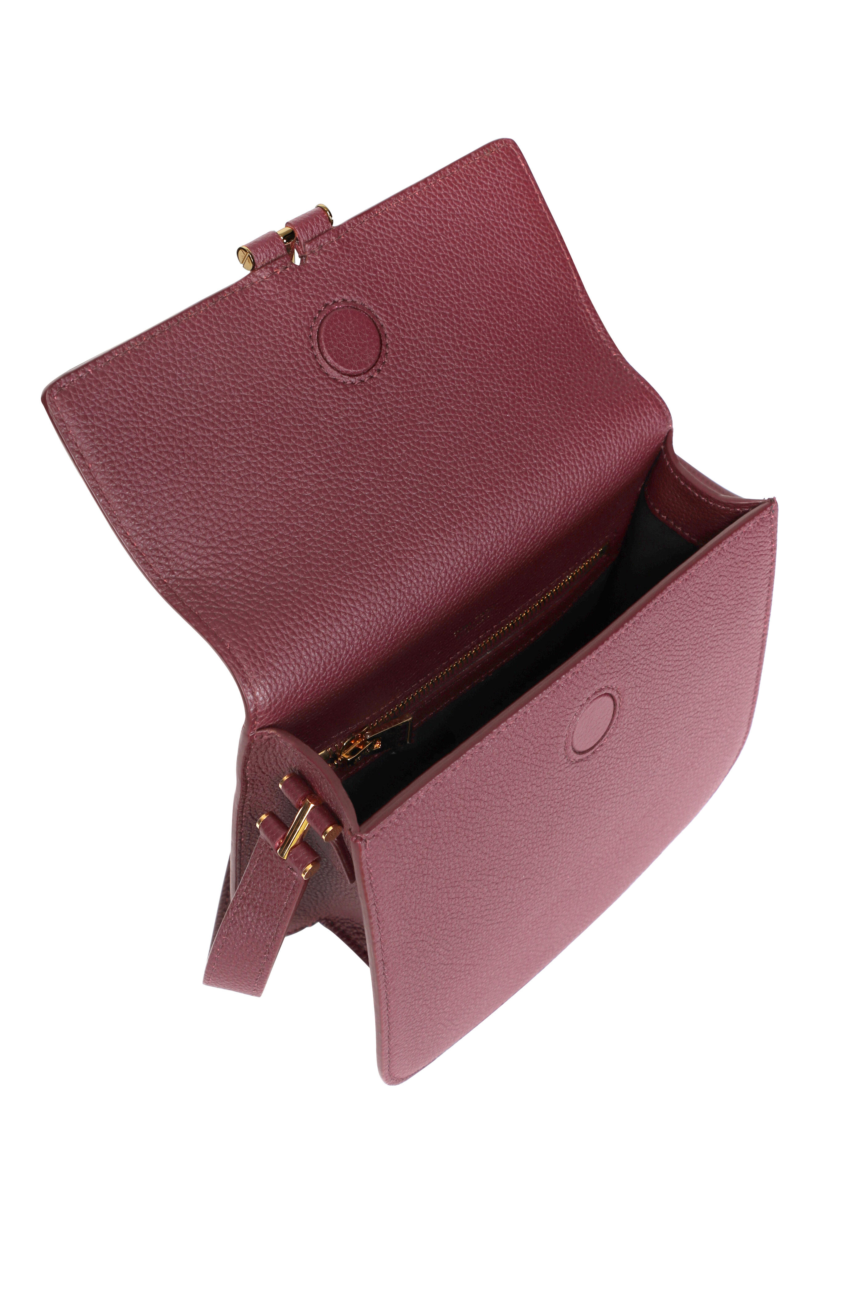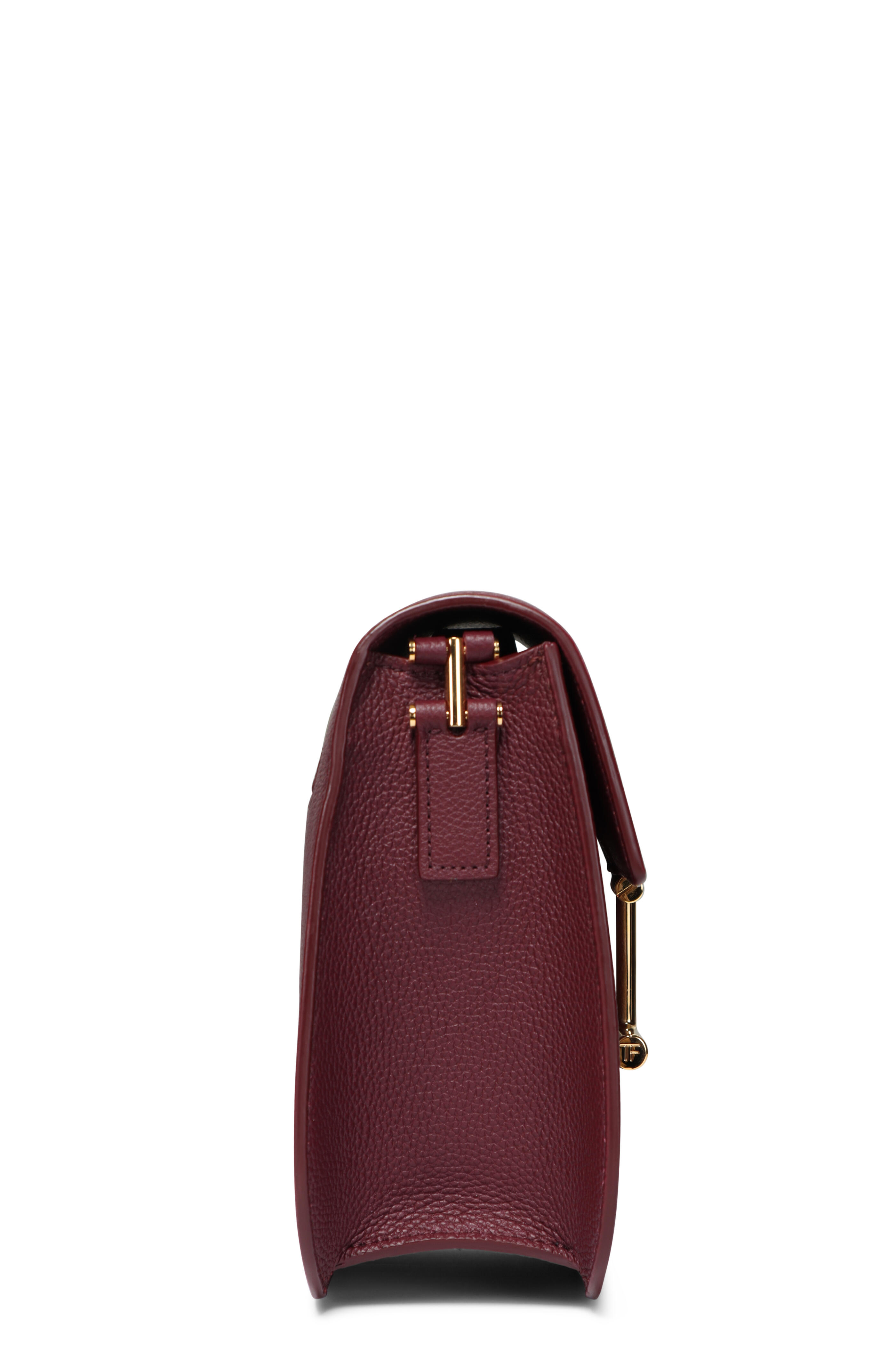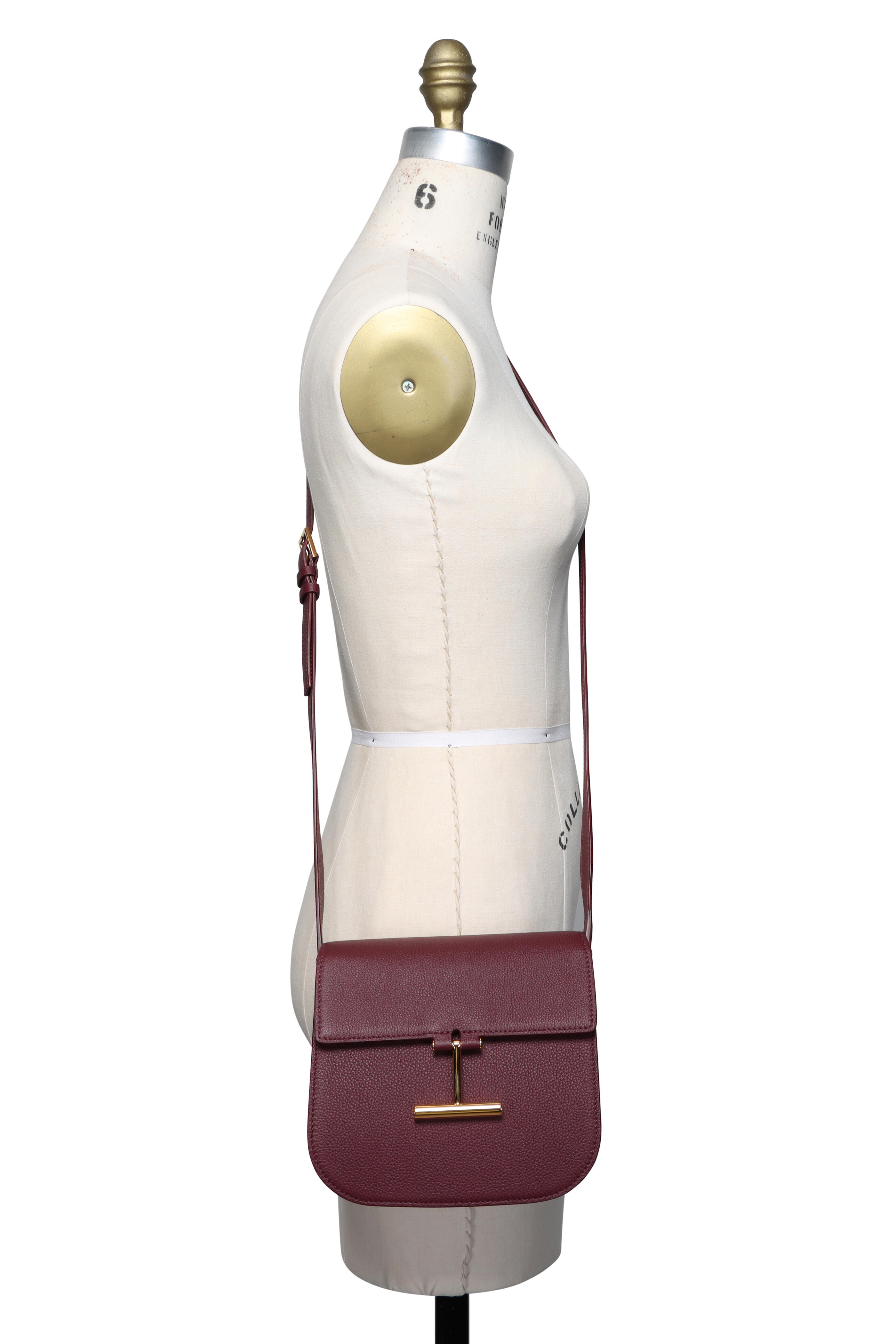 Calfskin leather outer. Fold over clasps. Center T-strap magnetic closure. Adjustable shoulder strap. Interior zip pocket. Exterior flat pocket. Microfiber lining. Made in Italy. Height: 18.5cm | 7.3”. Width: 20 cm | 7.8”. Depth: 7 cm | 2.7”. Strap drop: 55 cm | 22”.