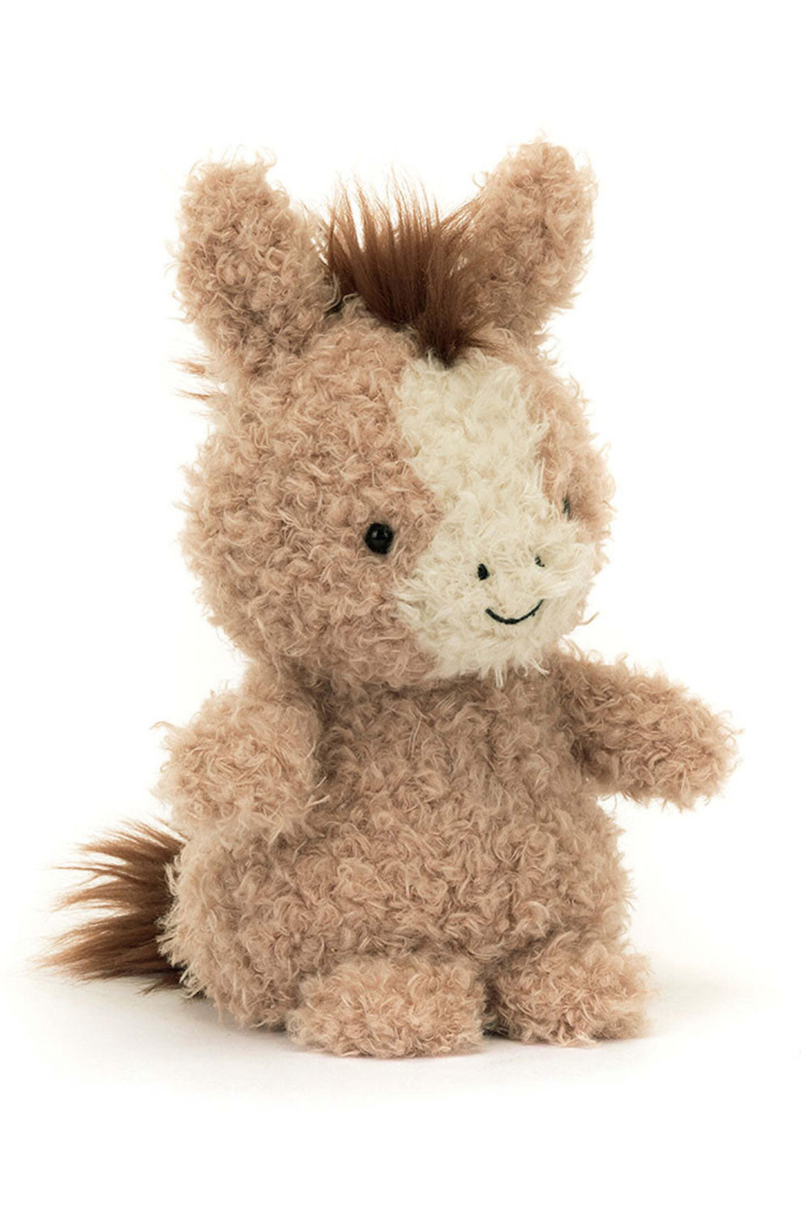 Jellycat Little Horse . Hard Eye . Dimensions: 7.1in x 3.9in x 3.1in . Sitting Height: 7in . Main Materials: Polyester . Inner Filling: Polyester Fibers, PE Beans .