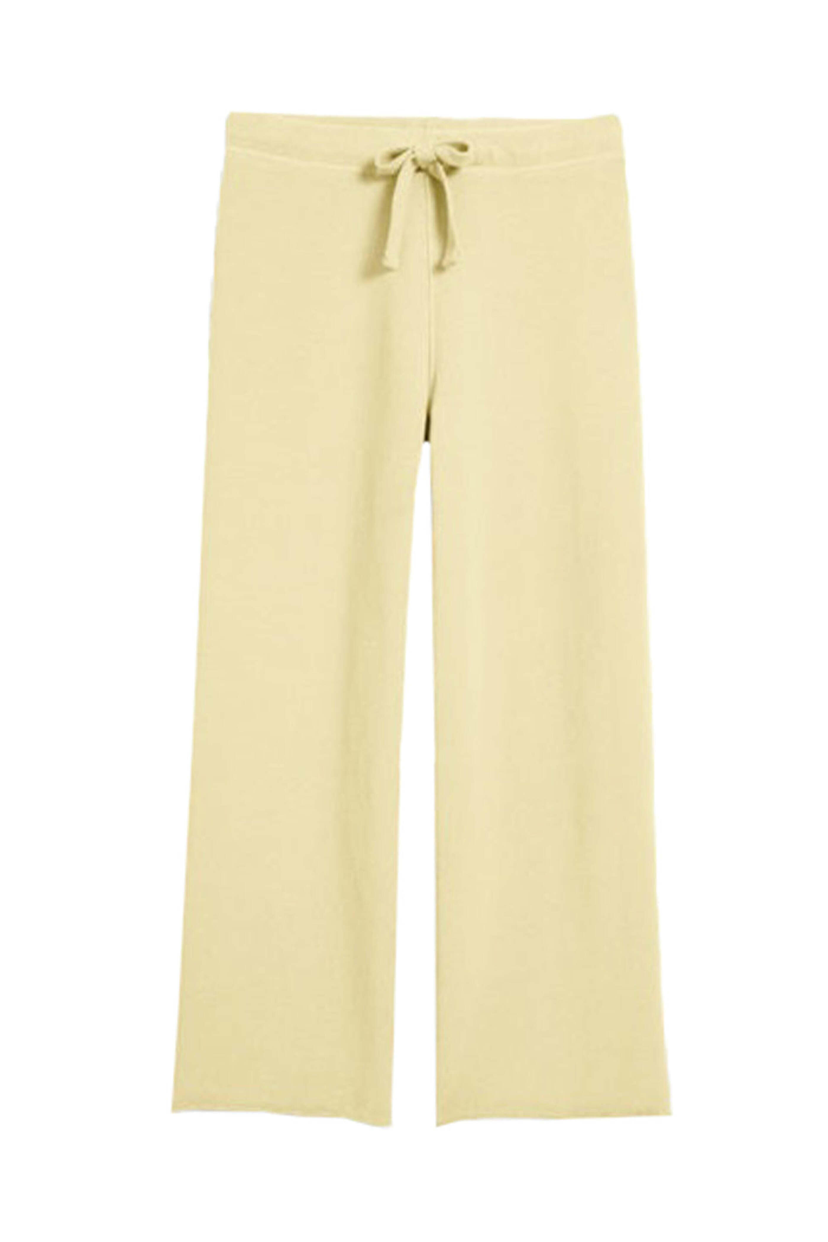Frank & Eileen Canary Catherine Sweatpant. Mid rise. Drawstring waist. Straight silhouette. Wide through leg. Cropped length. Raw hem. Fleece fabrication. 100% cotton.