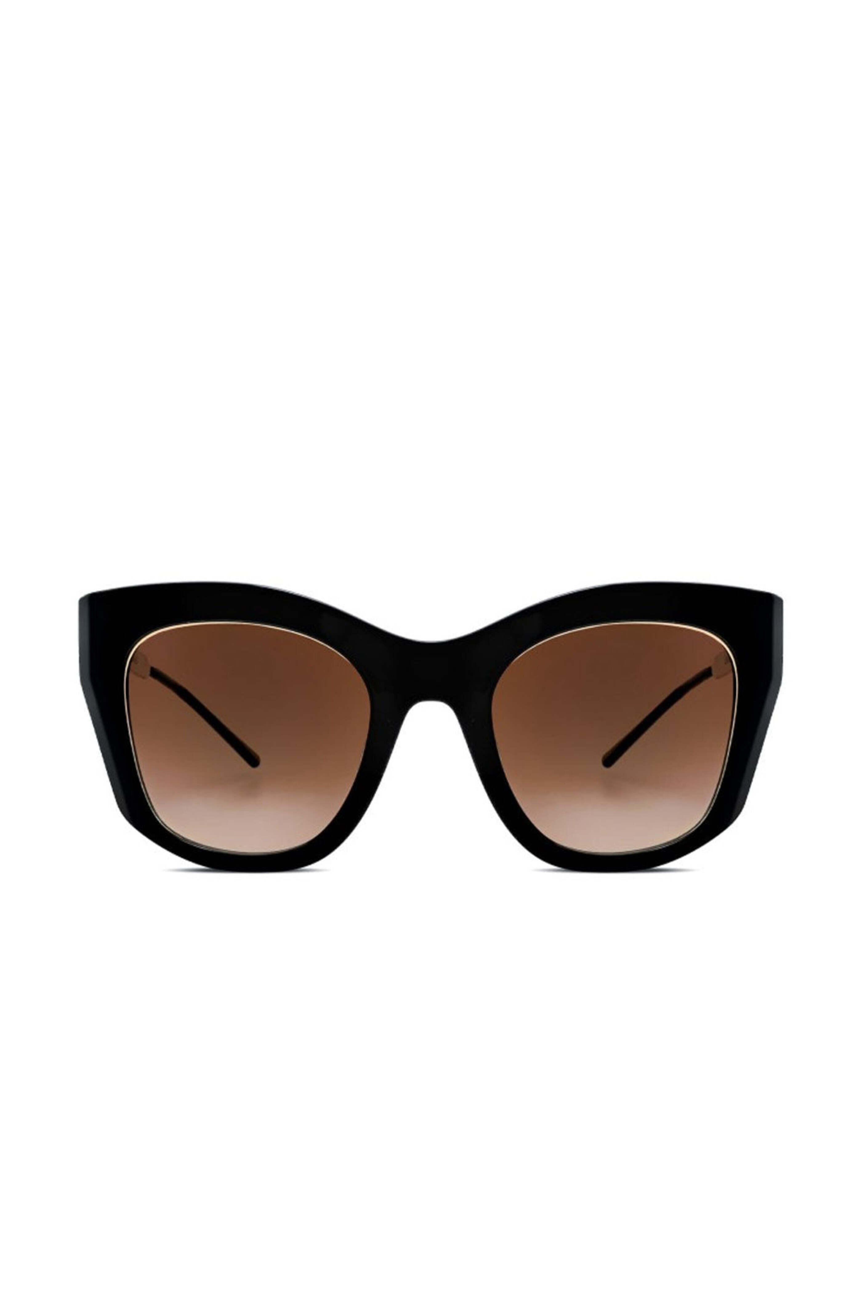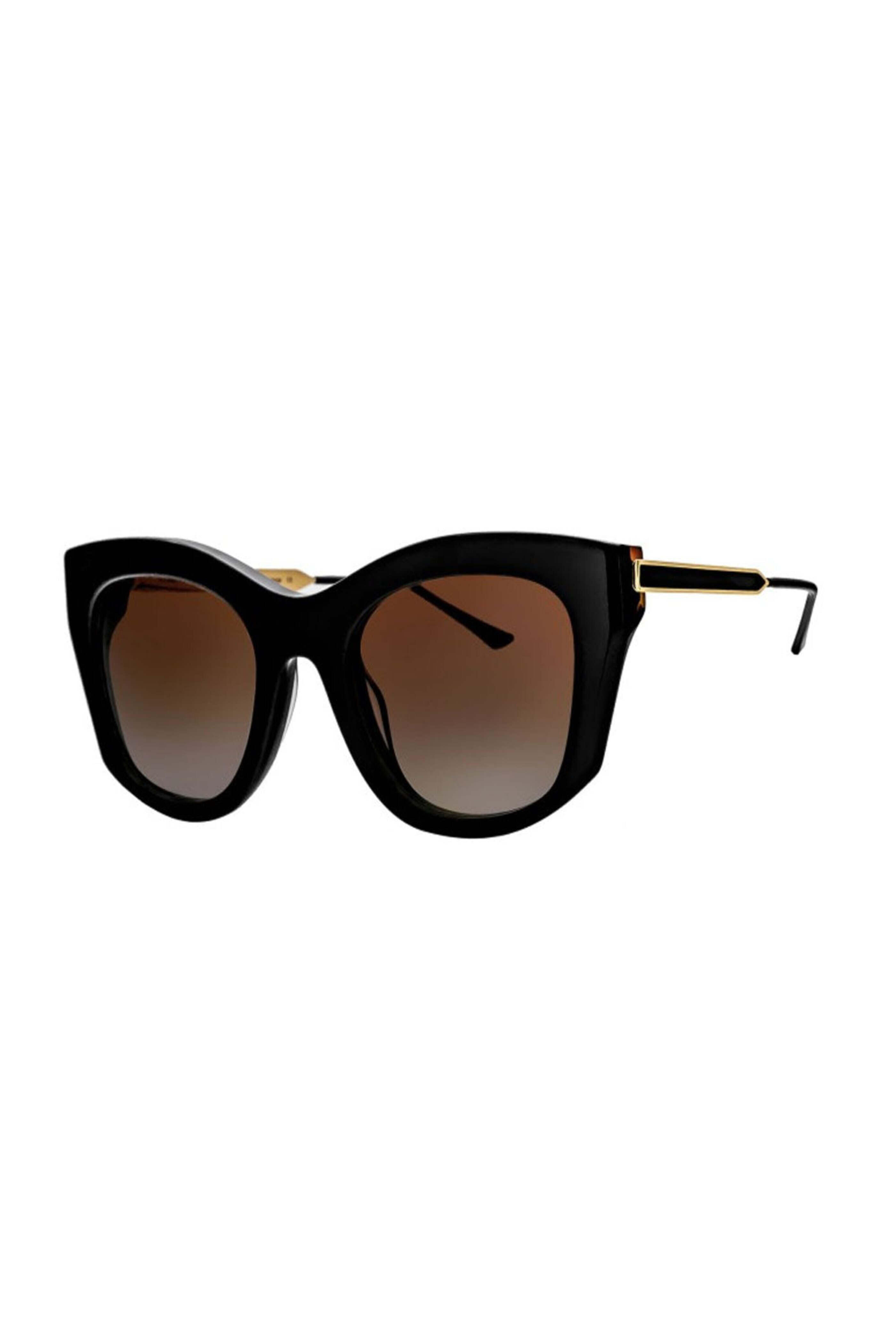 Thiery Lasry Lemony Glasses in Black. Solid black acetate with gradient brown lenses. Gold and black lacquer temples. Lens: 51mm. Bridge: 23mm. Temple: 140mm. Made in Italy. 100% UV protection.