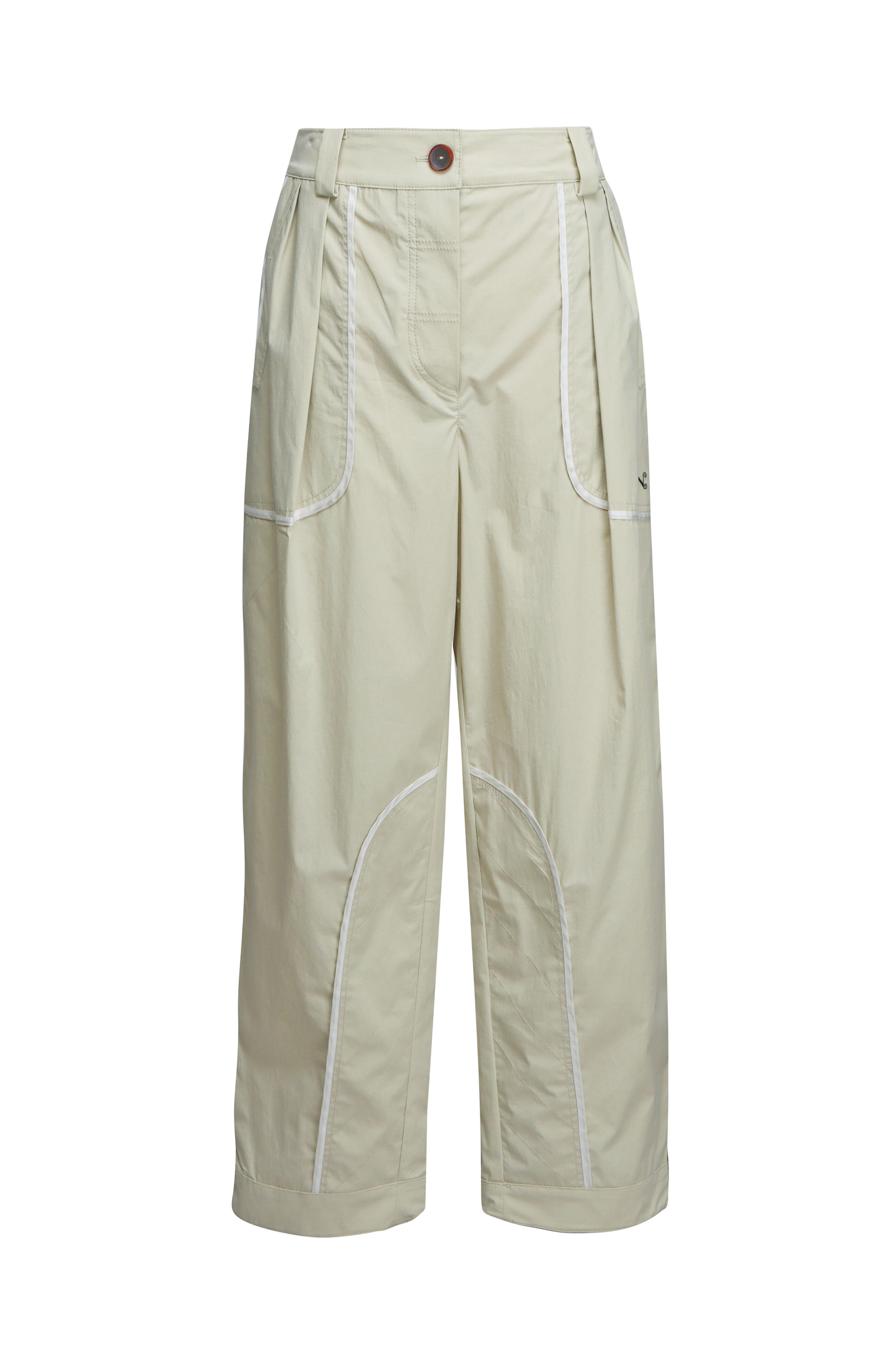 Button fly closure. Belt loops. Pleated front detail. Side slip pockets. Faux back pockets. Imported. Mid rise. Full length. 97% cotton, 3% elastane. Dry clean.