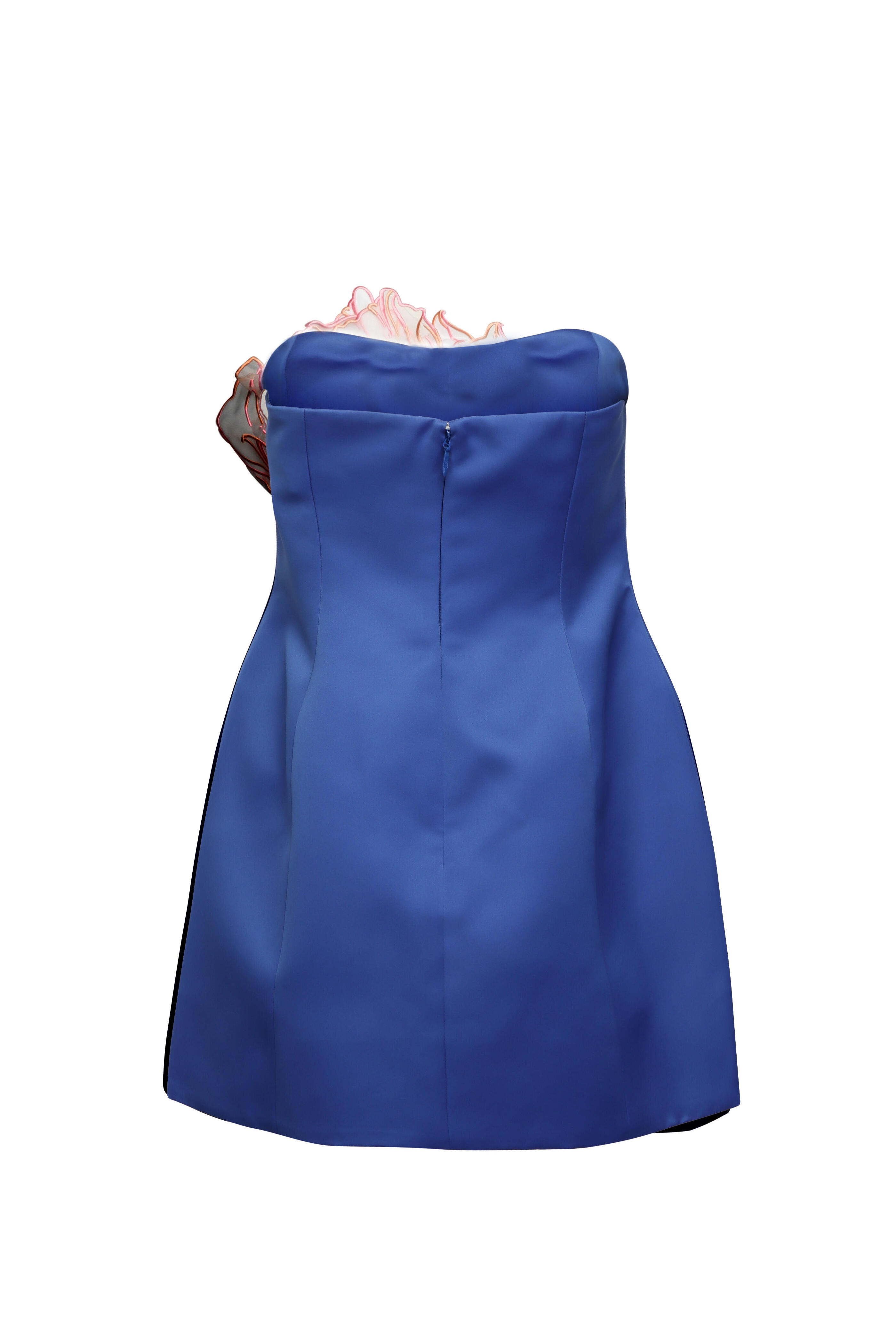 Rosario Lapis Floral Applique Bustier Mini Dress