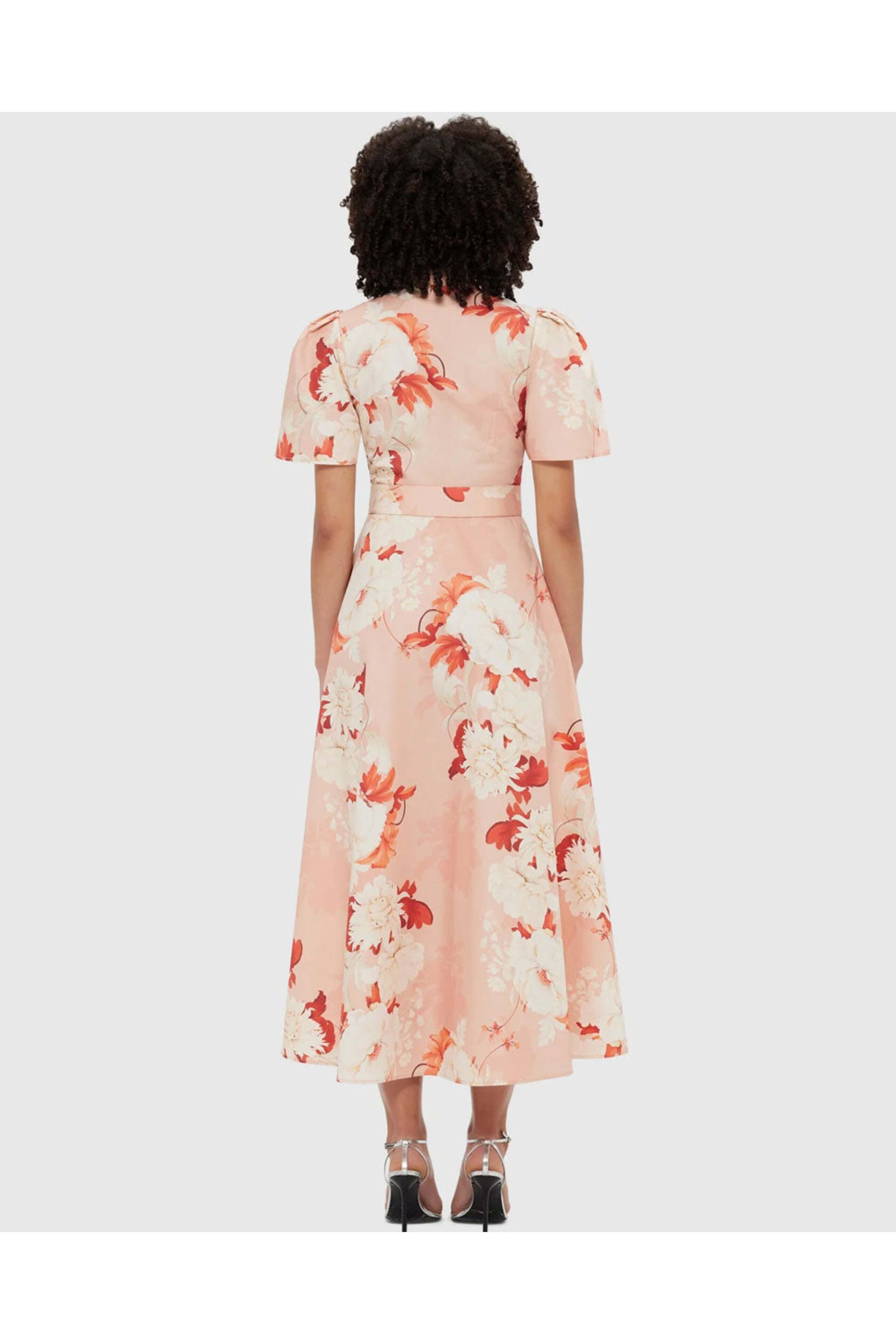- Leo Lin Peony Print Bianca Short Sleeve Midi Dress