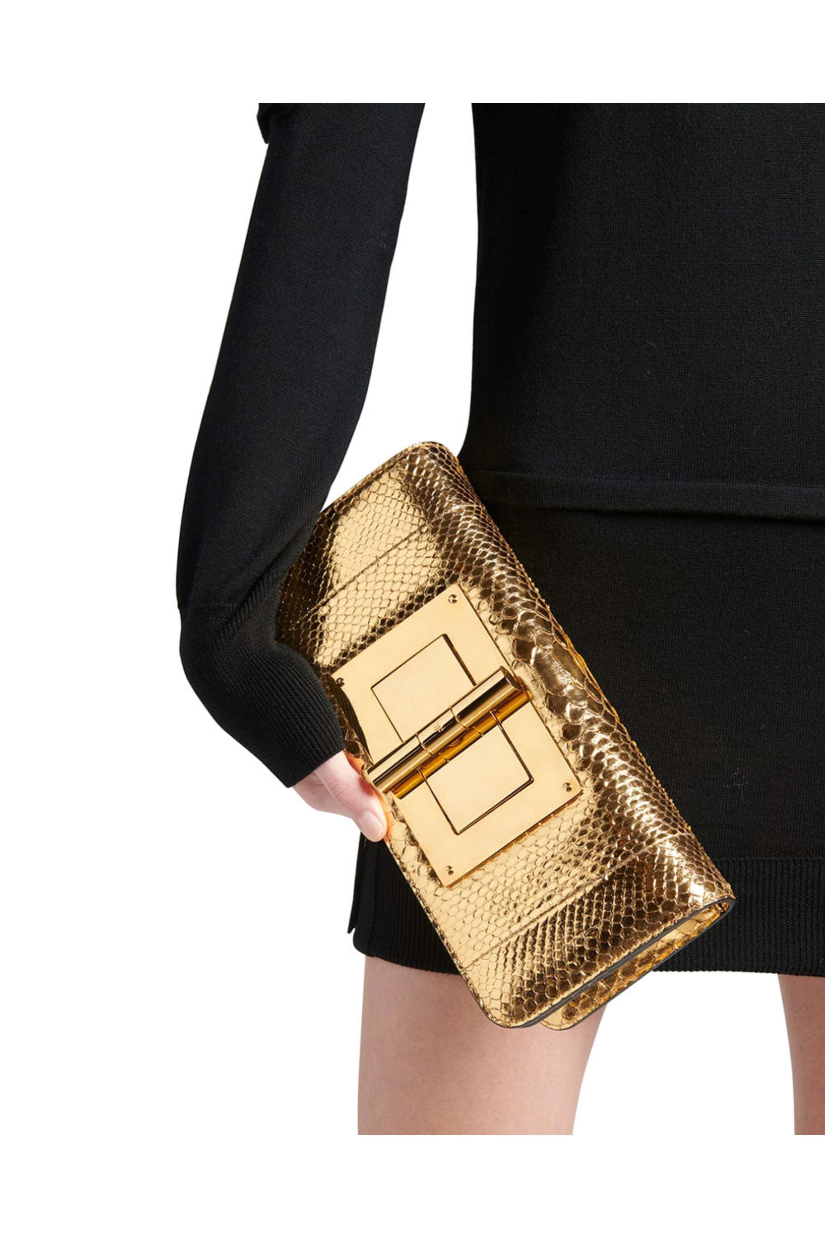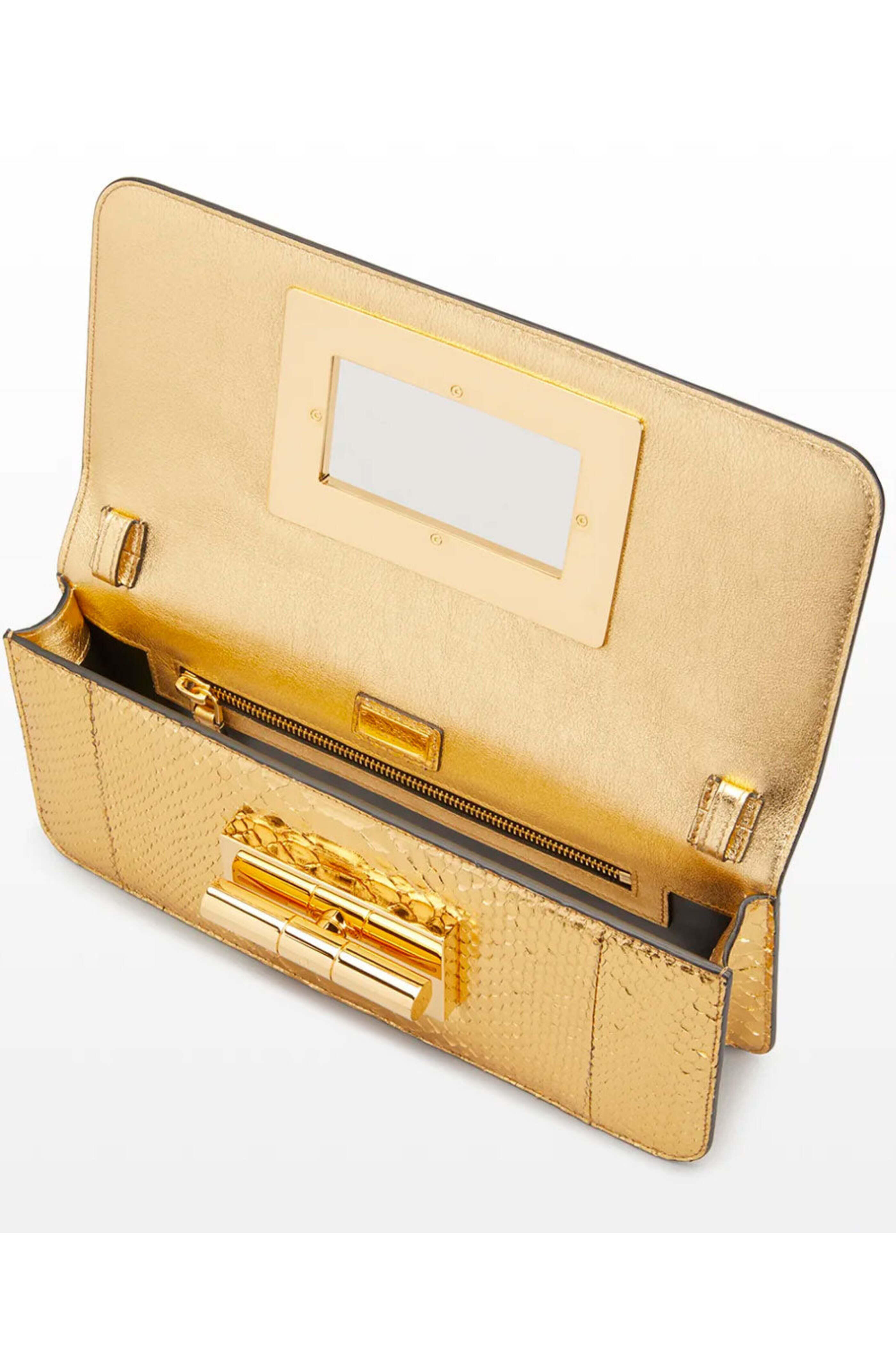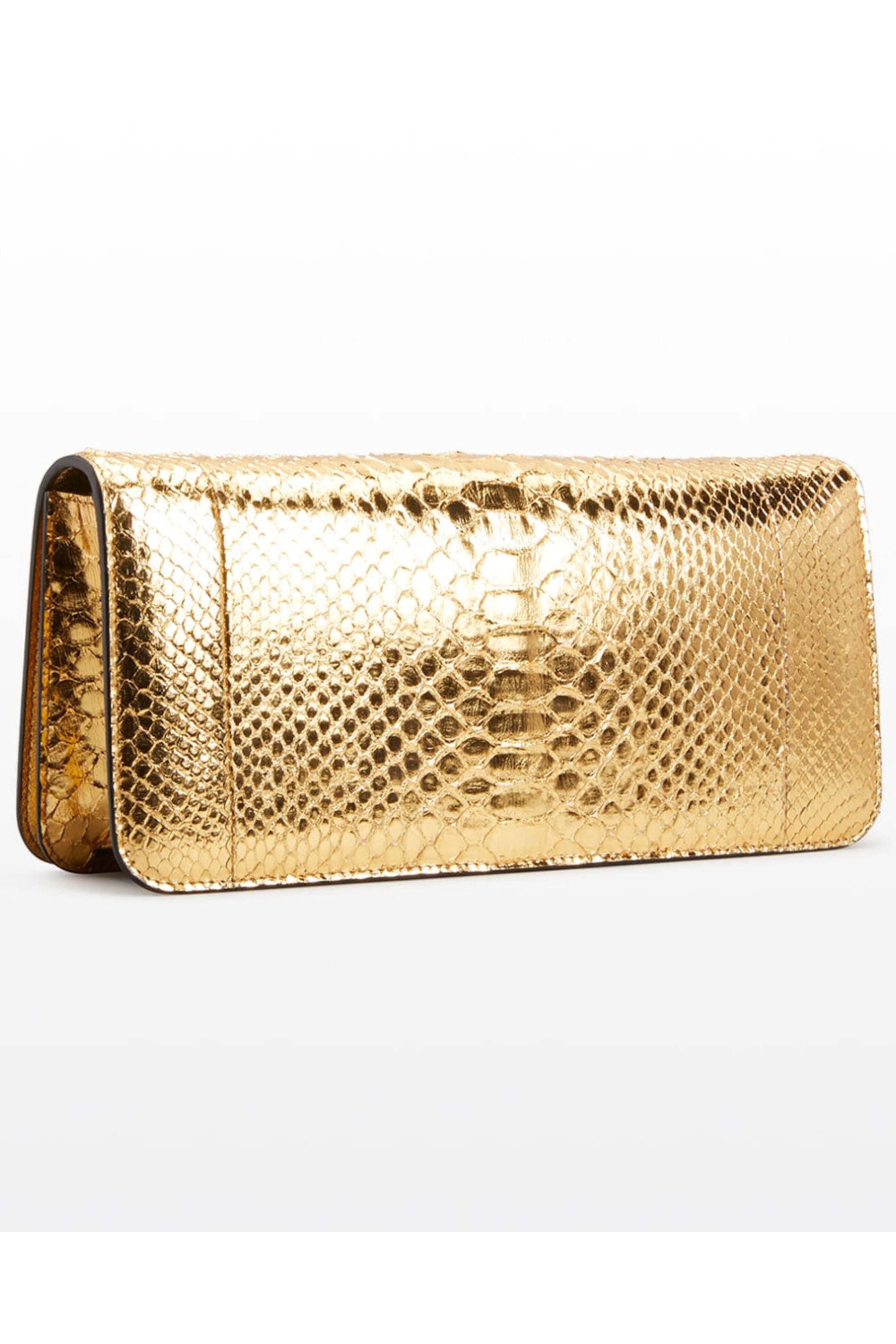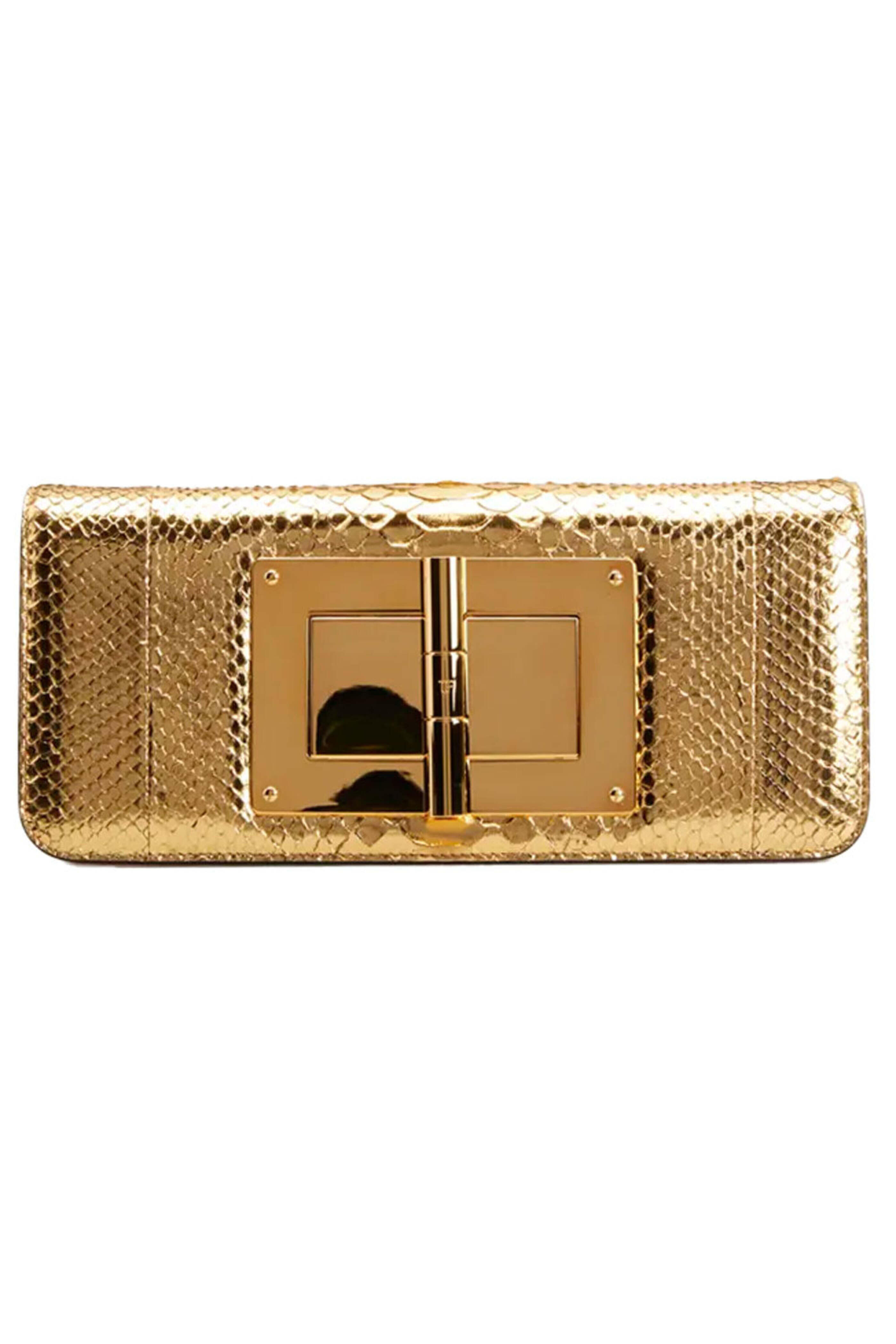 - Tom Ford Turn Lock Laminated Python Clutch in Gold