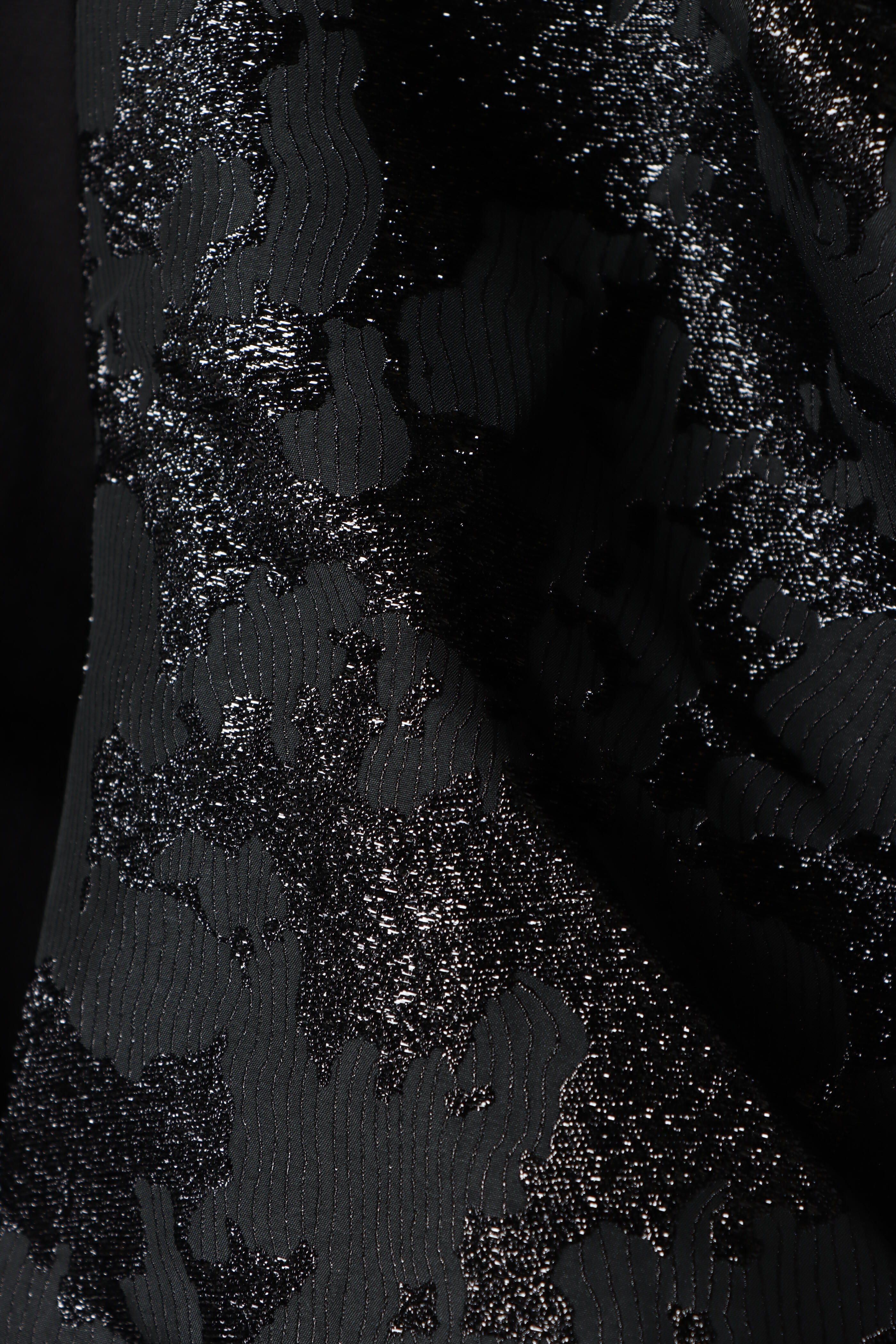- Elbow length puff sleeves; jacquard detail