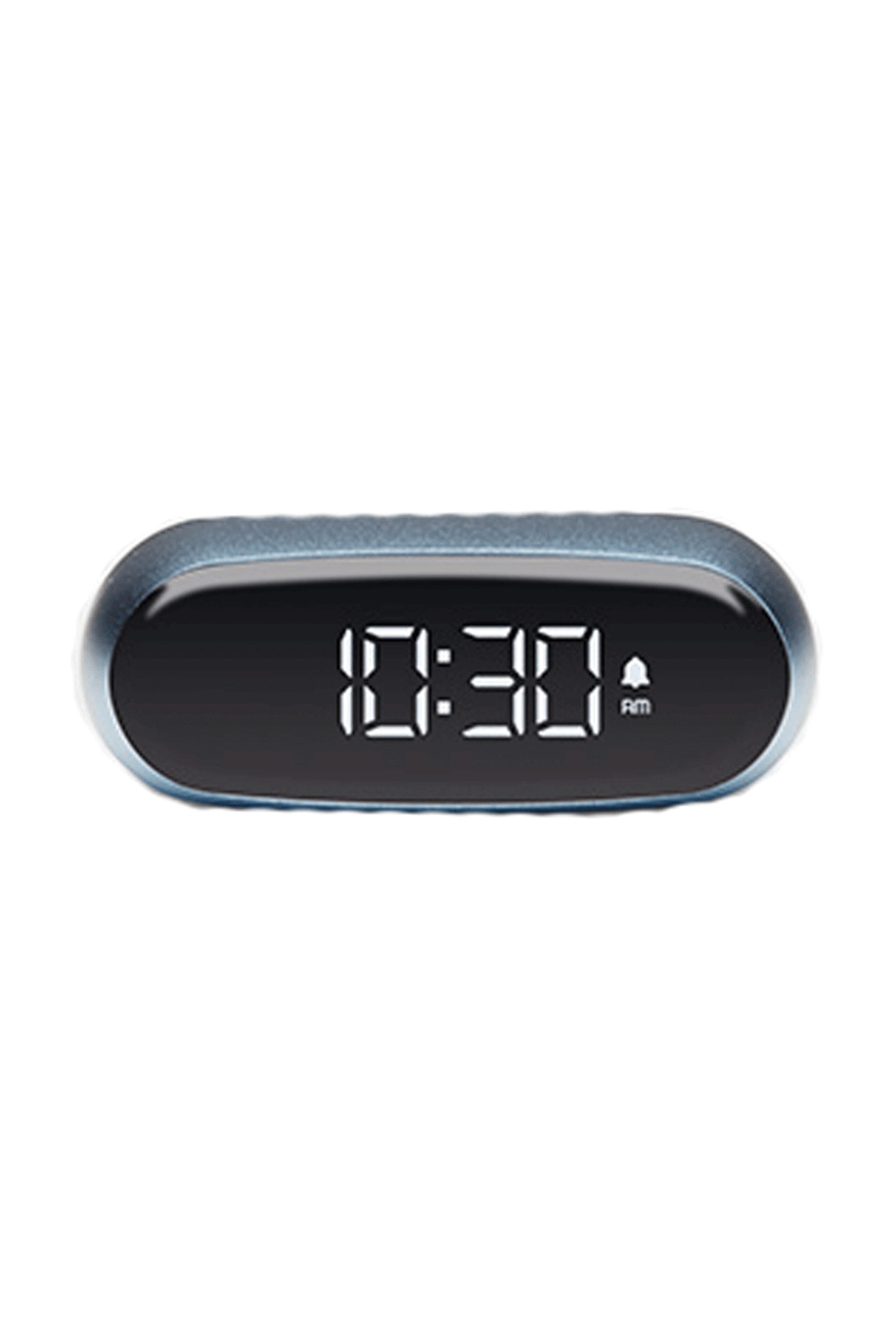 Lexon Light Blue Minut Clock. The world's smallest alarm clock that fits in your hand. Easy-to-use buttons that illuminate the display and trigger the snooze function. Battery life of up to 6 months on approximately 4 hours of charging.
