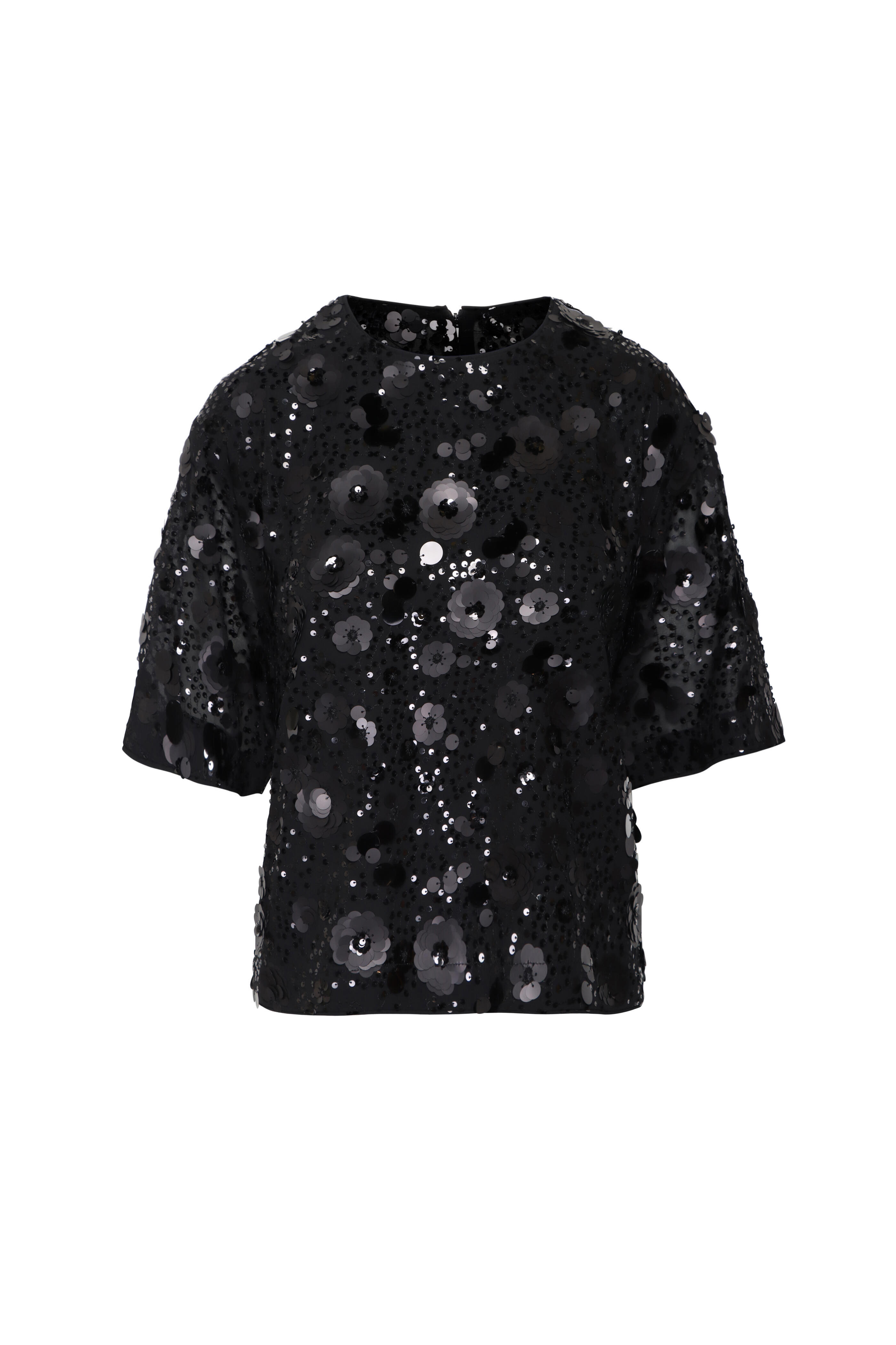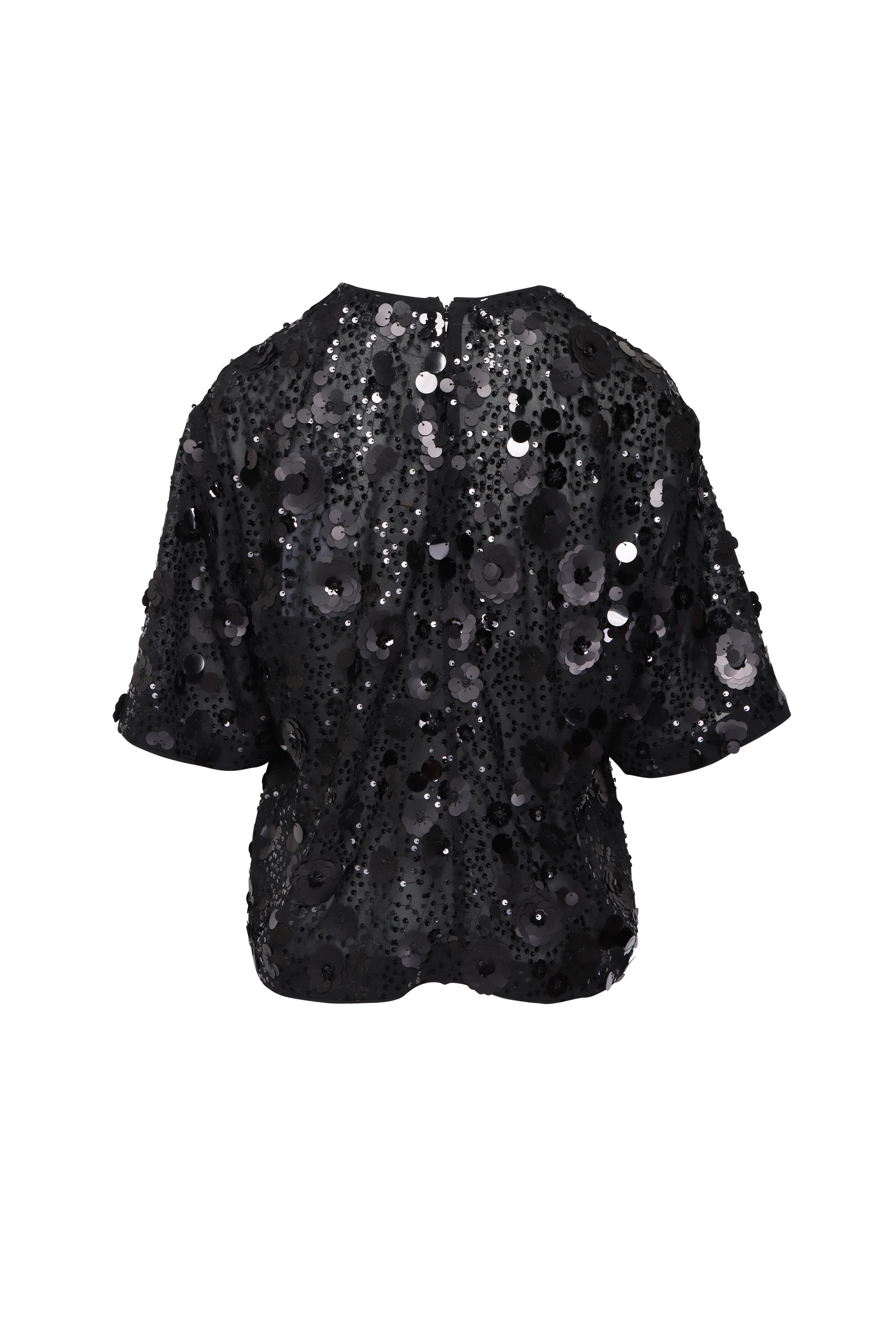 Round neck. Elbow length sleeves. Concealed back zip closure. Relaxed fit. Straight hem. Beaded detail throughout. Imported. Bust 46” (Size S). Length 25” (Size S). 100% polyethylene terephthalate outer 1, 100% polyester outer 2 and lining. Handwash.