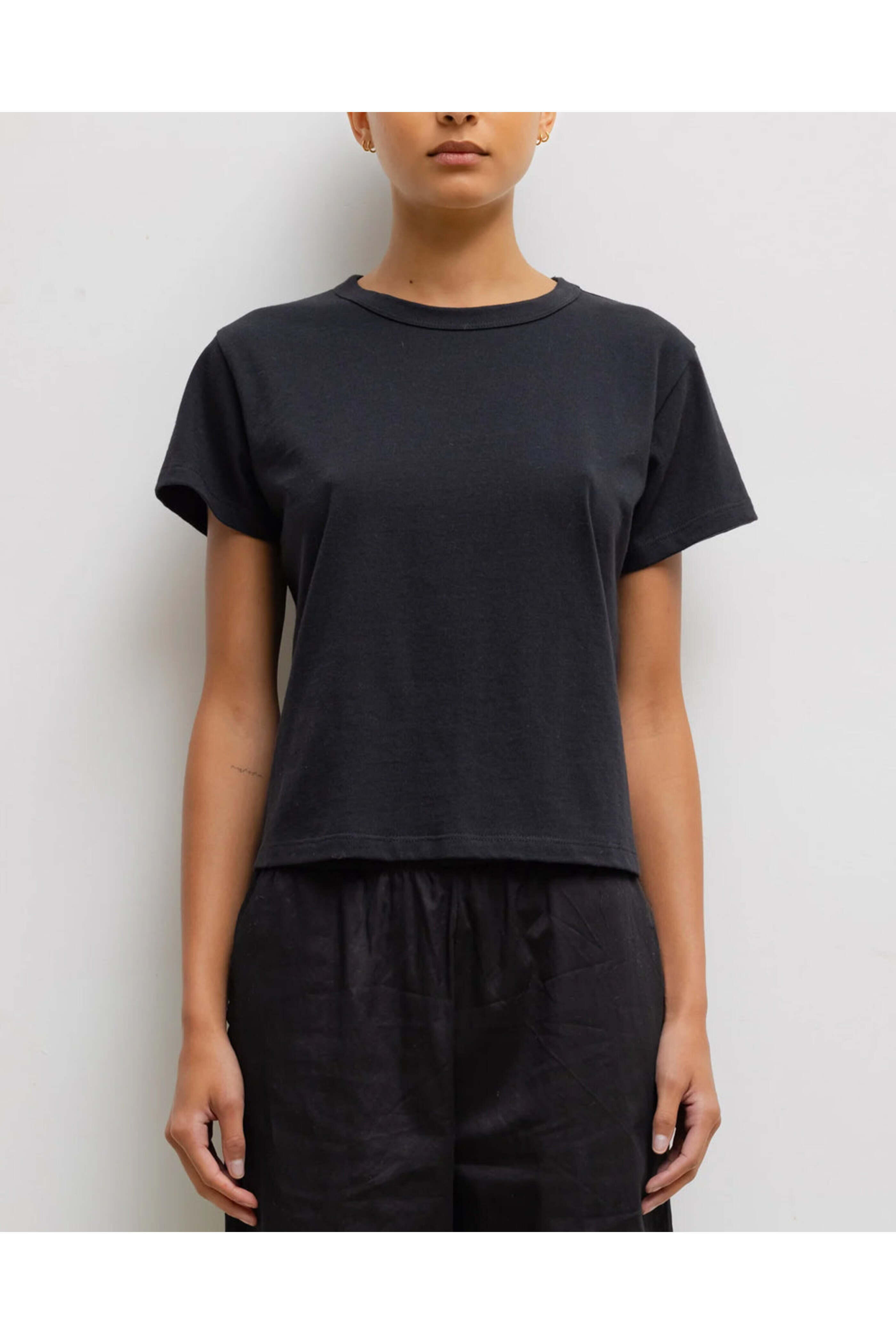 LESET Black Margo Tee. Crewneck. Short sleeves. Boxy fit. Straight hem. 100% cotton.