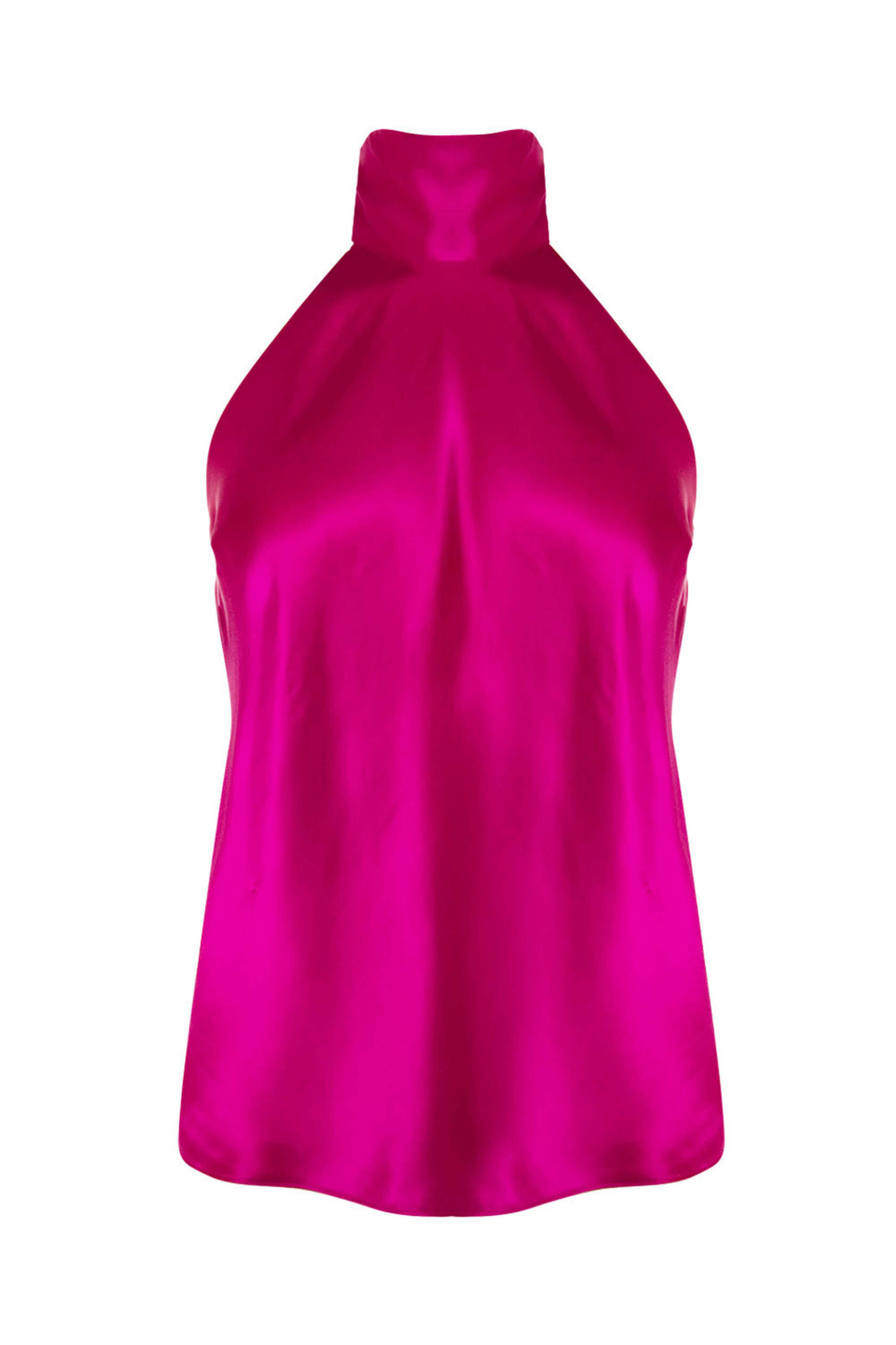 Magenta Draped Neck Tie Halter Top