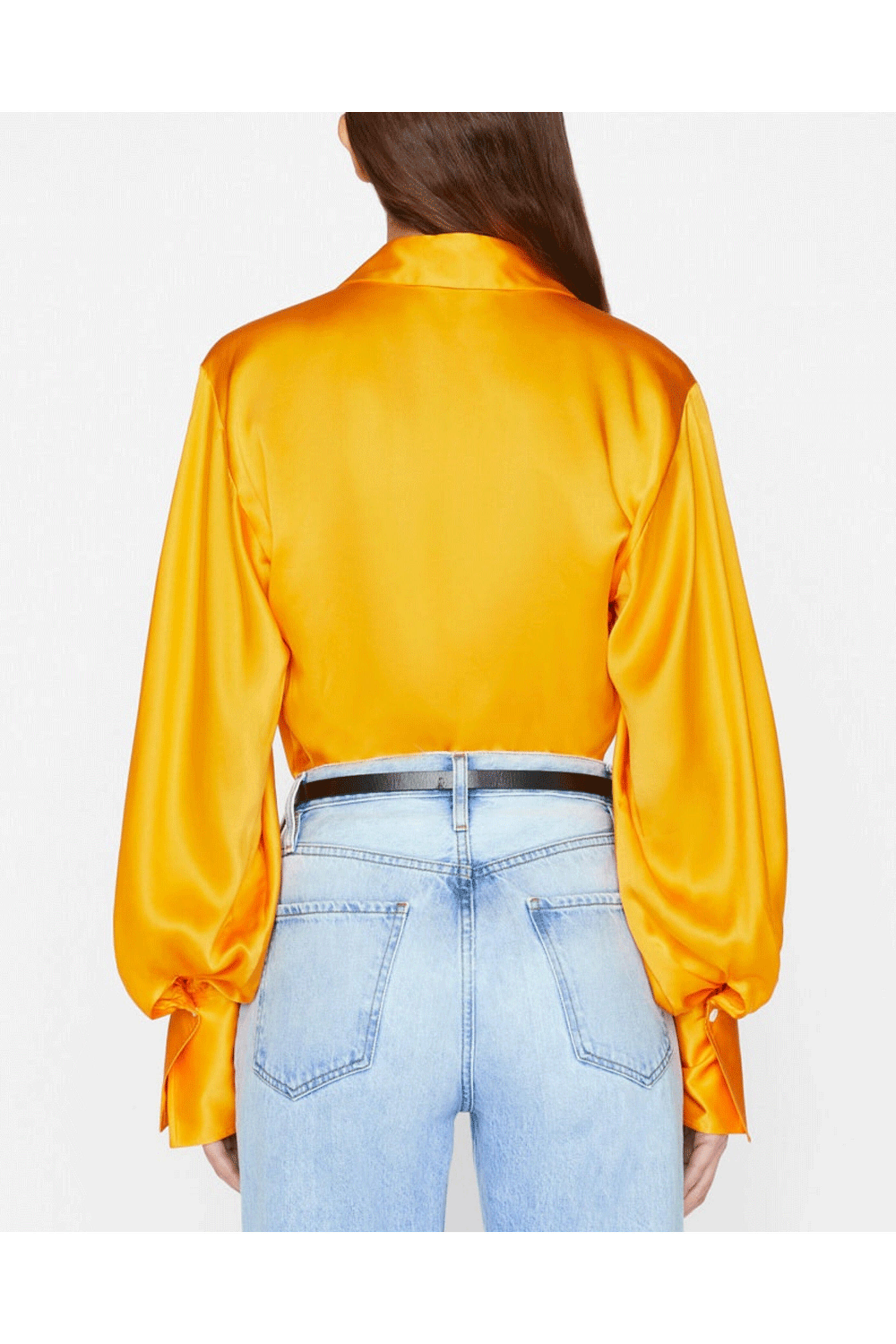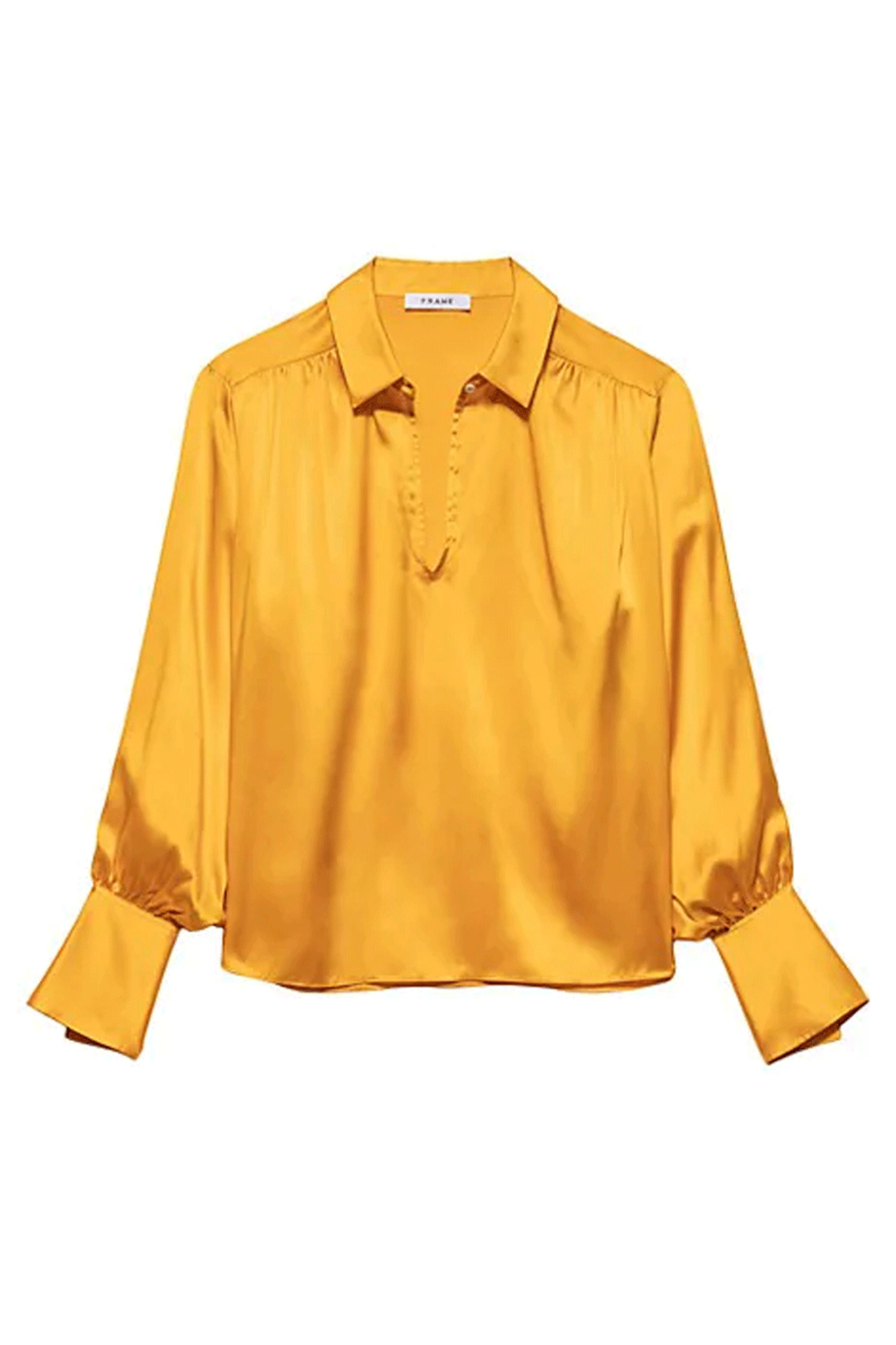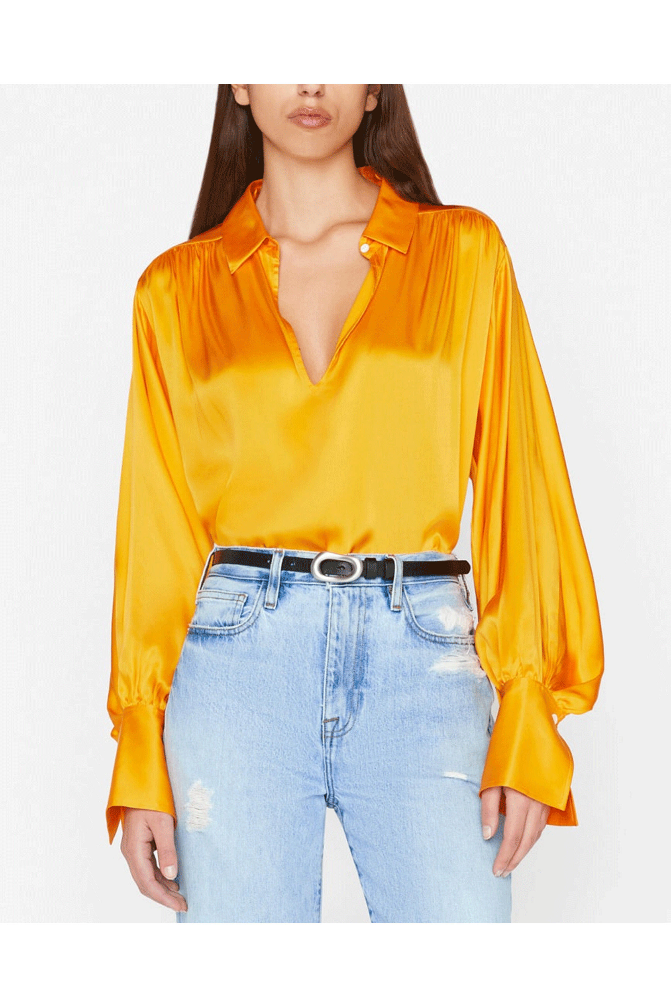 - Frame Nectarine Satin Keyhole Popover Shirt