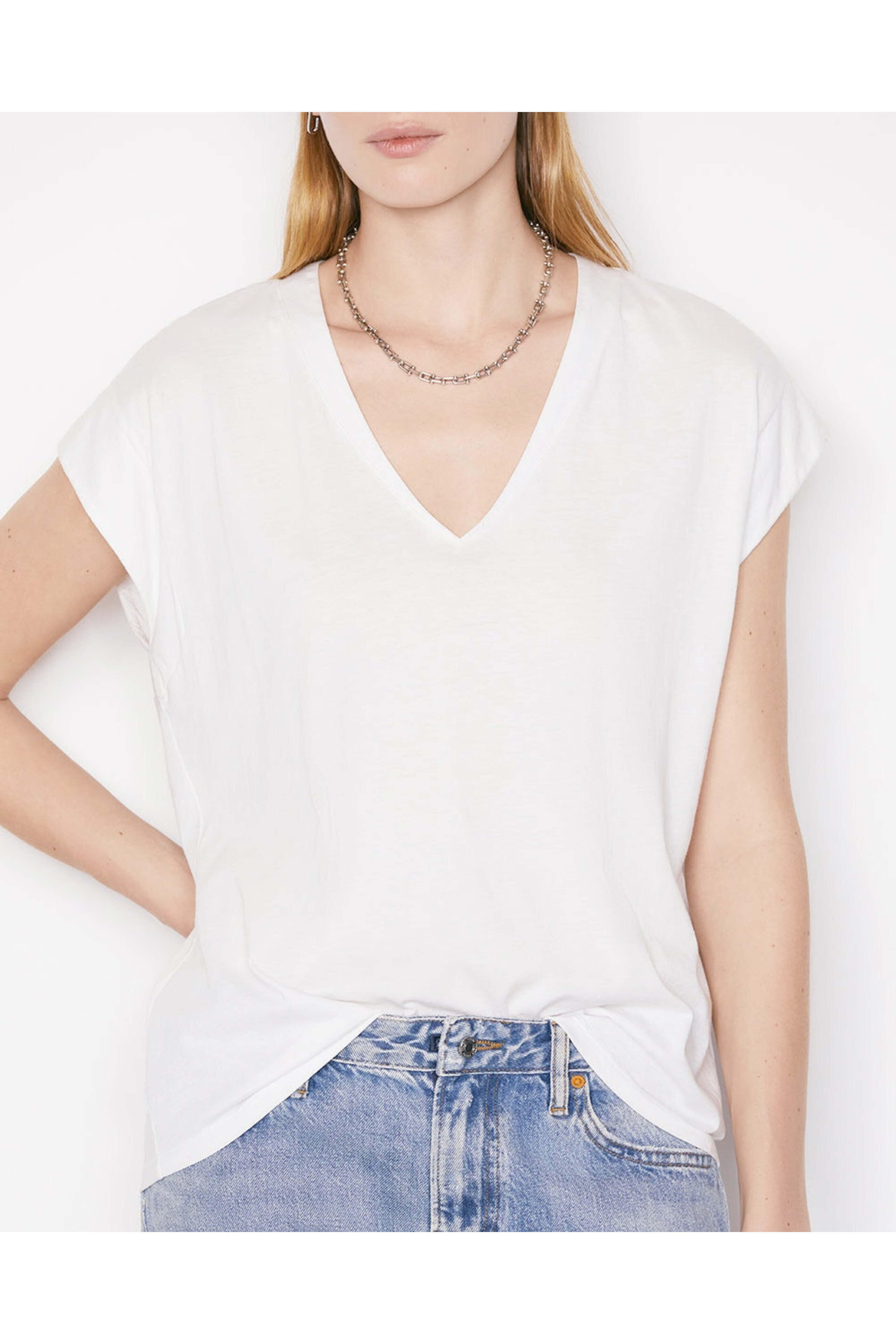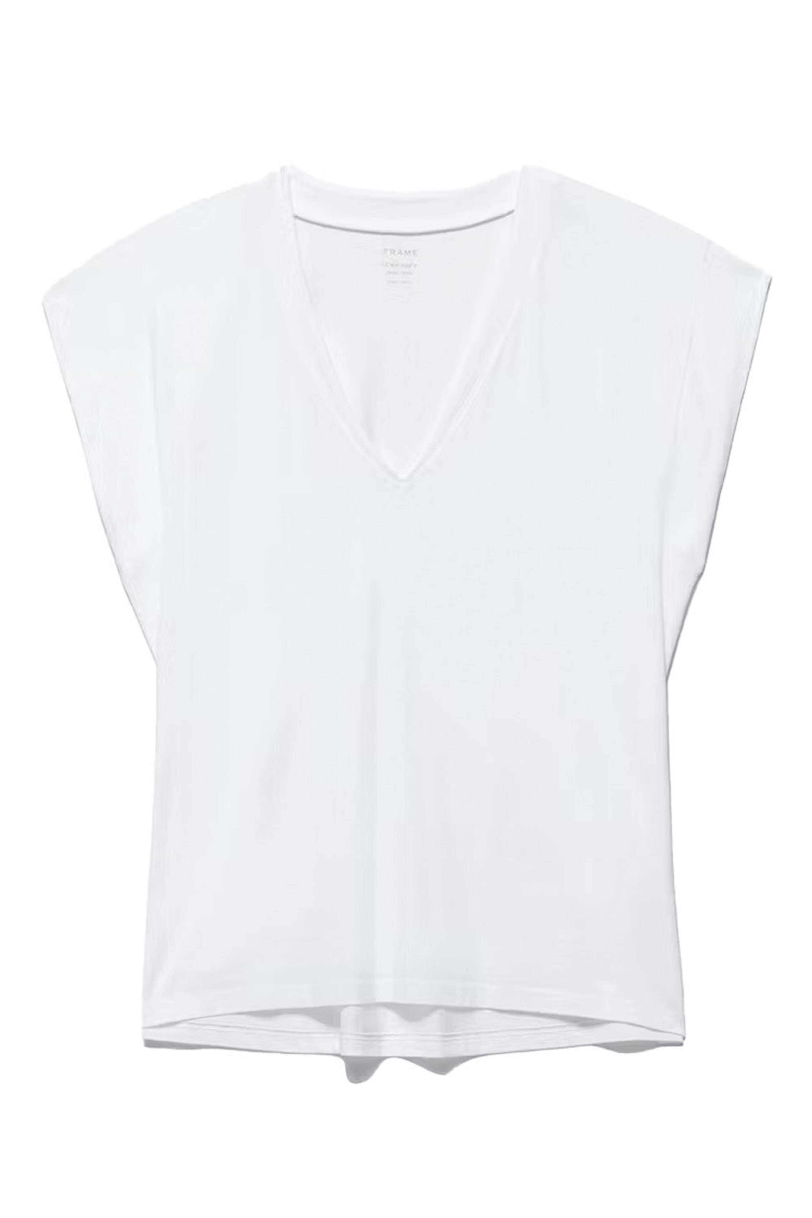 Frame Blanc Le Mid Rise V Tee. V neck . Sleeveless . Relaxed fit . 100% cotton .
